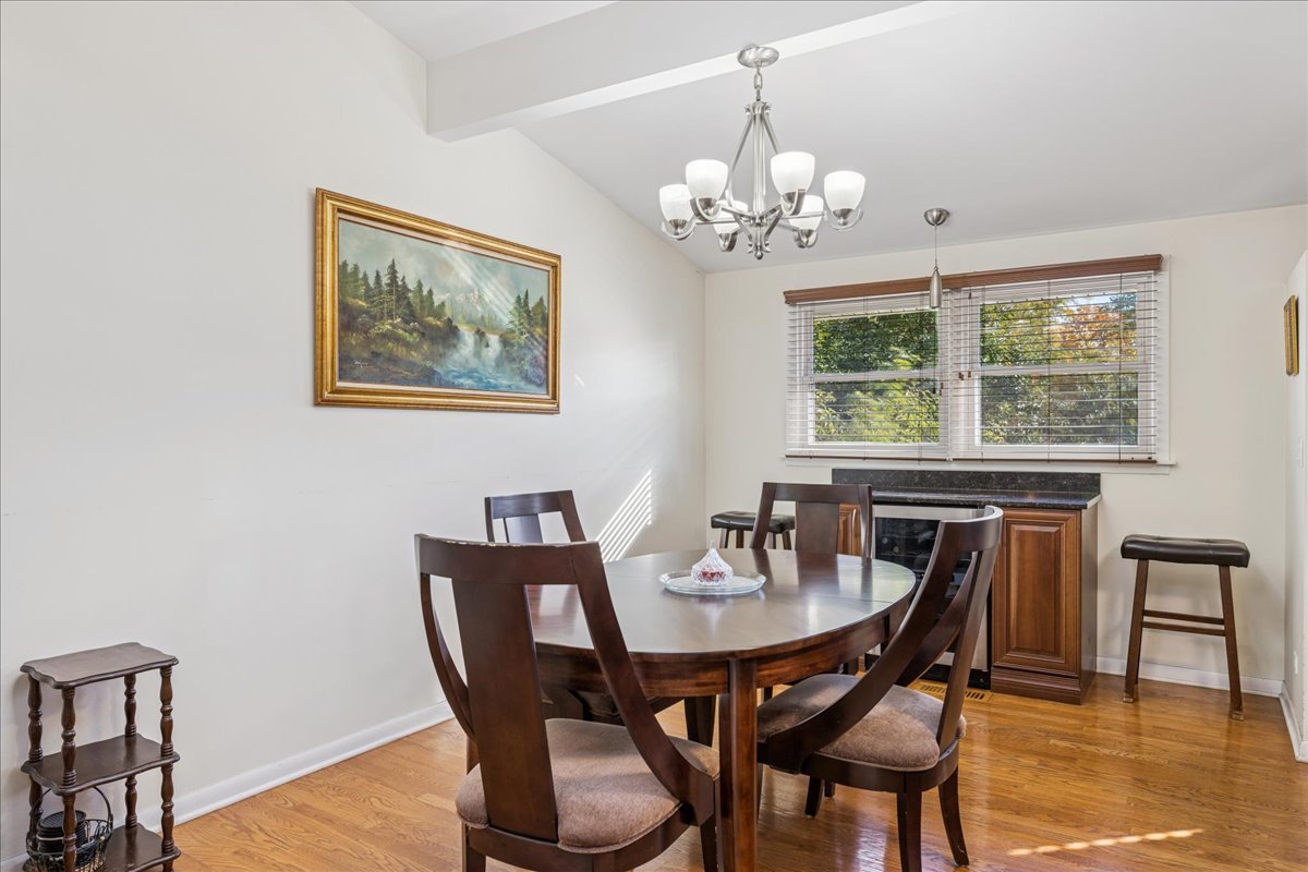 Welcome to this beautifully maintained split-level home blending modern comfort, character, and functionality. The welcoming entry leads to a spacious family room with slate flooring and abundant natural light for the sliders leading out to the backyard. Just a few steps up, the open-concept main level features hardwood floors, recessed lighting, and a wood-burning fireplace with a dedicated gas line. The updated kitchen offers cherry cabinetry with soft-close, full-extension drawers, an island with glass-inlay cabinets, and a beverage center with a wine fridge-perfect for entertaining, stainless steel appliances and breakfast bar. Upstairs, three spacious bedrooms offer generous closets and natural light. The hall bath includes a Jacuzzi tub and in-floor heating, while the primary suite features a private full bath with a stand-up shower. The basement is ready to be finished for additional 600 SQ FT of living space. Outside, enjoy a large backyard with mature fruit trees and vegetable plantings, producing delicious peaches, pears, zucchini, tomatoes, pumpkins to name a few. Set in a desirable neighborhood of quality-built homes and tree-lined streets, 275 S. Wilkins offers timeless appeal, modern updates, and a layout designed for comfortable everyday living. A short drive to many restaurants, shopping, downtown Mt Prospect and Des Plaines, public transportation and walking distance to Mariano’s. This house is ready for you to call it home.