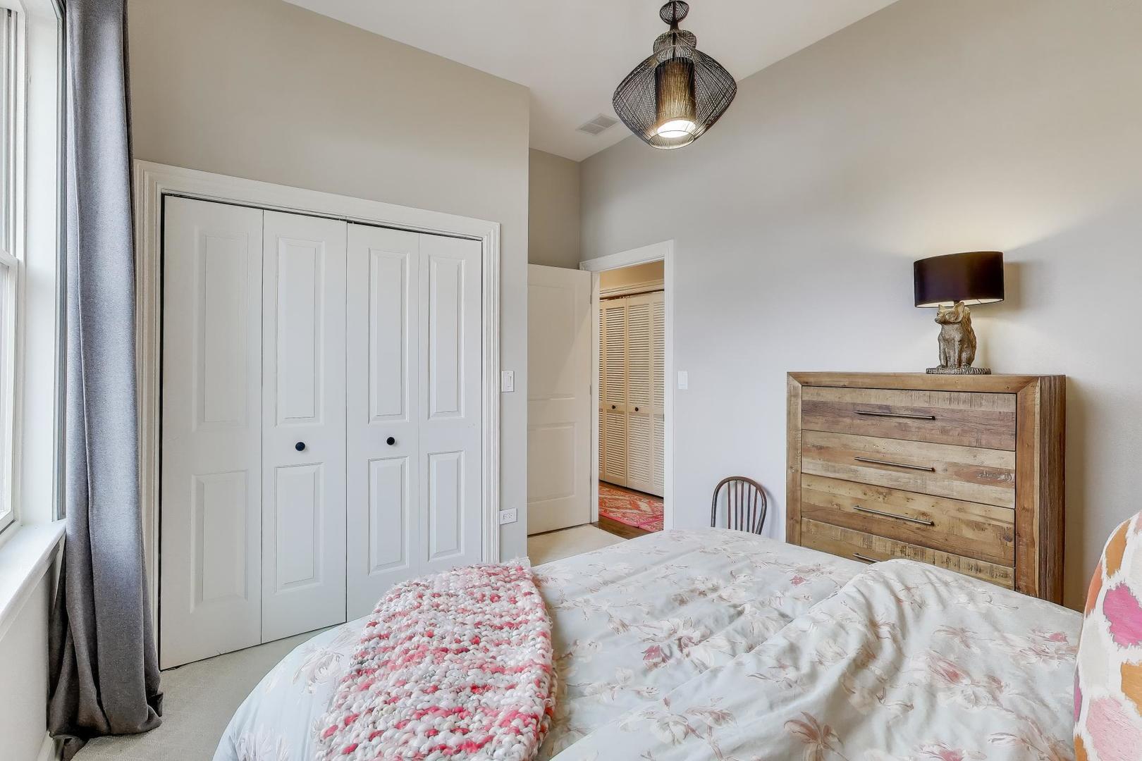 Gorgeous Lincoln Square penthouse, first resale of this top floor condo since built in 2012. Room to live & work from home with 3 bedrooms & 3 baths on one level. 2752 W. Argyle is a full masonry building on a wide corner lot, allowing natural light to pour in from all windows. Gracious high ceilings (nearly 10′), beautiful hardwood floors, a cozy gas vented fireplace & open concept living/dining & kitchen make this home a joy to entertain in! Classic kitchen details include white dove painted custom cabinetry, Kashmir White granite countertops & island, mosaic tile backsplash & stainless-steel appliances (circa 2022). The primary suite fits a king size bed with 2 nightstands & has a walk-in closet, the primary spa bath features a huge double shower with steam, marble tile, a whirlpool tub, double bowl vanity. In unit side by side Kenmore front loading washer/dryer, a built-in bench/coat rack & organized closets complete the functionality of this home. A private 8’x16′ deck off living room is perfect for grilling & sunsets. Desirable Lincoln Square Location – Steps to River Park (dog park too), North Shore Channel trail, Galter Life Center, HarvesTime Foods, Brown Line EL, Lincoln Ave shops & restaurants. Tandem 2 car Exterior Parking included. Reasonable monthly HOA $306, 2024 property taxes $11,169 with homestead exemption.