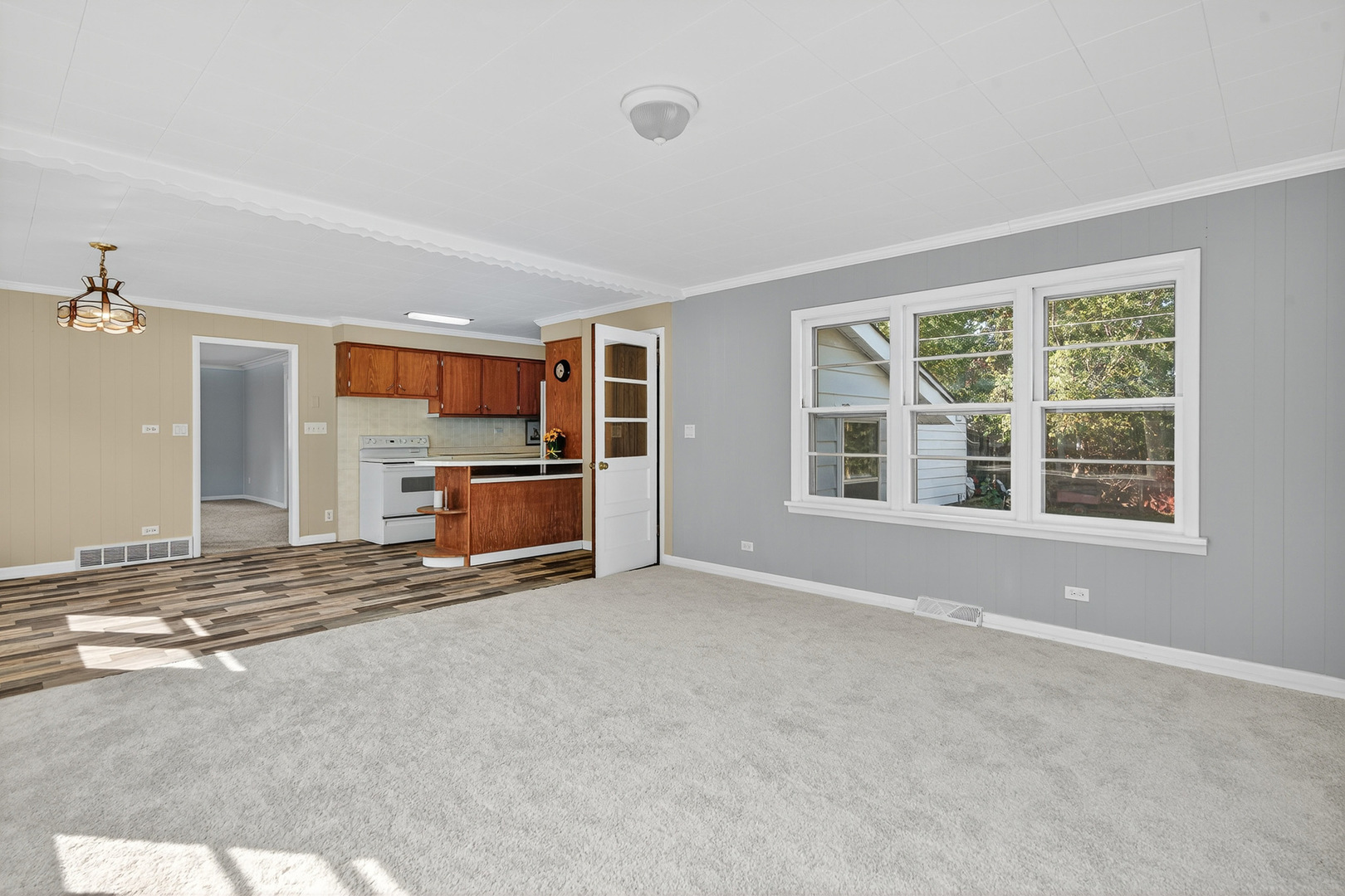Welcome to this move-in ready 3-bedroom, 1-bath ranch home nestled on an oversized, partially fenced lot just moments from the shores of beautiful Slocum Lake. From the moment you step inside, you’ll be captivated by the abundance of natural light streaming through the large picture window at the back of the home, creating a warm and inviting living space. Thoughtfully designed, the home features one bedroom at the front, while the other two are tucked away down a private hallway with a pocket door for added privacy-ideal for guests or a quiet retreat. Each bedroom offers generous closet space. The galley-style kitchen offers ample cabinetry, extensive counter space, under-cabinet lighting, and a breakfast bar perfect for casual meals. There’s also a dedicated dining area for more formal gatherings. Fresh paint and new carpeting throughout ensure a clean, modern feel from the moment you move in. Downstairs, the partially finished basement expands your living options with a rec room complete with a retro-style bar and faux fireplace. A separate laundry area and utility room provide functionality and storage. Step outside to enjoy the serenity of the mature, tree-lined yard from the deck.. The detached 2.5-car garage offers attic storage and an additional covered space on the side-great for storing outdoor gear or creating a workshop. As part of this lake community, you’ll enjoy exclusive lake rights, including access to boating, fishing, a clubhouse, and a park. Whether you’re looking for year-round recreation or peaceful sunset strolls, this home delivers it all. Don’t miss your chance to own this slice of lake life!