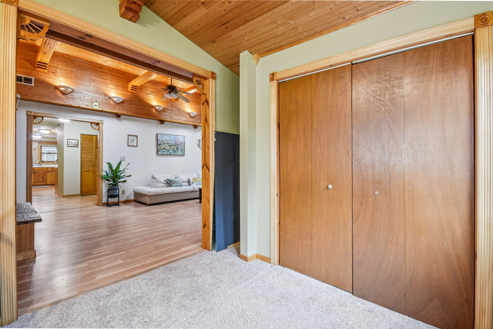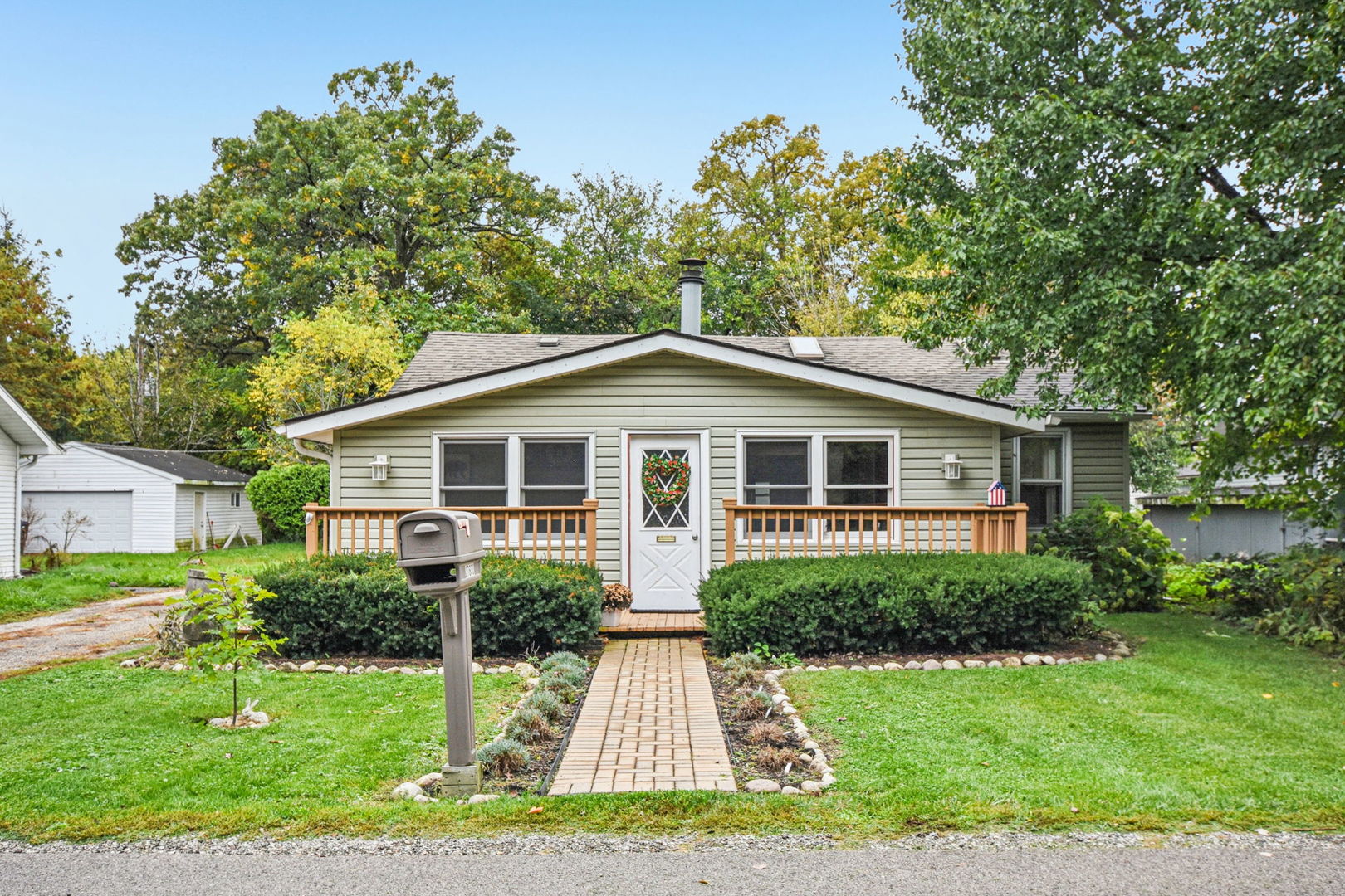 This inviting 3-bedroom, 1-bath ranch offers the perfect blend of comfort, charm, and functionality. As you arrive, you’re welcomed by a sun-drenched front sunroom, a delightful space that greets you with warmth and sets the tone for the rest of the home. Inside, the spacious family room features vaulted, cedar-lined ceilings with rustic beams and a cozy fireplace, creating a stunning focal point and an ideal space for gatherings. The updated kitchen offers modern touches and plenty of workspace for cooking and entertaining. With approximately 1,600 square feet of living space, this home combines open living areas with cozy nooks for relaxation. Nestled on a large lot, the property boasts an large backyard complete with a two-story shed for extra storage, brick patio, and a deck, perfect for outdoor entertaining, gardening, or simply enjoying the peaceful surroundings. Located just moments from Converse Park and Slocum Lake, you’ll enjoy scenic views and the added benefit of lake rights that include access to a clubhouse, beach, playground, boat launch, and pier.