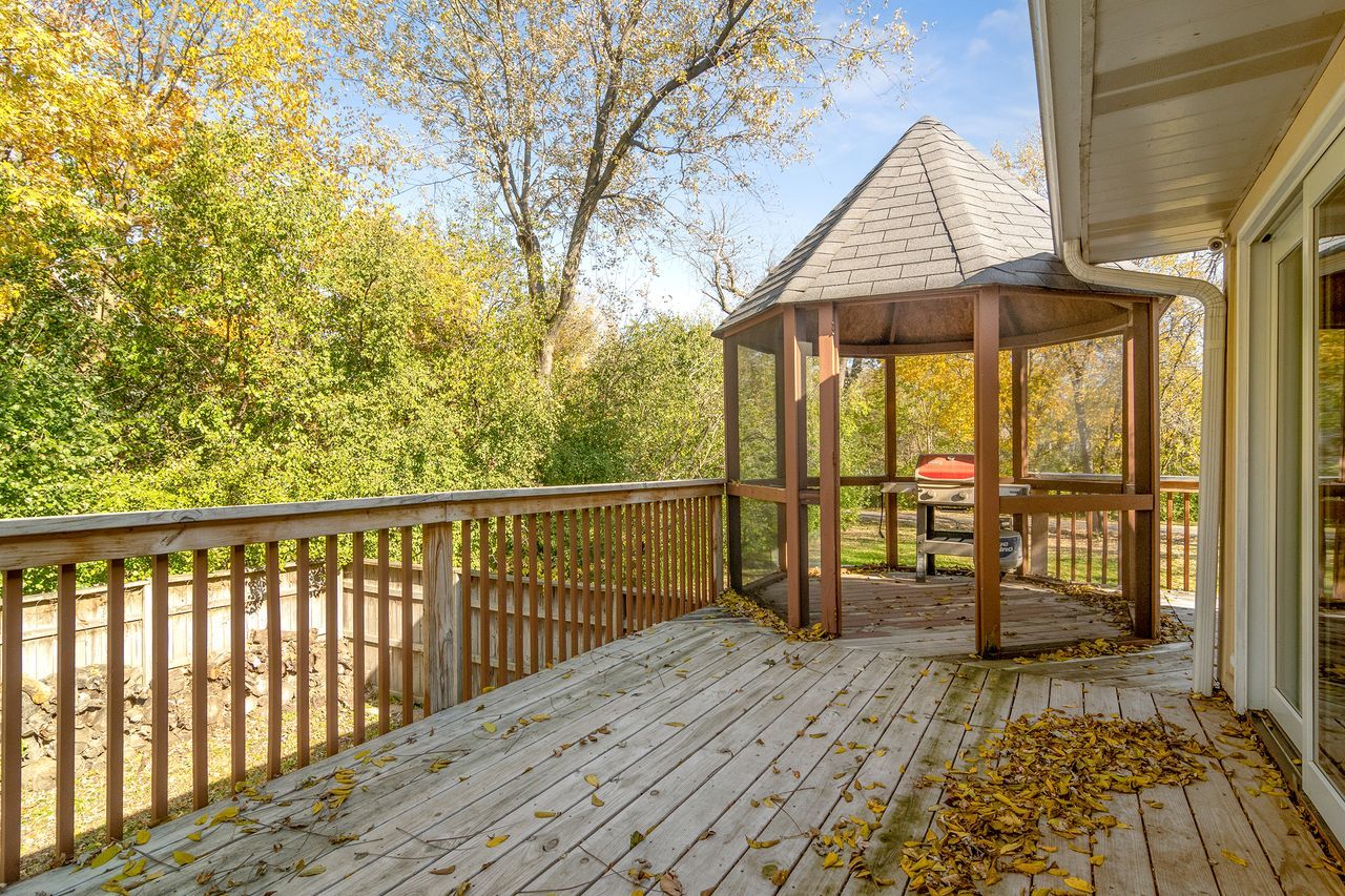 Spacious raised ranch with a full finished basement that includes 5 bedrooms and 3 full baths. The large yard is partially fenced and has a large deck with a gazebo and a fire pit. Located in highly desirable school district 200 and near Kline Creek Farm.