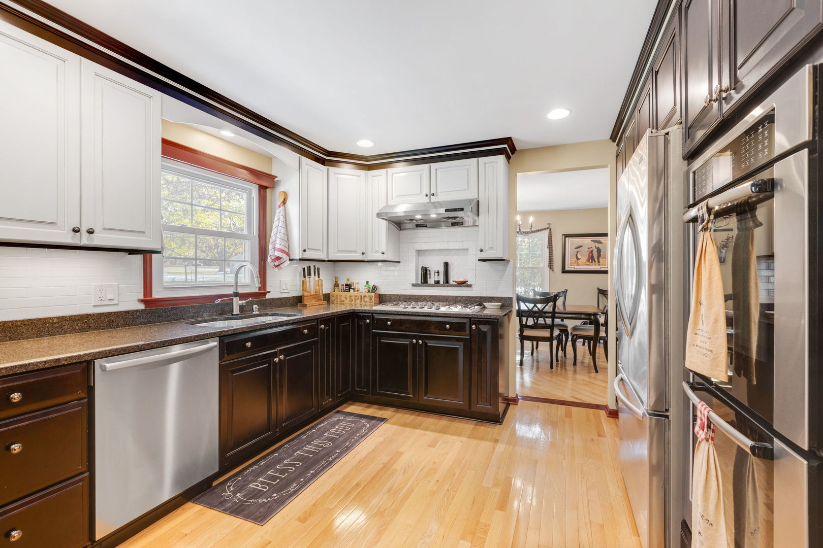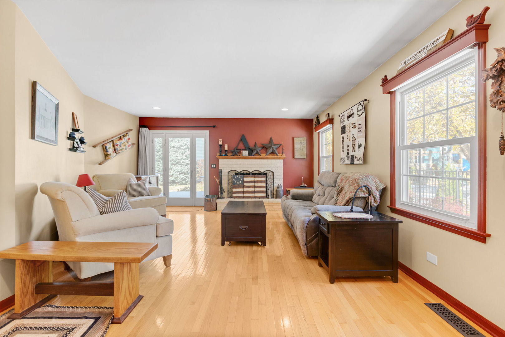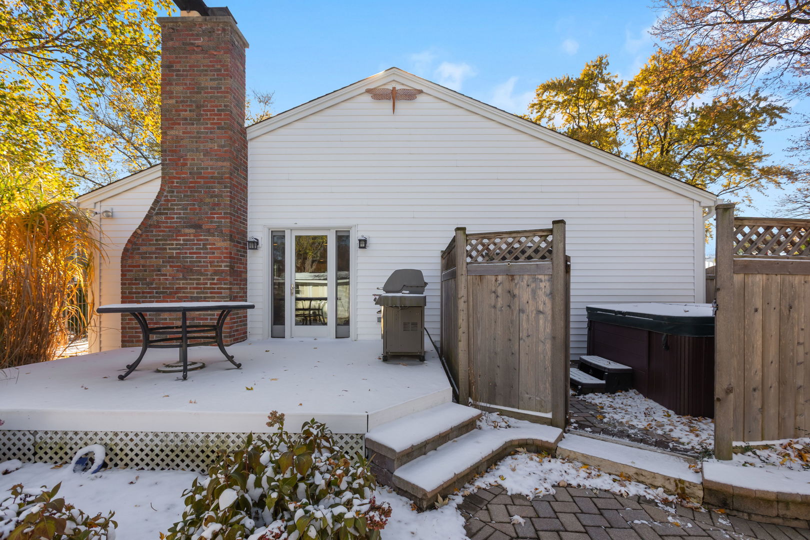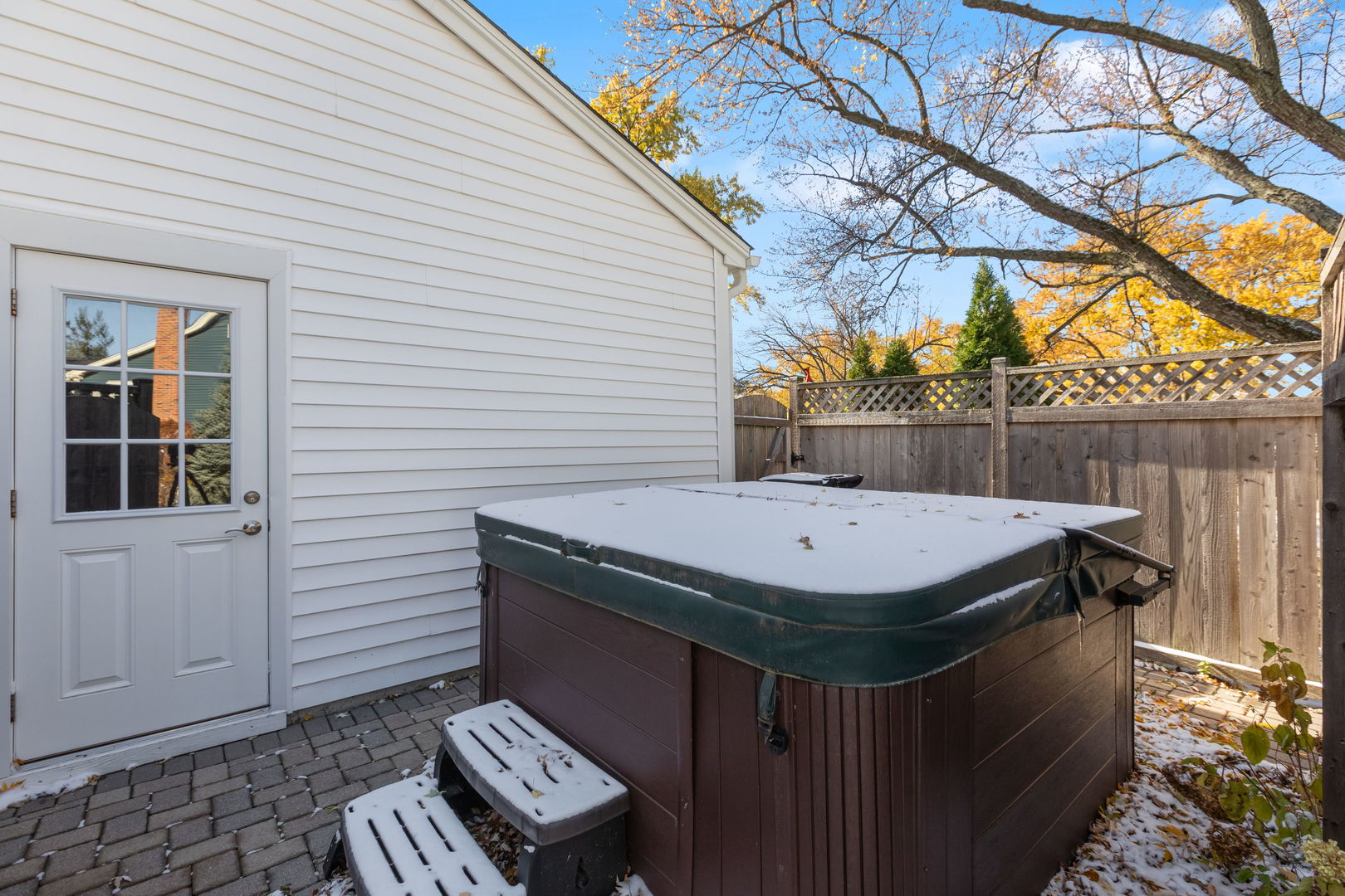 Welcome to this stunning corner-lot home offering comfort, style, and thoughtful upgrades throughout. The spacious kitchen features stainless steel appliances, including a Bosch dishwasher and Viking cooktop, beautifully remodeled in 2013. Hardwood floors flow through the main level, leading to a cozy great room with a fireplace and doors opening to a professionally landscaped backyard – complete with a private hot tub and privacy fence. The large primary suite includes an expansive bathroom with a private ensuite. An updated hall bath on the second floor adds modern convenience. The finished basement features luxury vinyl plank flooring and a bar, creating the perfect space for entertaining. Additional highlights include a new paver walkway, a brand-new driveway (2023), a shed with electricity, and a convenient water spigot in the garage for easy cleaning. Freshly painted and move-in ready, this home combines warmth, functionality, and beautiful outdoor living. 220 electrical in garage, roof (2019).