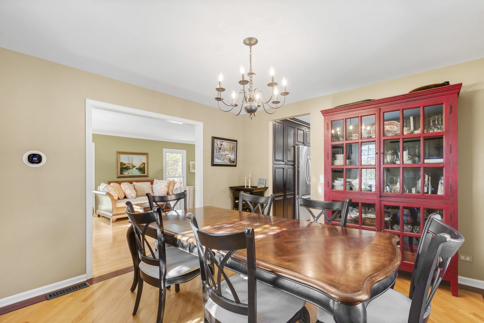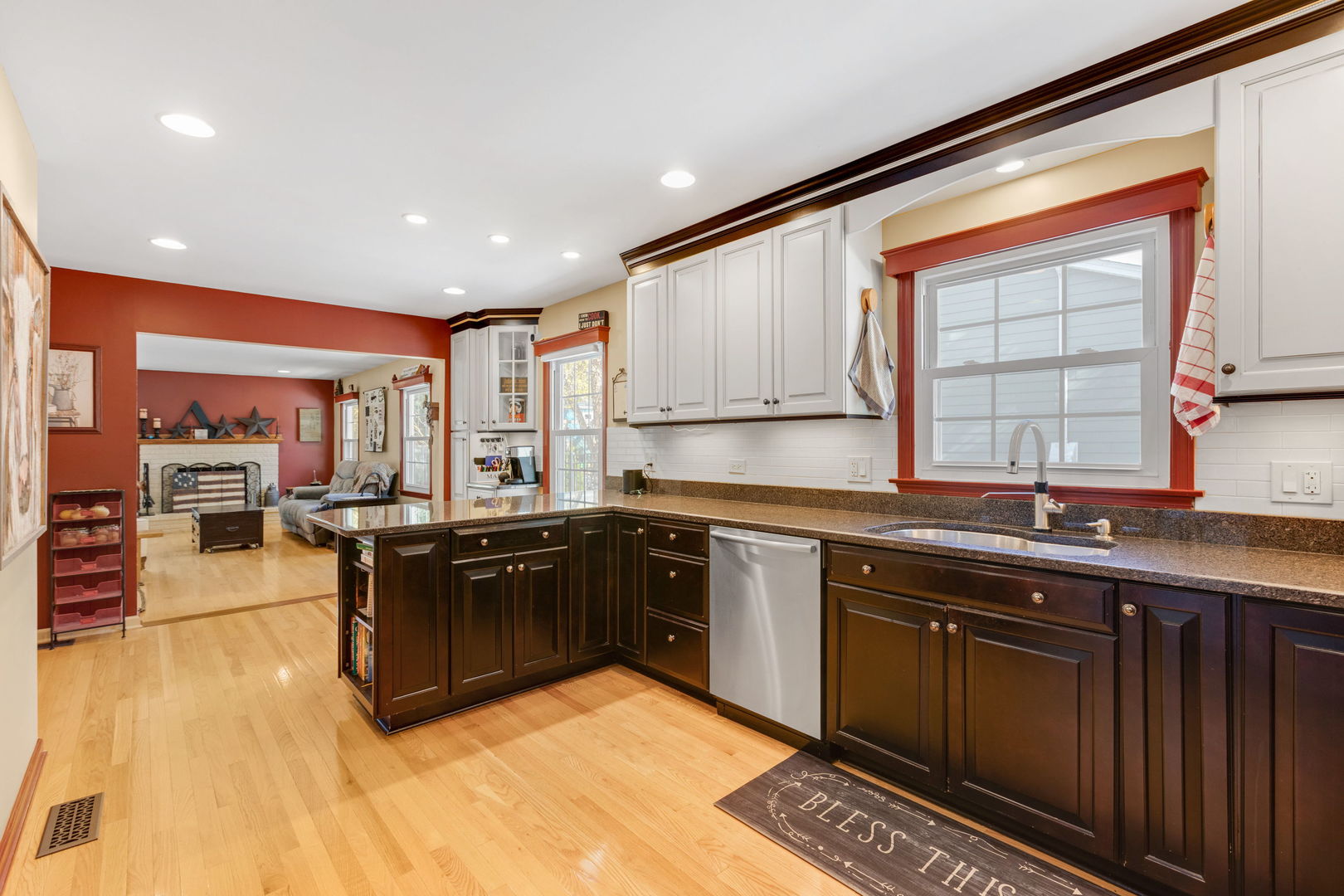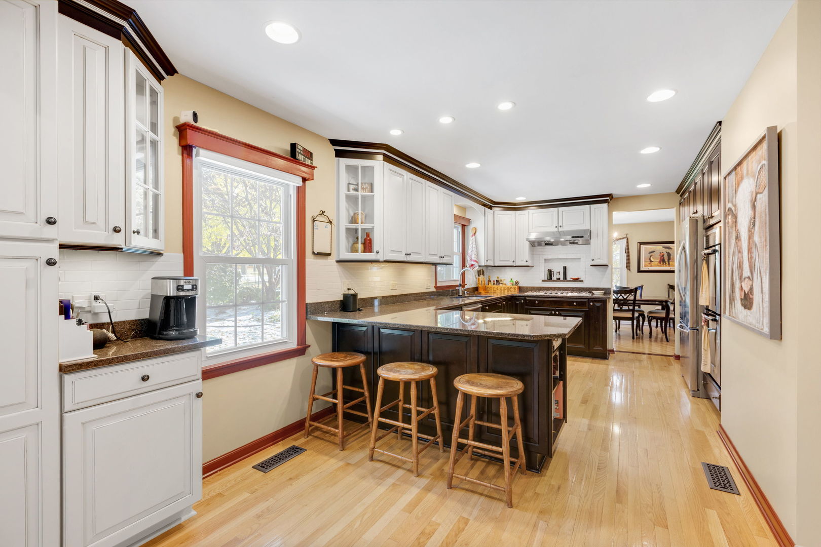 Welcome to this stunning corner-lot home offering comfort, style, and thoughtful upgrades throughout. The spacious kitchen features stainless steel appliances, including a Bosch dishwasher and Viking cooktop, beautifully remodeled in 2013. Hardwood floors flow through the main level, leading to a cozy great room with a fireplace and doors opening to a professionally landscaped backyard – complete with a private hot tub and privacy fence. The large primary suite includes an expansive bathroom with a private ensuite. An updated hall bath on the second floor adds modern convenience. The finished basement features luxury vinyl plank flooring and a bar, creating the perfect space for entertaining. Additional highlights include a new paver walkway, a brand-new driveway (2023), a shed with electricity, and a convenient water spigot in the garage for easy cleaning. Freshly painted and move-in ready, this home combines warmth, functionality, and beautiful outdoor living. 220 electrical in garage, roof (2019).