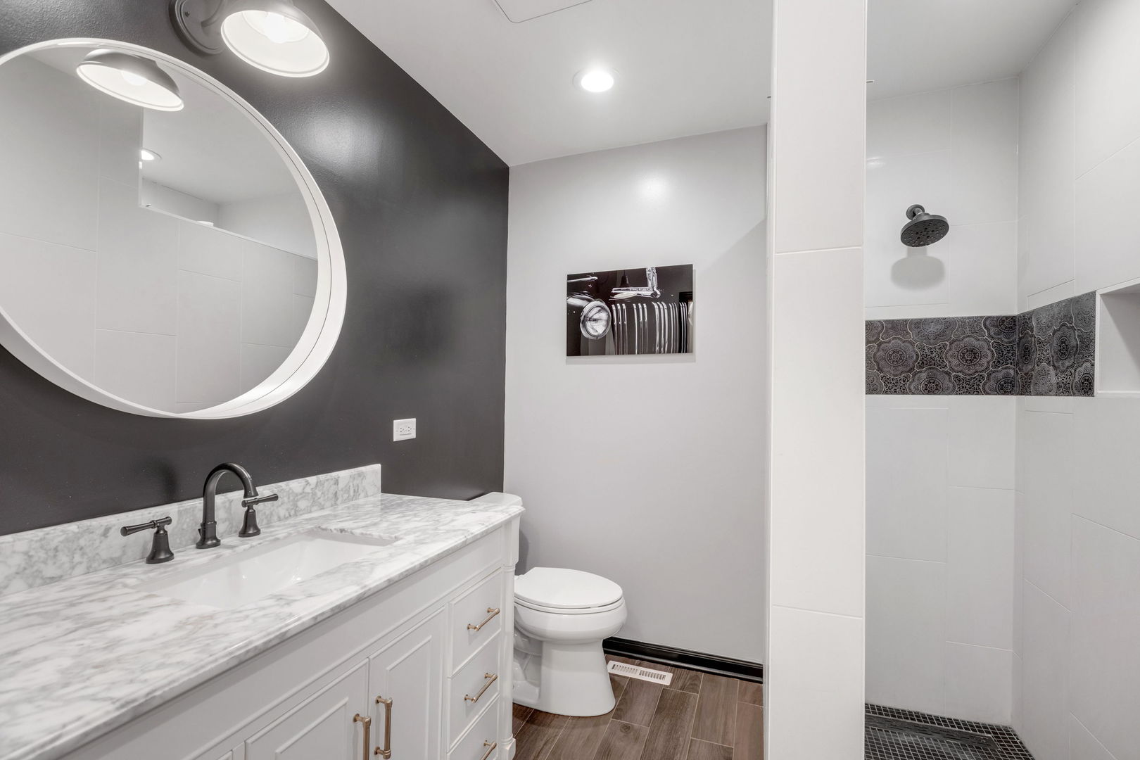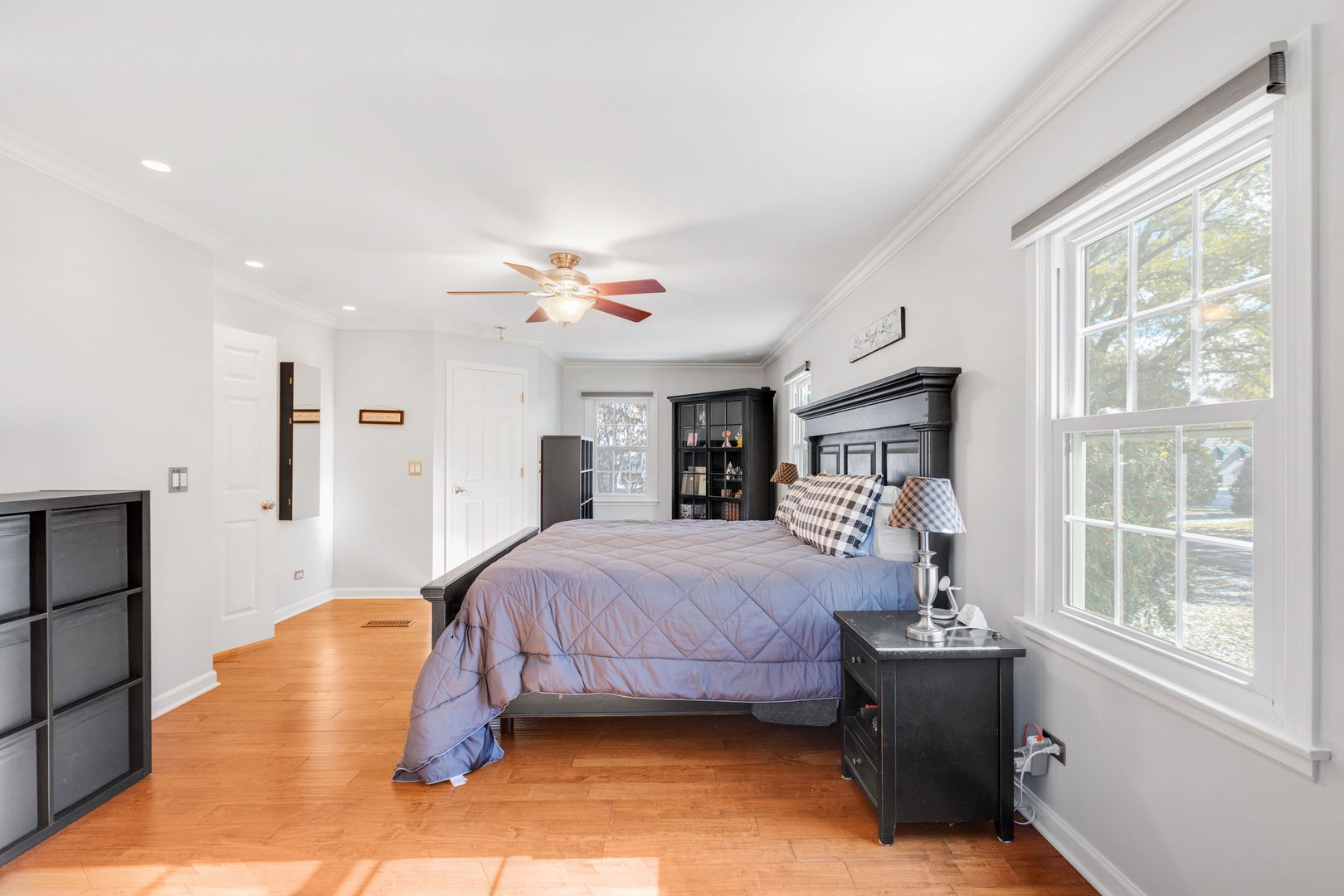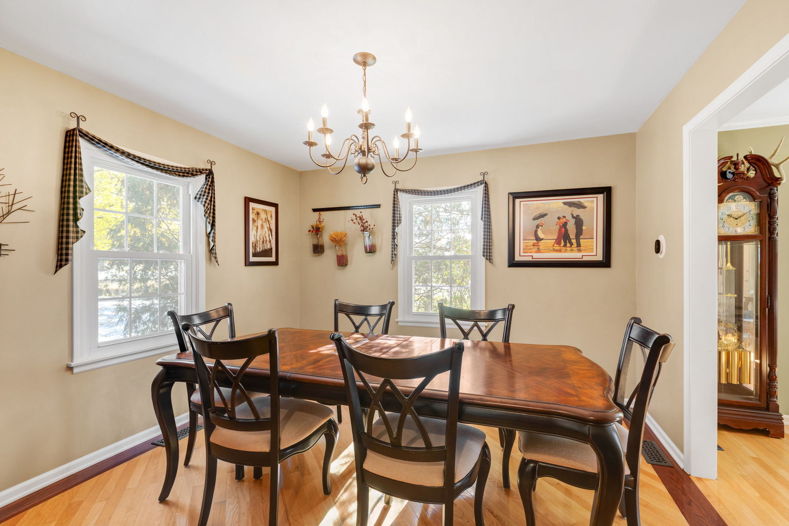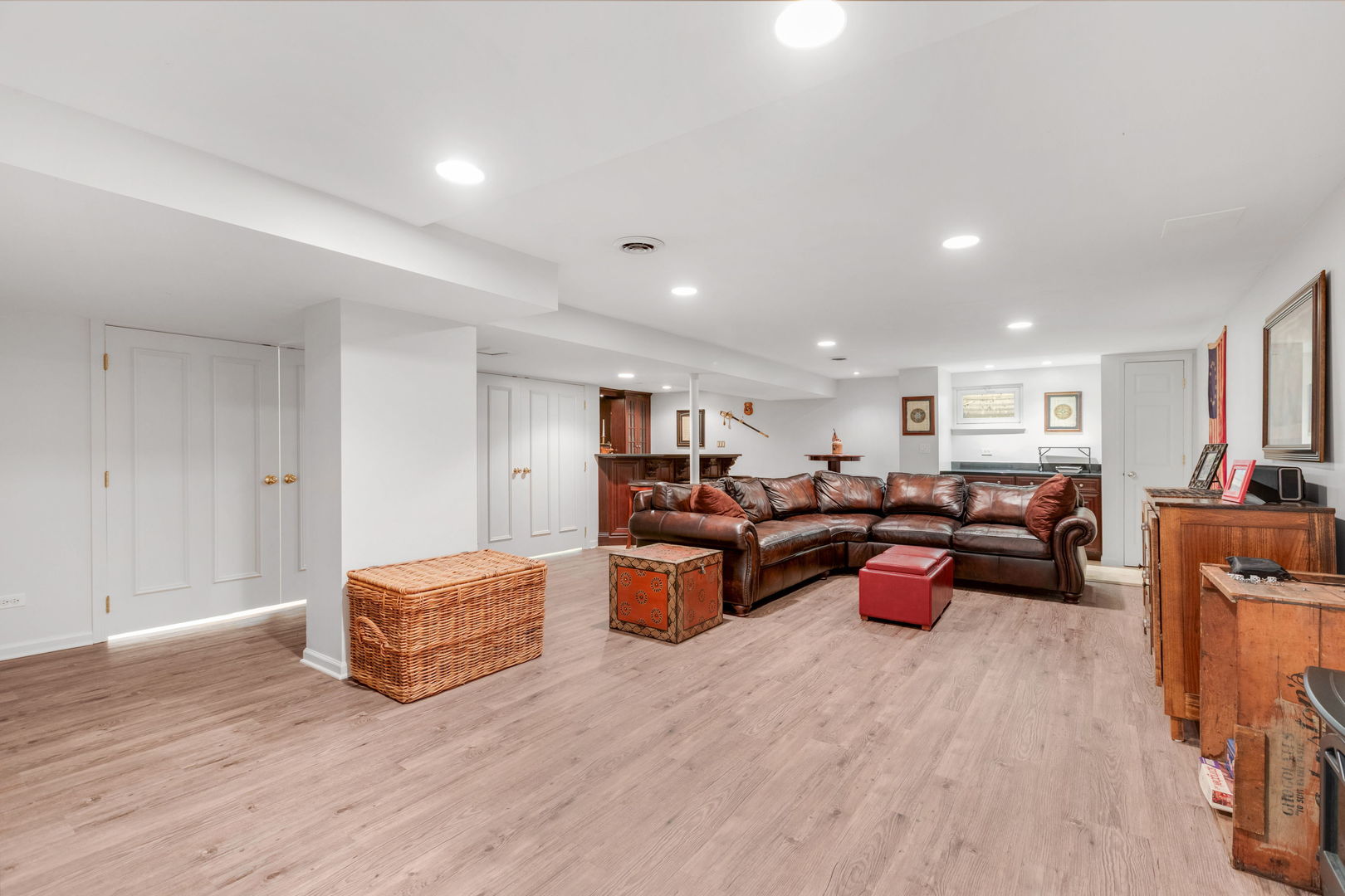 Welcome to this stunning corner-lot home offering comfort, style, and thoughtful upgrades throughout. The spacious kitchen features stainless steel appliances, including a Bosch dishwasher and Viking cooktop, beautifully remodeled in 2013. Hardwood floors flow through the main level, leading to a cozy great room with a fireplace and doors opening to a professionally landscaped backyard – complete with a private hot tub and privacy fence. The large primary suite includes an expansive bathroom with a private ensuite. An updated hall bath on the second floor adds modern convenience. The finished basement features luxury vinyl plank flooring and a bar, creating the perfect space for entertaining. Additional highlights include a new paver walkway, a brand-new driveway (2023), a shed with electricity, and a convenient water spigot in the garage for easy cleaning. Freshly painted and move-in ready, this home combines warmth, functionality, and beautiful outdoor living. 220 electrical in garage, roof (2019).