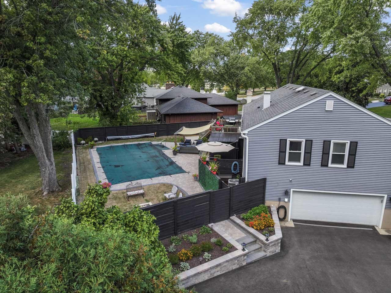 Welcome to a home where every detail has been thoughtfully updated for comfort, style, and everyday living-featuring over $100,000 in improvements within the last 12-14 months. From the moment you step inside, you’ll feel the warmth and care that went into every upgrade. Beautifully refinished hardwood floors and fresh paint throughout the entire home create a bright, open, and inviting atmosphere. Craftsman updated woodwork and shiplap highlights throughout. The living room offers custom electric blinds and a brand-new electric fireplace, surrounded by built-in cabinets and floating shelves with accent lighting-perfect for relaxing or entertaining. The gorgeous, updated kitchen shines with white cabinetry, granite countertops, and brand-new stainless-steel appliances (installed Oct. 2024), including a refrigerator, range, and microwave. A newly added island provides extra counter space and casual gathering, while elegant new chandeliers (Sept. 2024) add a touch of charm throughout the home. On the main floor, The spacious primary suite offers a calm retreat with a refreshed color palette, and a private full bath with a modern updated look-providing the perfect blend of comfort and style. Additional bedroom with wall-to-wall newer closet organizers and other with updated closet doors. The basement office/bedroom also includes refreshed closet space and new built-in cabinetry (Sept. 2025). All bathrooms have been beautifully renovated with a modern look and contemporary finishes. Step outside to your own private oasis. The backyard is an entertainer’s dream, complete with a newly added brick paver patio surrounding the in-ground pool, a cozy fire pit, new sod, and a covered patio with knotty pine ceilings. Professionally designed landscaping and a newly added shed and storage enclosure (Apr. 2025) complete the space. The fenced pool pump area and fresh sand offer peace of mind and easy maintenance. After a day by the pool, retreat to the stunning lower level featuring a second fireplace, beautiful wood laminate floors, a fourth bedroom, full updated bath, and sliding glass doors that open directly to the pool area-ideal for guests to enjoy without tracking water through the home. Additional highlights include a custom front storm door and shutters, garage cabinetry, a driveway drain, added outlets in the garage and front yard (Mar. 2025), replaced patio doors (Dec. 2024), an extended front porch, a newly replaced driveway, and a fully painted/stained fence (June 2025) for a polished finish. This home truly shows like a model-offering the perfect blend of modern upgrades, thoughtful design, and everyday comfort. All that’s left to do is move in and make it your own.