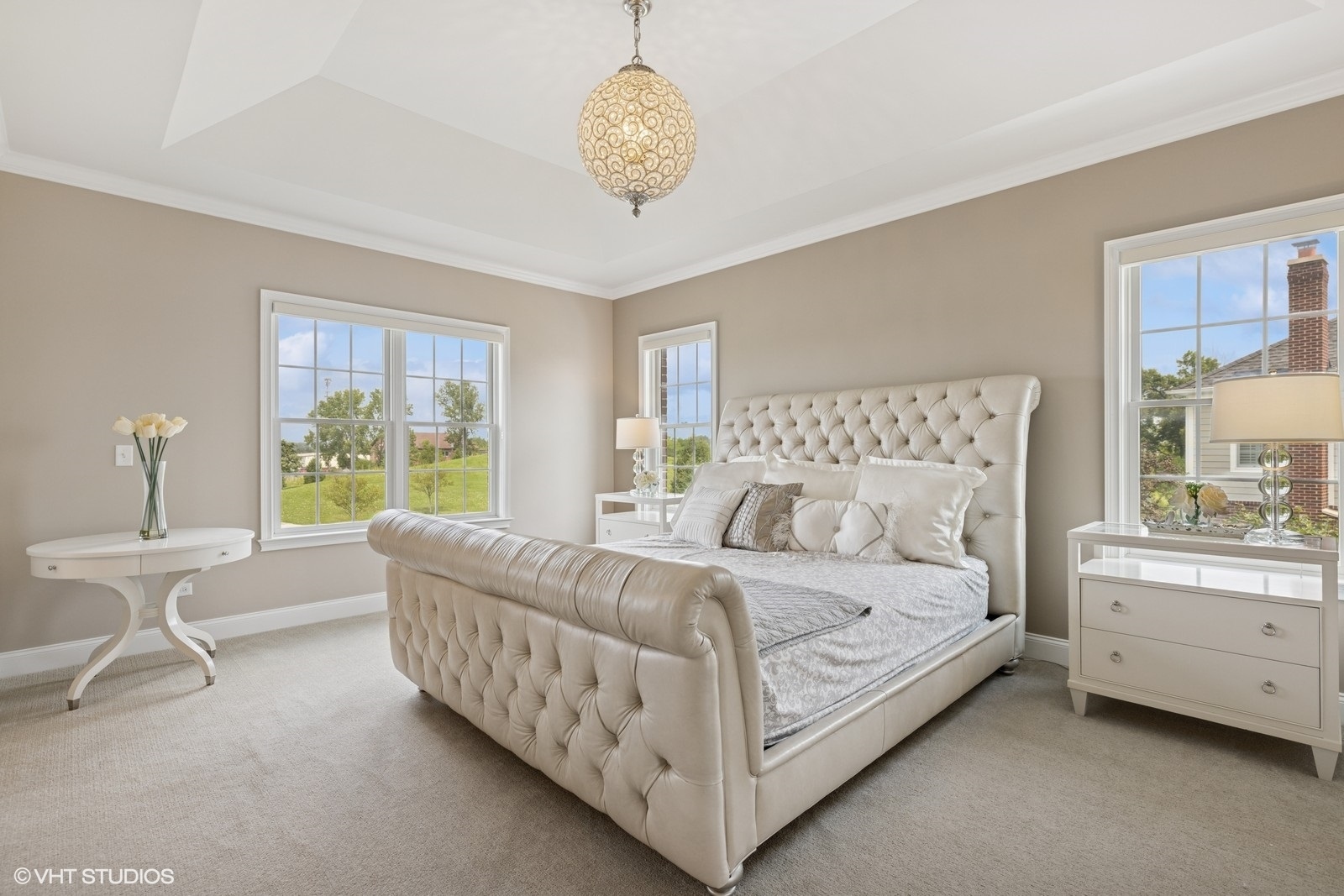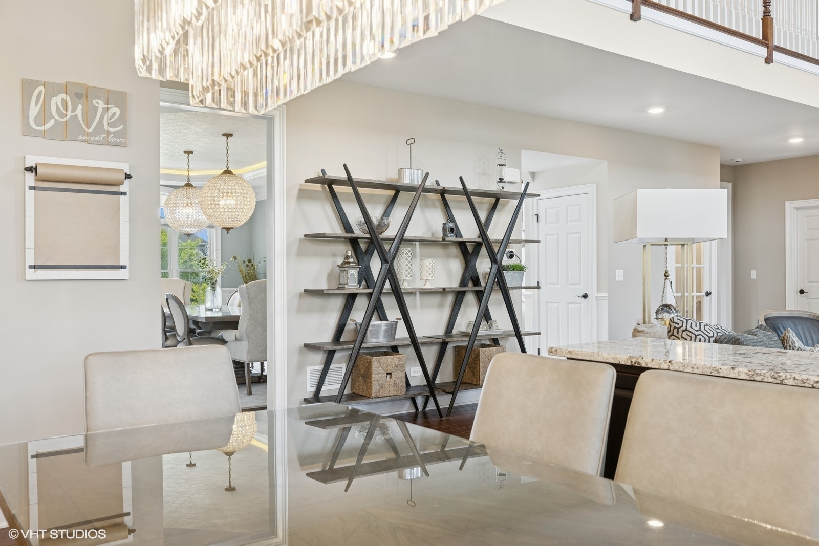 This 10 year old, Woods of South Barrington Estates home checks every box for luxury living and then some, and is a steal at under 1.6m. Set on a premium lot with no neighbors behind, just peace and nature. The entire home was upgraded to a full brick exterior, a stone front porch, plus a governors driveway and 3-car garage. Inside, the custom curved oak staircase and 2-story foyer greet you with ample natural light. Maple wood floors run throughout the main level, and upgraded light fixtures add the perfect modern touch. The expanded two-story great room feels open and airy, and the gourmet kitchen brings the wow factor with granite counters, upgraded appliances, walk in pantry, and a breakfast bar. The dining room? Absolutely stunning, with ambient lighting in the tray ceiling that is a standout. There’s a dedicated office on the main level, plus a finished bump out on the west side of the home, that can be used as another living or large playroom. Upstairs, every bedroom has its own en suite. Two of the bedrooms also include study nooks and walk-in closets. The primary suite is a true retreat with a full sitting room, tray ceiling, automatic shades, dual walk-ins, separate vanities, a private water closet, and a spa-style Kohler shower. The basement was finished last year and is a full extension of the home, complete with a full bar, projector setup, a bedroom that is currently used as a gym, full bath, and a cozy hidden nook under the stairs. Also completed recently is the 3-season room, with a gas fireplace with a custom stone patio outside. The home has been freshly painted, and the 3-car garage and backyard play set seal the deal.
