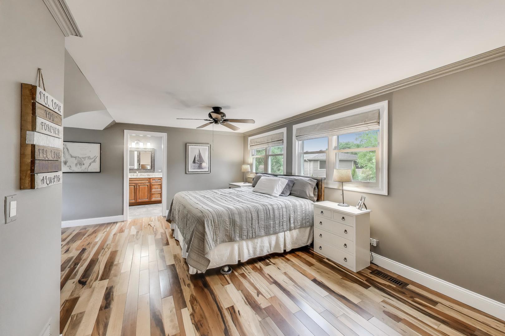 Welcome to 280 Cypress Lane – a beautifully updated and generously sized four-bedroom, three-and-a-half-bath quad-level home perfectly situated on a peaceful cul-de-sac in Libertyville. This wonderful residence offers the ideal blend of comfort, style, and functionality. Step inside to discover a bright and spacious layout featuring formal living and dining rooms, a large and inviting family room with a classic brick wood-burning fireplace, and a private office with custom built-ins throughout. The updated kitchen is a showstopper-complete with custom cabinetry, an expansive island, and abundant space for both entertaining and everyday living. Upstairs, the primary suite provides a luxurious retreat with an updated bath featuring a curb-less walk-in shower and heated floors. Bedroom 2 with its own private en-suite, bedrooms 3 and 4 sharing another full bath complete the second floor. The finished lower level adds flexibility for a playroom, gym, or media space, and the oversized two-car garage offers plenty of extra storage. Enjoy the stunning backyard oasis with a brick patio, lush perennial gardens that bloom beautifully from spring through fall, and a serene, private setting perfect for relaxing or hosting summer gatherings. Thoughtfully updated and lovingly maintained by a Union carpenter and licensed contractor, the home includes newer baths, kitchen, Thermopane windows (nine replaced in 2024), roof (2024), HVAC (2022), interior and exterior paint (2021 – 2025), smart thermostat, and upgraded flooring-ensuring it’s truly move-in ready. Ideally located in a desirable neighborhood close to award winning excellent schools, shopping, dining, and major highways-with the choice of top-rated Libertyville or Vernon Hills High School-this home offers the best of Libertyville living. Don’t miss this opportunity to make 280 Cypress Lane your new home-where comfort, craftsmanship, and community come together beautifully.