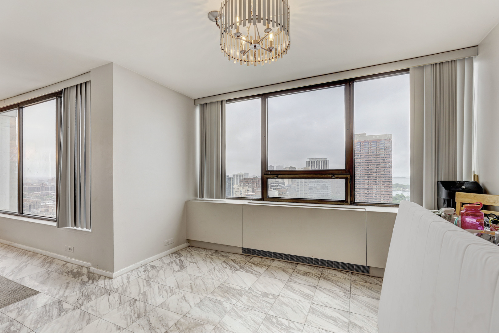 A must see! Spacious Northwest corner 2 bedroom, 2 bathroom unit located in a beautiful park setting on the edge of Lincoln Park along Lake Michigan with breathtaking views of the lake, city and the nearby harbors. The unit features over 1,300 sf of living space, marble tile flooring, lots of closet space and a bathroom off each generous sized bedroom. Galley style kitchen has eating area with views overlooking the lake. Building features a pool, 43rd floor rooftop deck with stunning views of the lake and city skyline, plus clubhouse/party room, exercise room, laundry, storage, doorman, wi-fi, cable and more. You are steps away from 25 miles of lakeshore running, walking and biking trails, Diversey and Belmont Harbors, public transportation, neighborhood restaurants, golfing, the zoo, shopping and more! This unit is an Estate Sale and being sold as-is. Investors welcome. Tenant occupied until Sept. 30th. 24 hour notice for showings please.