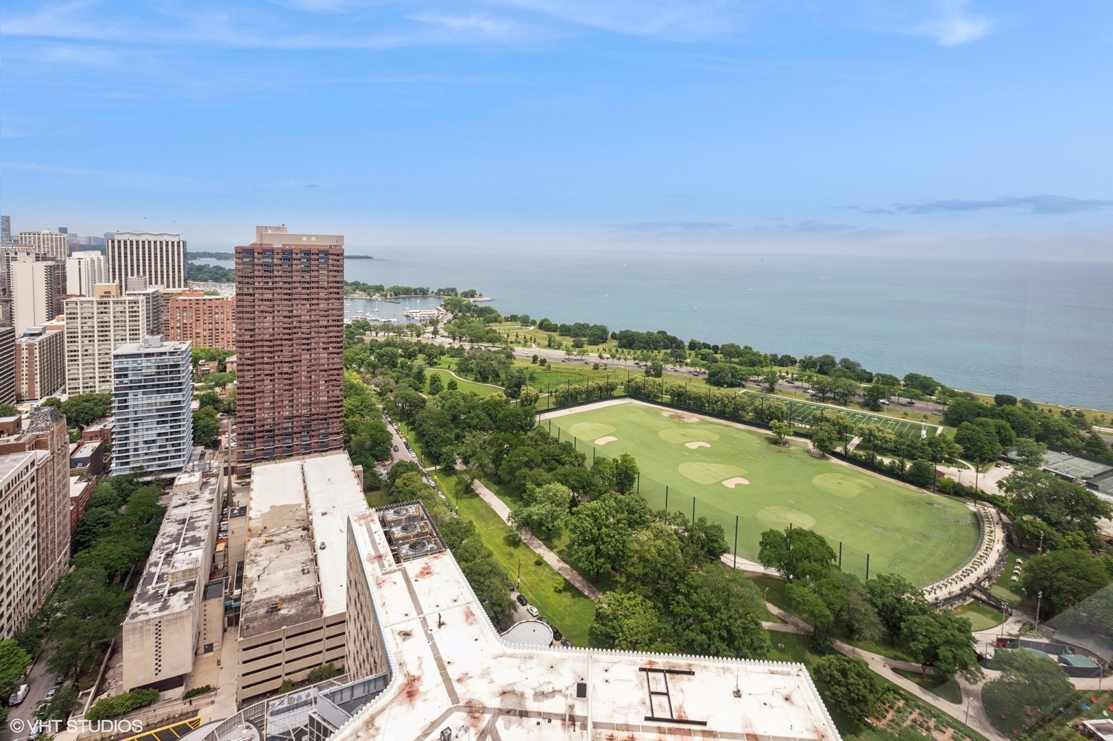 2 bed 2 bath condo in prime location on the 41st floor of 43 total floors. Rarely available corner unit with stunning views over Belmont harbor and northwest exposure of city. Large primary bedroom with western exposure and en suite bath. Panoramic views from the living room and dining area over the north city and lake. This exclusive unit is ready to be updated to your exact style. Location offers the best of city living, green space & nightlife while also providing quiet seclusion on the upper tier. Full amenity building including 24-hour door staff, outdoor pool & sundeck, fitness center, laundry room, receiving room & valet parking with fees. Common areas recently updated. No pets in building. Unit is sold AS IS.