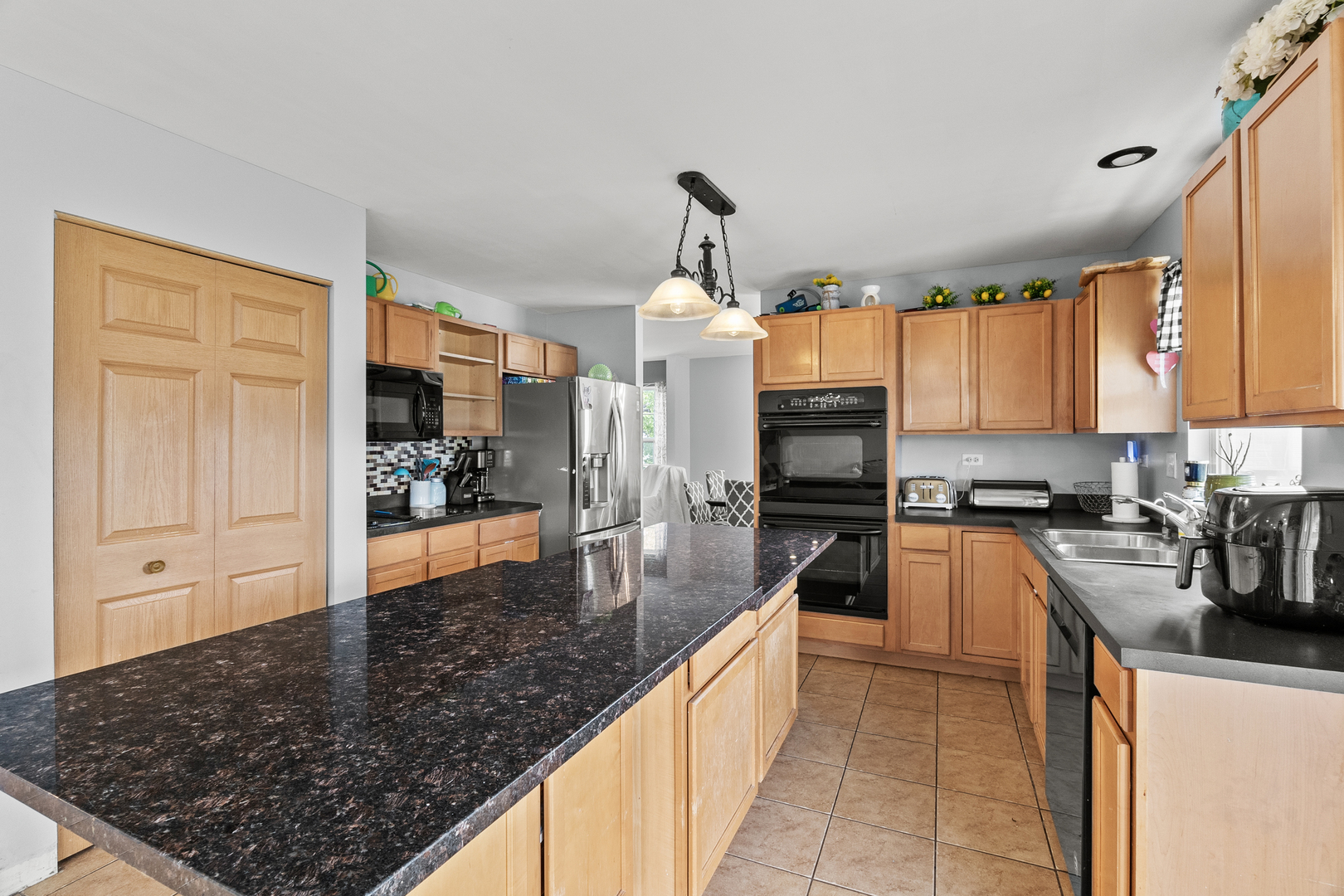 Wow – 5 bedrooms, 4.5 bathrooms, and a full basement with a second kitchen! This home’s greatest strength is its adaptability. It can easily be configured as 3 bedrooms plus 2 studies/home offices-perfect for remote work, creative pursuits, or multigenerational living. The main level features a formal dining room, living room, and family room, all with beautiful hardwood floors. The spacious kitchen offers a granite-topped island and double ovens, while tiled floors in the foyer and kitchen provide both durability and elegance. Step outside to a paver patio, ideal for entertaining. Upstairs, hardwood floors continue throughout. The primary suite features a luxurious bath with dual sinks and a separate shower and a large walk-in closet. The second bedroom includes its own full bath, perfect for guests or extended family, and the third bedroom has access to a large upper deck for added outdoor living. The finished basement expands the possibilities even more, featuring a second kitchen, shared dining area, a full marble bathroom, a recreation room, and a flex room that can serve as a 6th bedroom (non-egress) or private office. With multiple living areas, flexible room configurations, and thoughtful finishes throughout, this home is designed to fit today’s evolving lifestyles. Don’t miss your chance to own this exceptional property in one of Plainfield’s most sought-after neighborhoods.