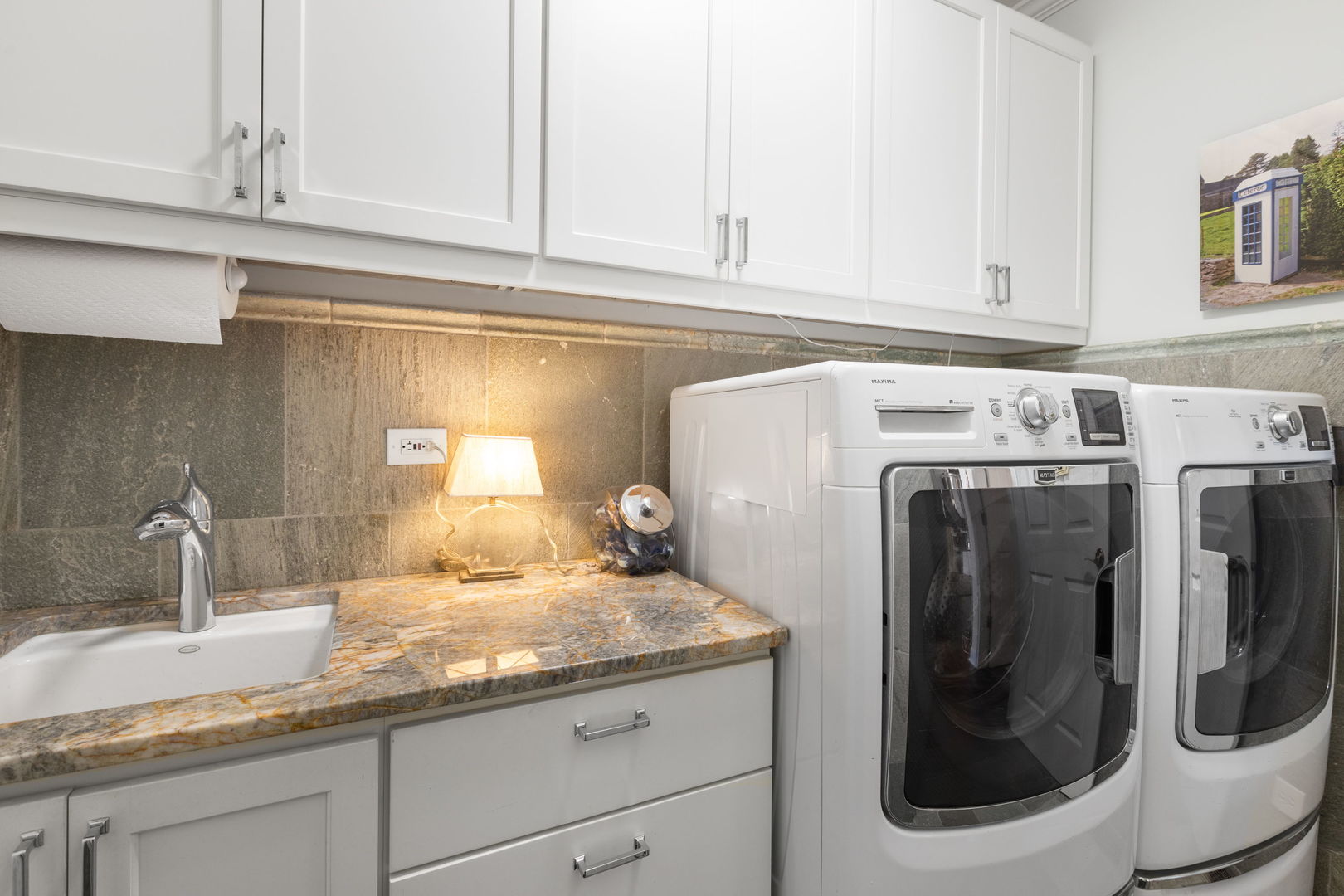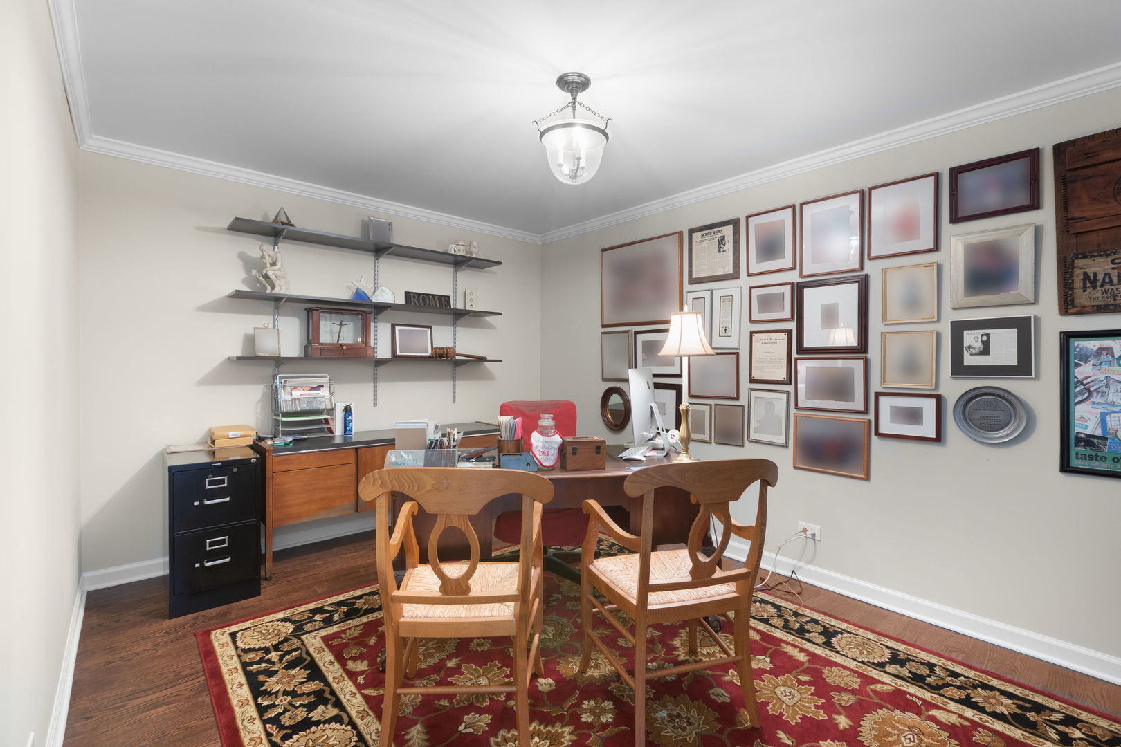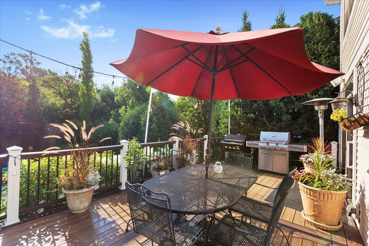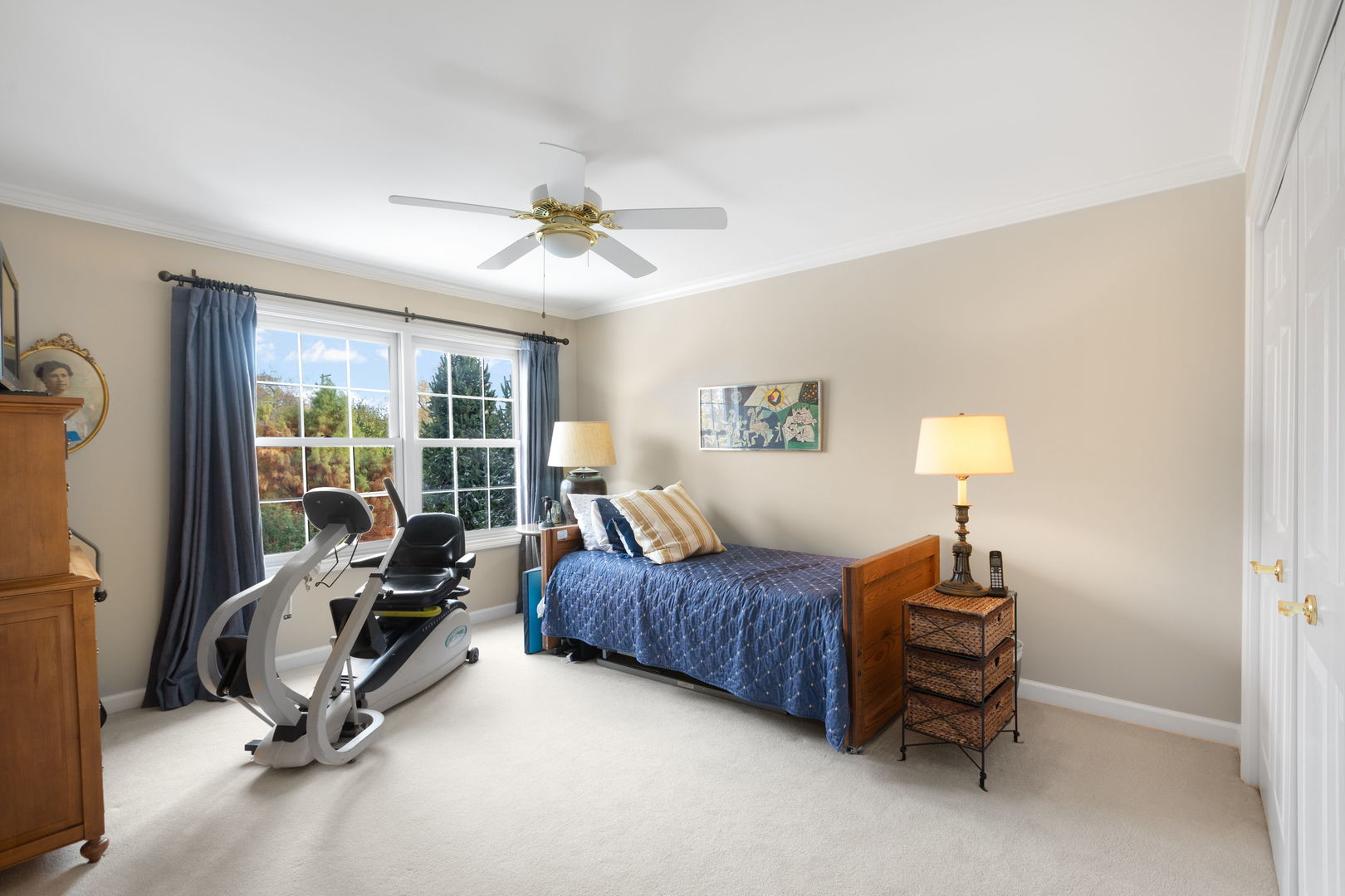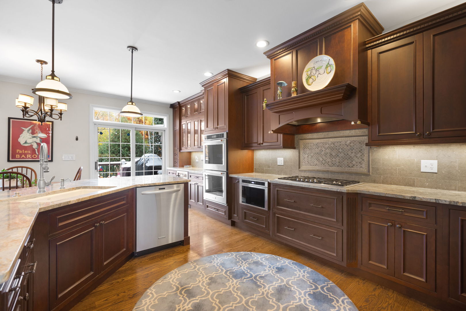 The best of both worlds! Experience maintenance-free living paired with the comfort of a first-floor primary suite and a beautifully landscaped private backyard. This elegant brick home welcomes you with timeless curb appeal, a charming front porch, and a grand two-story foyer featuring hardwood floors and a striking palladium window. The vaulted-ceiling living room is filled with natural light from large windows and seamlessly flows into a formal dining room accented by a graceful chandelier-perfect for entertaining. At the heart of the home, the open-concept kitchen is a chef’s dream. Rich custom cabinetry (including glass-front displays), quartzite countertops, and premium appliances elevate the space-featuring a Sub-Zero refrigerator, Thermador 5-burner cooktop, KitchenAid double ovens and dishwasher, and a Subzero beverage refrigerator. A sliding door leads from the kitchen to an expansive all-Trex deck, overlooking the lush, maturely landscaped backyard and a firepit with Lannon stone surround and path-ideal for gatherings year-round. Beautiful garden with custom low voltage lighting system. The inviting family room includes recessed lighting, plantation shutters, and a cozy gas fireplace, creating a warm atmosphere for everyday living. The first-floor primary suite offers comfort and sophistication with rich crown molding, two custom walk-in closets, and a luxurious en-suite bath featuring limestone tile, five shower heads including body sprays and rainhead plus a bench, whirlpool tub, double vanity, abundant storage, and window with plantation shutters for privacy. A stylish powder room with mosaic marble tile flooring and walls, and a convenient mud/laundry room with updated cabinetry and countertops with extra deep Kohler laundry sink complete the main level. Upstairs, a spacious loft with hardwood floors provides versatile living space, along with two generous bedrooms (one with a walk-in closet), an office, and a full bath with a walk-in shower. The lower level offers excellent storage and the potential to be finished for additional living or recreation space. Enjoy the perfect blend of luxury, function, and ease-all in a beautifully maintained home designed for comfortable living and entertaining.