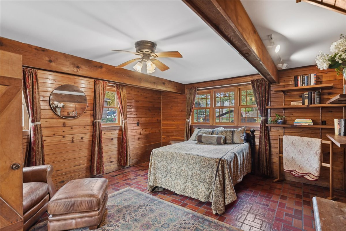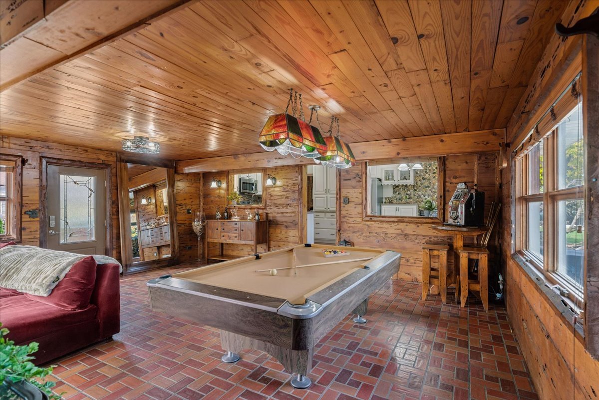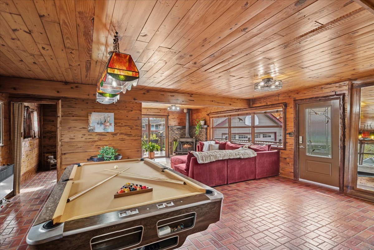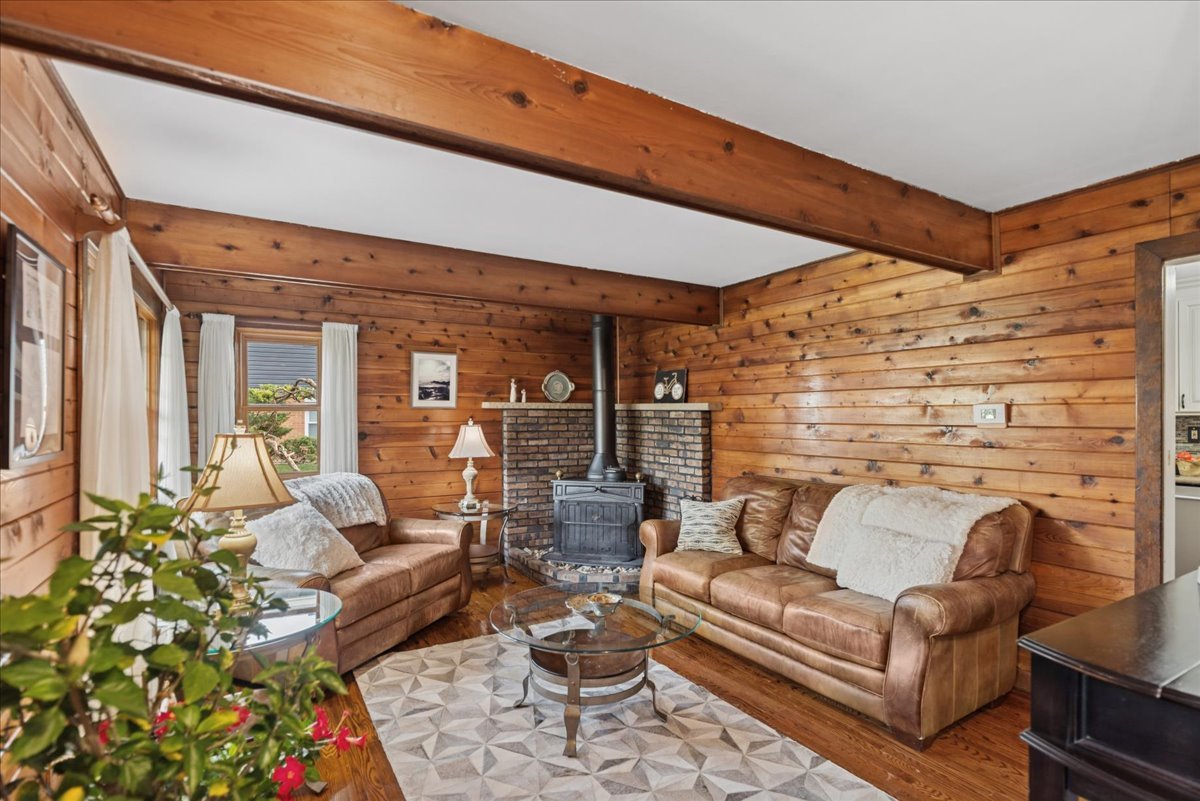Discover a home where timeless quality and modern luxury harmoniously coexist, offering a warm and inviting alternative to the repetitive cold white, gray, and black interiors prevalent today. Built in 1957, this captivating residence retains its original charm while seamlessly integrating thoughtful modern amenity upgrades added over the years. You’ll instantly feel welcomed by the cozy atmosphere, a rare find that stands the test of time. The interior showcases exquisite quality wood paneling and wood plank ceilings, features now enjoying a significant revival in interior design for their inherent character, warmth, and sophistication. These natural materials have been meticulously maintained and enhanced, not covered up, providing a backdrop of enduring style. The home offers updated mechanicals and a well-appointed kitchen that expertly balances functionality with vintage appeal. Two wood-burning stoves add to the home’s character and provide exceptional warmth. The versatile floor plan features an optional fourth bedroom/den/office space conveniently located on the main floor. There are two additional bedrooms on the upper level with a shared full bathroom. The lower level offers flexibility, currently utilized as a primary bedroom retreat complete with its own ensuite full bathroom. The expansive family room is an entertainer’s dream and includes a vintage pool table in excellent condition. Step outside to a private oasis. The backyard is filled with enchanting and well-established perennial gardens, providing a picturesque view from the large main-floor windows and the back deck. A built-in firepit offers a perfect spot for evening relaxation. Car enthusiasts and hobbyists will appreciate the heated, oversized two-car garage with valuable loft space above. This is your opportunity to own a uniquely beautiful home that masterfully blends old-school charm with contemporary comforts. It is not to be missed! Schedule your appointment today to experience this exceptional property – it could be the one!
