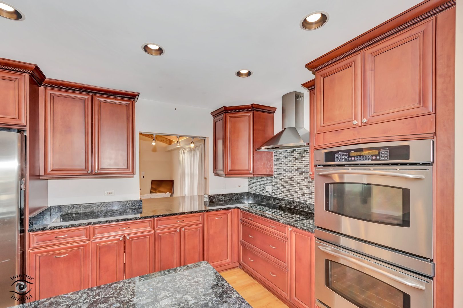 Beautifully expanded tri-level lovingly maintained by the original owners and in the same family for decades. A thoughtful addition removed the original attached garage and created valuable extra living space, including a spacious main floor primary suite with full primary bath. The open kitchen features a large granite island, custom cabinetry, double convection oven, electric stove, custom cabinetry in island, opening to the bright family room with a large bay window and hardwood floors. A second living area includes a great room addition with wet bar and half bath, plus sliding doors leading to the large fenced in backyard. Finished basement offers a cozy fireplace and ample storage. Upper level includes three generous bedrooms with hardwood floors and a full bath with jacuzzi tub. Exterior features include a 3.5- car detached garage, whole-house generator, attic with heat tape, concrete steps, and updated mechanicals roof (2015), HVAC (5 years), hot water heater (2 years), driveway 2018. Located near parks, playgrounds, tennis courts, pools, The Glen, shopping, dining and award- winning schools. A truly rare opportunity to own a home thats been cherished and cared for over generations. This home is every commuters dream with just a short drive from the Metra train station, downtown Glenview and all of the restaurants and shopping Glenview has to offer.