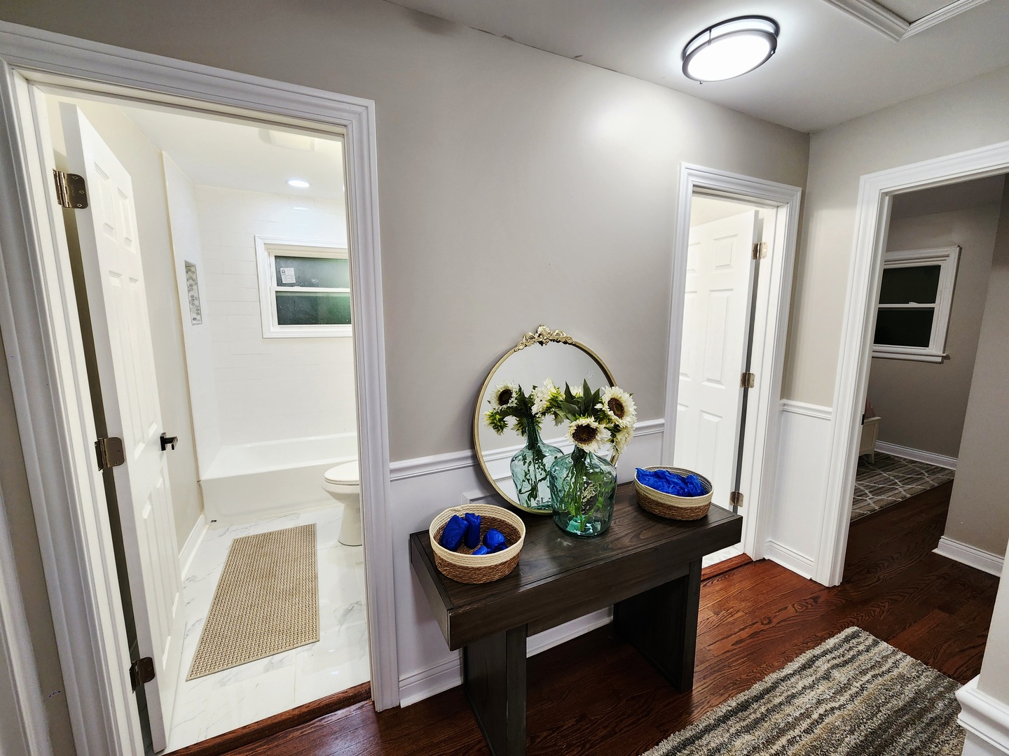 Welcome home to this beautiful, fully renovated all brick ranch in Evergreen Park, right next door to the Beverly Neighborhood. This home has been fully transformed from the inside out. Updates behind the walls include all new electrical (with new electrical panel), all new plumbing, and an all new HVAC system as the home was converted from forced to central air. This comes with a brand new furnace, new water heater, and new AC unit. Once you pull up to the home, you will find all brand new landscaping, all brand new windows, newer roof, and all brand new exterior and interior doors. Once you step through the front door, you will find beautiful original re-finished hardwood floors throughout, a newly painted interior, custom wainscoting and crown molding, and recessed lighting adding plenty of light. This 3 bedroom, 2 bath home includes a brand new bathroom complete with a custom shower with custom tile. Both bathrooms include brand new vanities, flooring, and finishes. You will love cooking in this kitchen with its natural light, brand new custom cabinets, including soft close drawers, brand new quartz countertops, all new stainless steel appliances, new backsplash, and gold accents. There is extra storage in the mudroom right off of the back entryway. Exterior updates include a brand new garage door opener, a replaced city lead line, and all new landscaping. This home leaves nothing to be desired. There is nothing left to do except move in! Come and see this beauty for yourself! Home is agent-owned.