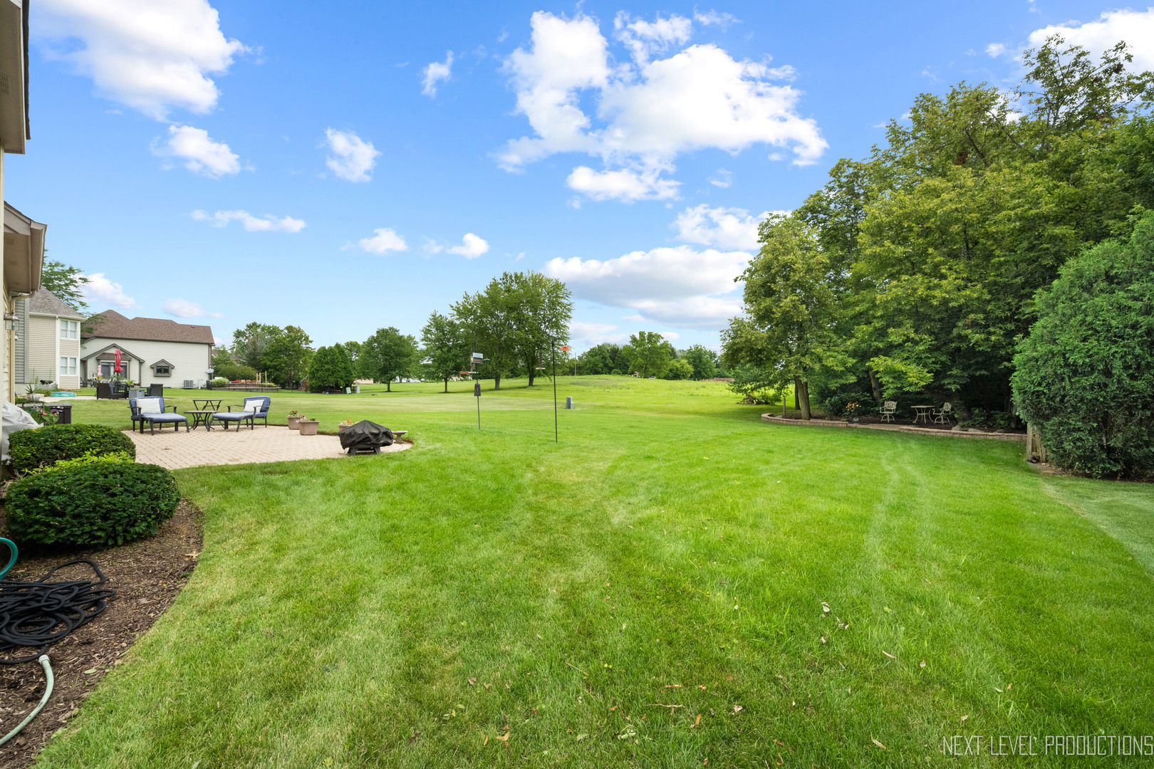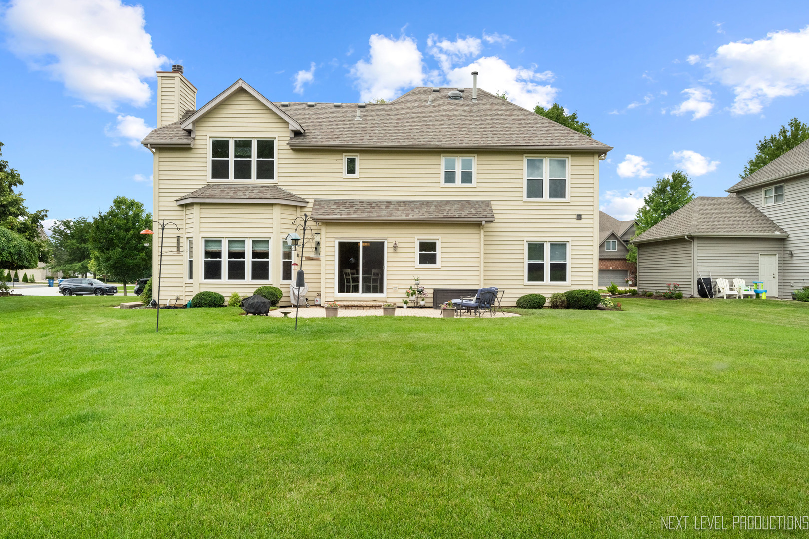 START THE NEW YEAR IN STYLE! This beautifully maintained Ginger Woods home checks every box-perfectly priced, move-in ready, and tucked away on a quiet cul-de-sac with no neighbors behind. From the moment you step inside, you’ll love the comfortable flow, abundant natural light, and welcoming spaces designed for everyday living and entertaining. The showstopper kitchen was completely remodeled in 2022 and features 42″ white cabinets, sleek quartz countertops, custom backsplash, and a brand-new stainless steel refrigerator (2025). It opens effortlessly to the family room with soaring 12′ ceilings, a gas fireplace, newer (2024) carpet, and oversized windows overlooking the huge, private backyard. The formal living and dining rooms offer flexible entertaining space, while a first-floor office-freshly painted and with newer carpet (2024) -provides a quiet retreat. Upstairs you’ll find four spacious bedrooms including a private primary suite with a spa-like bath and two walk-in closets. The finished basement adds incredible versatility with a full bath, expansive rec room with wet bar, play area, workout room, and tons of storage. Major updates include newer furnace and A/C (2015), newer sliding patio door (2016), newer windows (2017), fresh interior paint (2024), updated light fixtures, and a new stainless steel refrigerator (2025). Enjoy summer nights on the expansive brick paver patio and the rare privacy of an oversized lot that feels miles away-yet you’re just minutes to I-88, the Route 59 train, shopping, dining, the Illinois Prairie Path, and top-rated District 101 schools. This one is impressive. Don’t miss it. Welcome home!