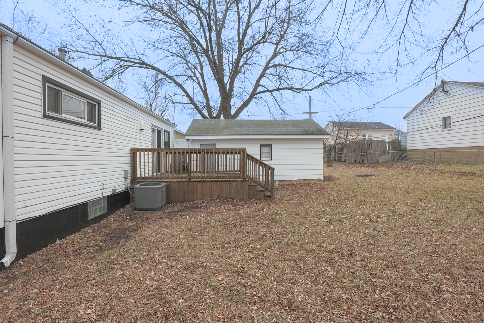 Welcome home to this fully renovated 3-bedroom, 1-bath ranch that blends modern updates with everyday comfort. The completely redesigned kitchen includes new cabinetry, stainless steel refrigerator, range, and microwave, along with new countertops, sink, and faucet. The main level features brand-new LVP flooring throughout and two spacious bedrooms, each with large closets. The bathroom has been fully updated with a new vanity and toilet, plus a shower-over-tub finished with new ceramic tile and a new ceramic tile floor. The lower level offers additional living space with a rec room featuring new carpet, plus a third bedroom also finished with new carpet. A new water heater adds peace of mind. Outside, enjoy a fenced-in backyard with a deck, perfect for relaxing or entertaining. The detached garage adds convenience, while sidewalks, easy access to shopping, and close proximity to the interstate make this home as practical as it is stylish.