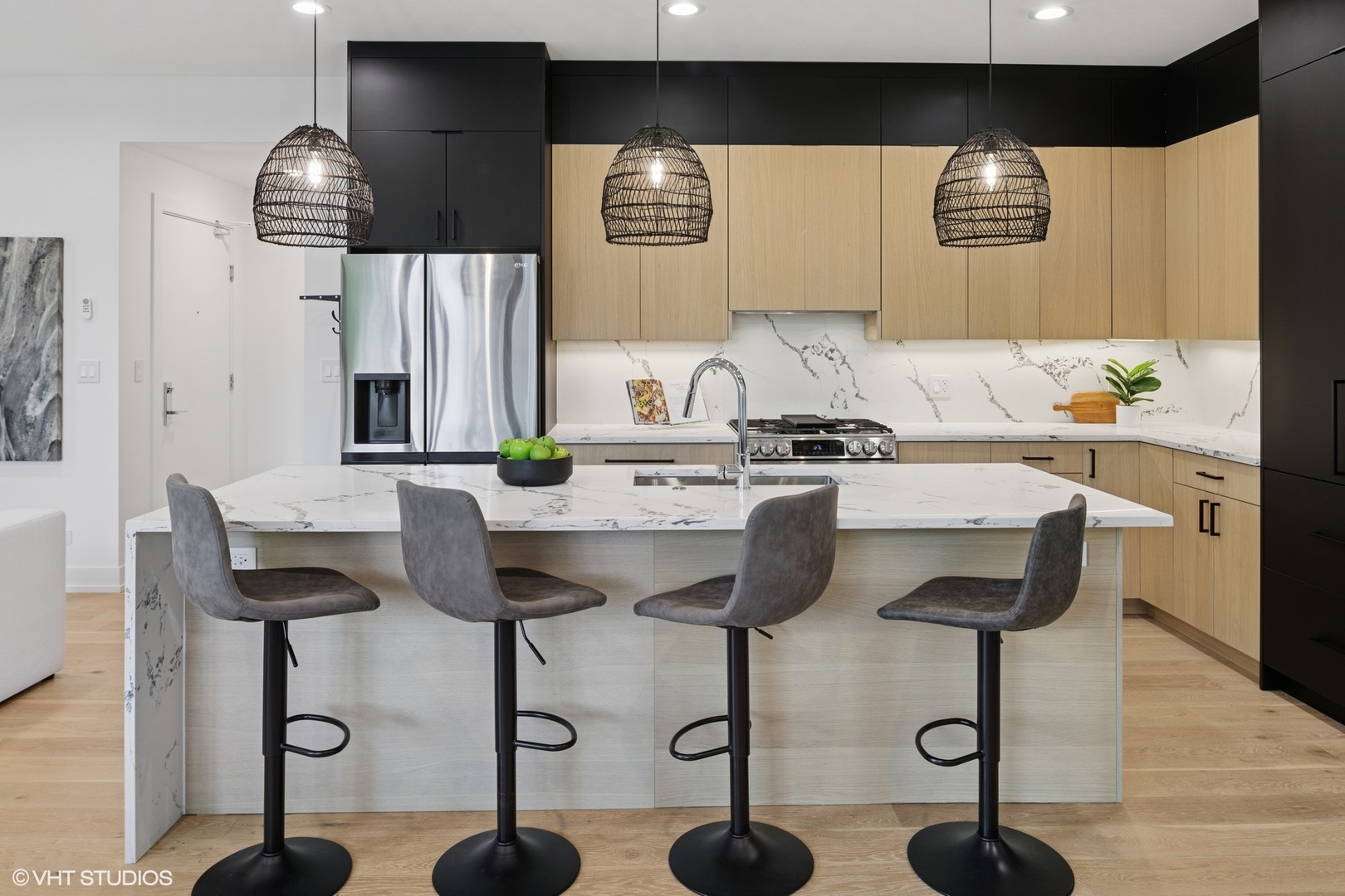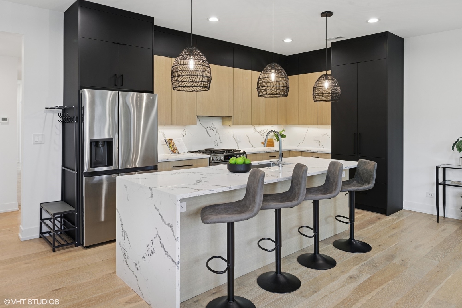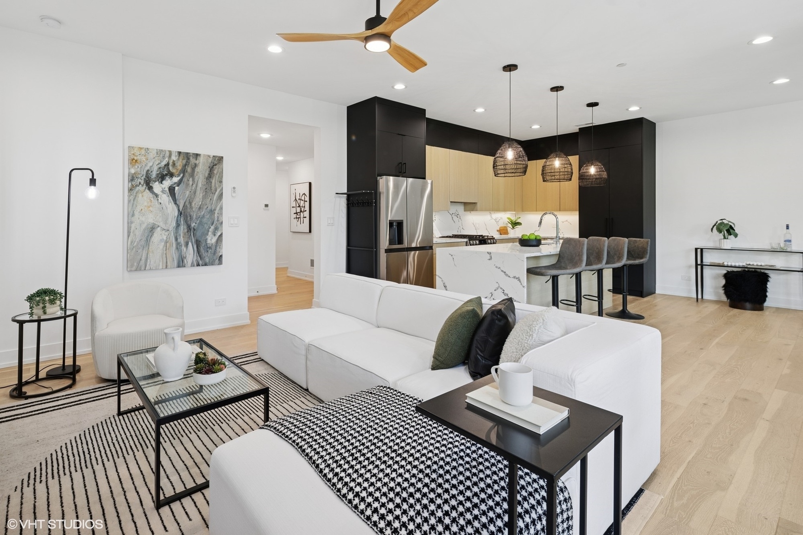 Welcome home to 2820 N Rockwell #2, where Logan Square meets Avondale. This extra-wide 3 bed, 2.5 bath simplex offers the best of elevated indoor-outdoor living-with a covered balcony featuring TimberTech composite decking (floor and ceiling), glass railing, and nearly 1,000 sq ft of fully upgraded private rooftop space complete with an outdoor kitchen, entertainment center, green space, and more. Inside, the home is filled with natural light and thoughtful details: floor-to-ceiling windows, solid core doors, wide plank hardwood floors, and outfitted closets throughout. The chef’s kitchen anchors the space with two-toned custom cabinetry, quartz countertops, a full-height backsplash, a generous island with waterfall edge, dedicated pantry, and an upgraded LG stainless appliance suite (including a WiFi-enabled range). The oversized, spa-like primary bath includes heated floors, a deep soaking tub inside a porcelain-tiled shower room, and a double vanity. Additional features include a tankless water heater and EV-ready garage parking (one space included). Tucked between Logan Square and Avondale, you’re minutes from some of our favorite neighborhood spots-Maplewood and Ravinia Brewing, Four Letter Word Coffee, Ludlow Lounge, and more. Convenient to the North Branch trail, Target, HomeGoods, a movie theater, dog park, and local shops, with easy access to 90/94, the CTA Blue Line, and downtown.