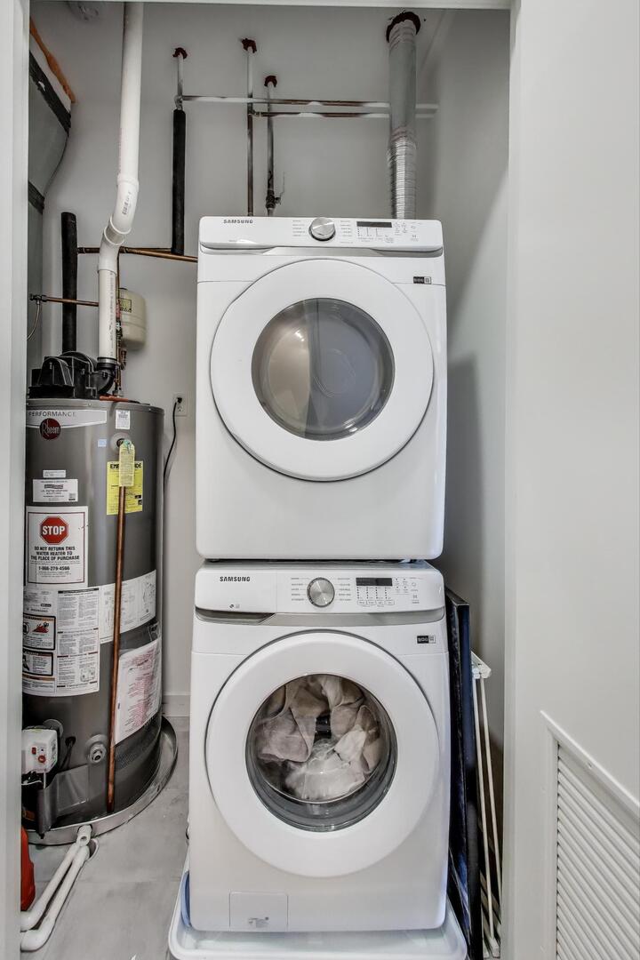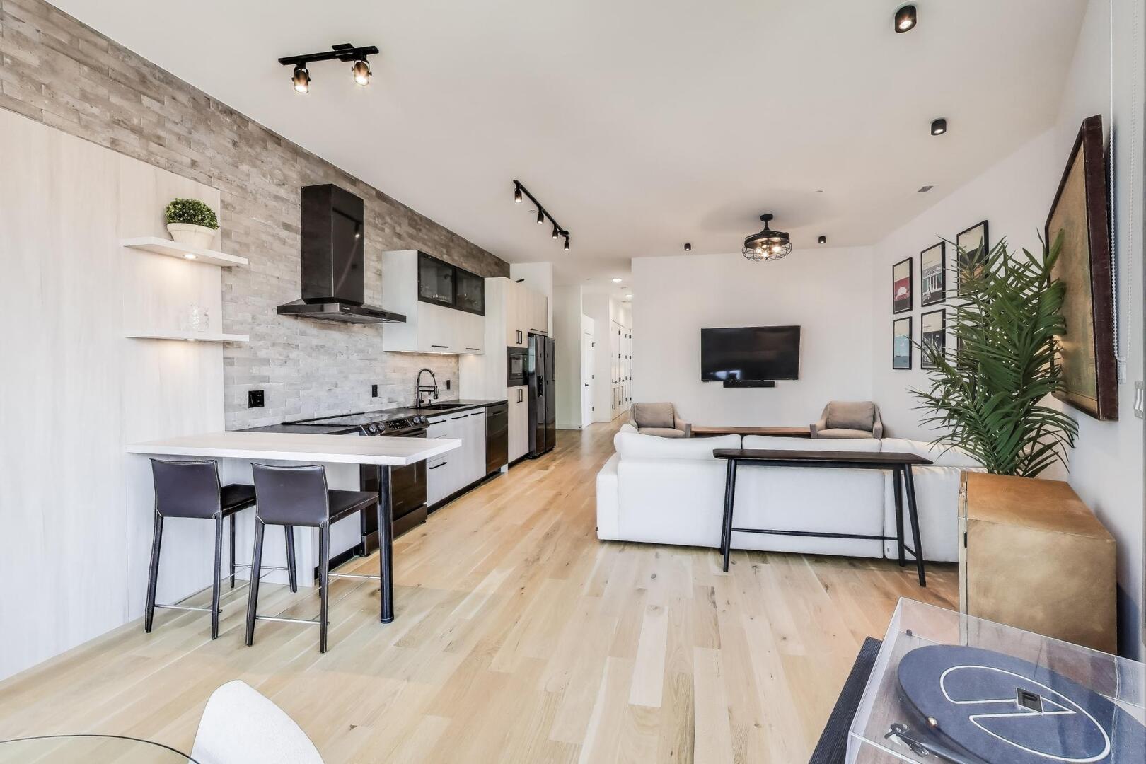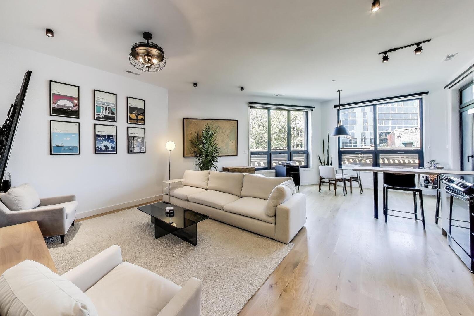Luxury Modern Living in Prime Logan Square | 2023 New Construction Corner Unit Steps from the Blue Line. Welcome to this stunning 2-bed, 2-bath corner-unit condo, ideally located in the heart of Logan Square-just a 2-minute walk to the California Blue Line. Built in 2023, this newer construction home boasts designer finishes, a smart open-concept layout, and sun-drenched living spaces thanks to expansive windows in every room. Step inside to find wide plank white oak flooring flowing throughout the main living areas, complemented by soaring ceilings and abundant natural light. The chef’s kitchen is a showstopper, featuring custom cabinetry with sleek black hardware, a dramatic full-wall brick backsplash, quartz countertops, a large eat-in island, and high-end Samsung black stainless steel appliances-perfect for entertaining or quiet mornings at home. The spacious primary suite is a true retreat, complete with a large walk-in closet, custom lighting, a floating double vanity, and a luxurious walk-in shower with a rainfall showerhead and floor-to-ceiling porcelain tile. The second bedroom is fully outfitted with a custom Murphy bed, making it ideal as a home office, guest room, or both. The second bath includes a deep soaking tub, a custom glass door, and elegant tile finishes. Enjoy indoor-outdoor living with a covered balcony featuring a gas hookup, outlet, and finished in low-maintenance Trex decking, perfect for savoring coffee at sunrise or cocktails at sunset. Additional highlights include triple-pane windows for superior soundproofing, a full-size Samsung washer/dryer, and heated garage parking with an EV charger hook-up and additional outlet included in the price.