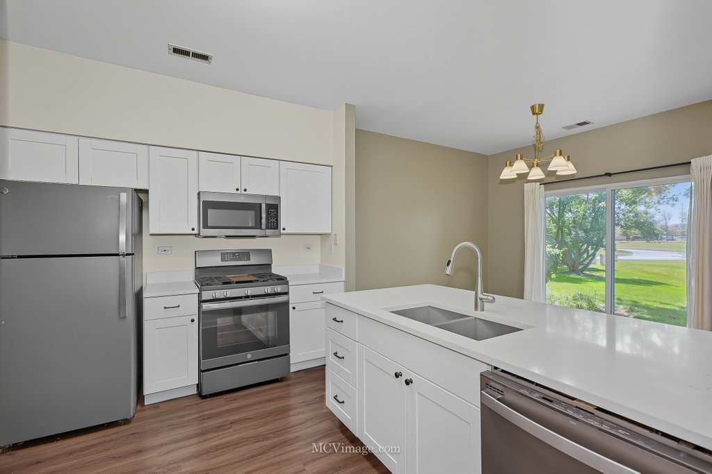 MOVE IN READY. This impressive North-East front exposure end-unit in the desirable Kingspointe Subdivision offers privacy and convenience in a quiet cul-de-sac. With a prime location near I-88, downtown Naperville, Fox Valley Mall, Metra, and Block 59, it’s perfect for those seeking easy access to amenities and transportation. Assigned to IPSD District 204 schools, including Metea Valley High School, making it ideal for families. Notable Key Features are a Bright entryway and a stunning 2-story foyer, 2-story Living room with a fireplace. A brand new kitchen with stainless steel appliances and a separate dining table area. Two bedrooms and two full baths on the 2nd floor. Convenient powder room and laundry room on the 1st floor. Large Primary Bedroom suite, vaulted ceilings enhance the open feel, primary bathroom with new luxury vinyl plank flooring and dual vanity. Luxury Vinly Plank on the Main Floor (no carpet). Attached 2 car garage with an extra-long driveway, this end unit townhouse has a private cul-de-sac location. Private Patio in the backyard. List of Updates: New Furnace 2021, Luxury Vinyl Flooring on the 1st level, New kitchen including appliances and 2nd floor bathrooms were remodeled in 2022. Professionally painted in 2021, Upstairs carpet was replaced in 2021, Architectural roof with Atlas shingles and Upgraded 6″ gutters approx 2021, Water Heater is about 6 years old. Investor buyers, as per HOA, Rental cap in place, please contact HOA directly for further inquiries. WHEN LOCATION, SIZE, FEATURES, and LIST PRICE are a PERFECT 10! Welcome Home!