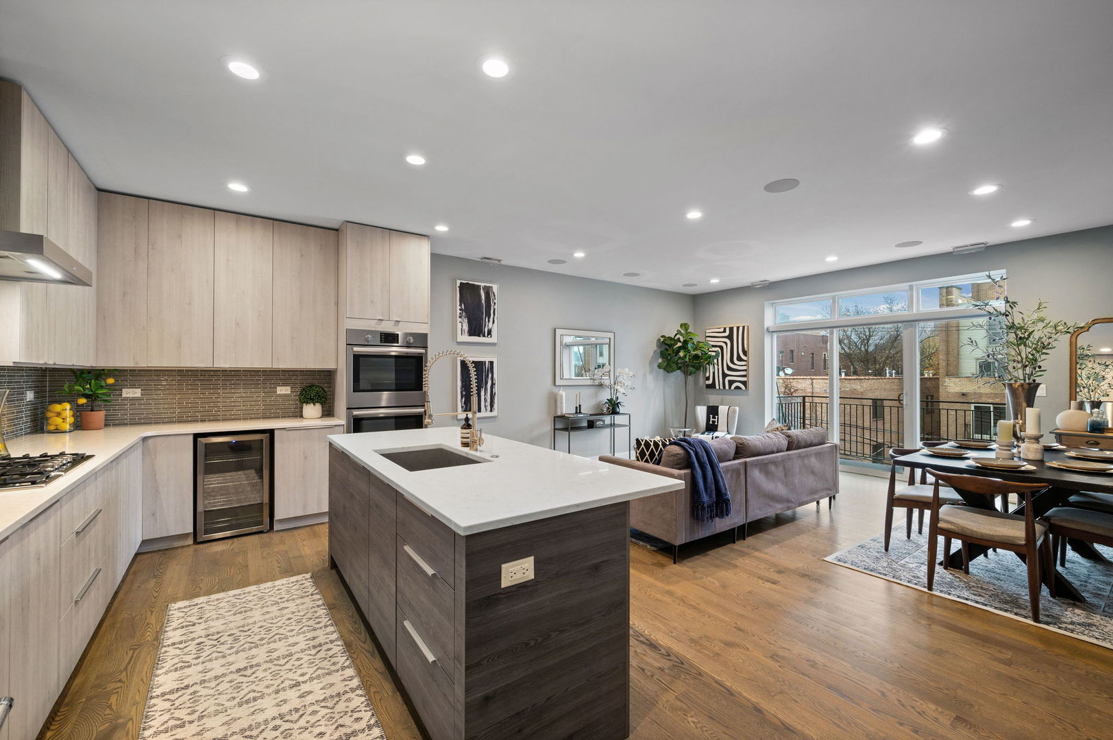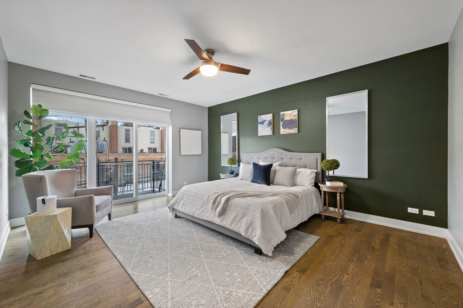 Step into luxury in the heart of Lakeview. This expansive 3-bed, 2-bath condo in a boutique elevator building built in 2018 offers an open layout with soaring ceilings, rich hardwood floors, and is flooded with morning light through the unobstructed east facing windows. The open-concept living and dining space flows effortlessly to the kitchen, creating a perfect environment for entertaining. The kitchen impresses with high-end Bosch and KitchenAid appliances, a double oven, sleek quartz countertops, and abundant cabinetry. The bedrooms are oversized perfect for comfortable WFH setup and/or spare bedrooms. The primary bedroom is outfitted with multiple closets including a large walk-in. The primary bath is truly spa like with heated floors and double rainfall showerheads. Enjoy three private outdoor spaces, including a stunning rooftop deck ideal for grilling, hosting, or unwinding with views of the skyline. You’ll never have storage issues with the amount of closet space in this unit. Additional highlights include in-unit laundry, garage parking, and the ease and privacy of boutique elevator living. Enjoy Lakeview and Lincoln Park’s dining, shopping, parks, transit, and the lakefront.