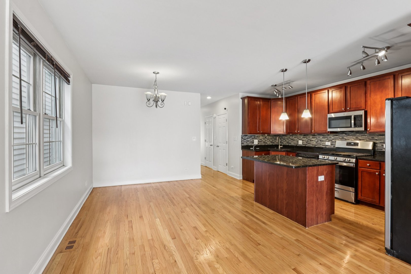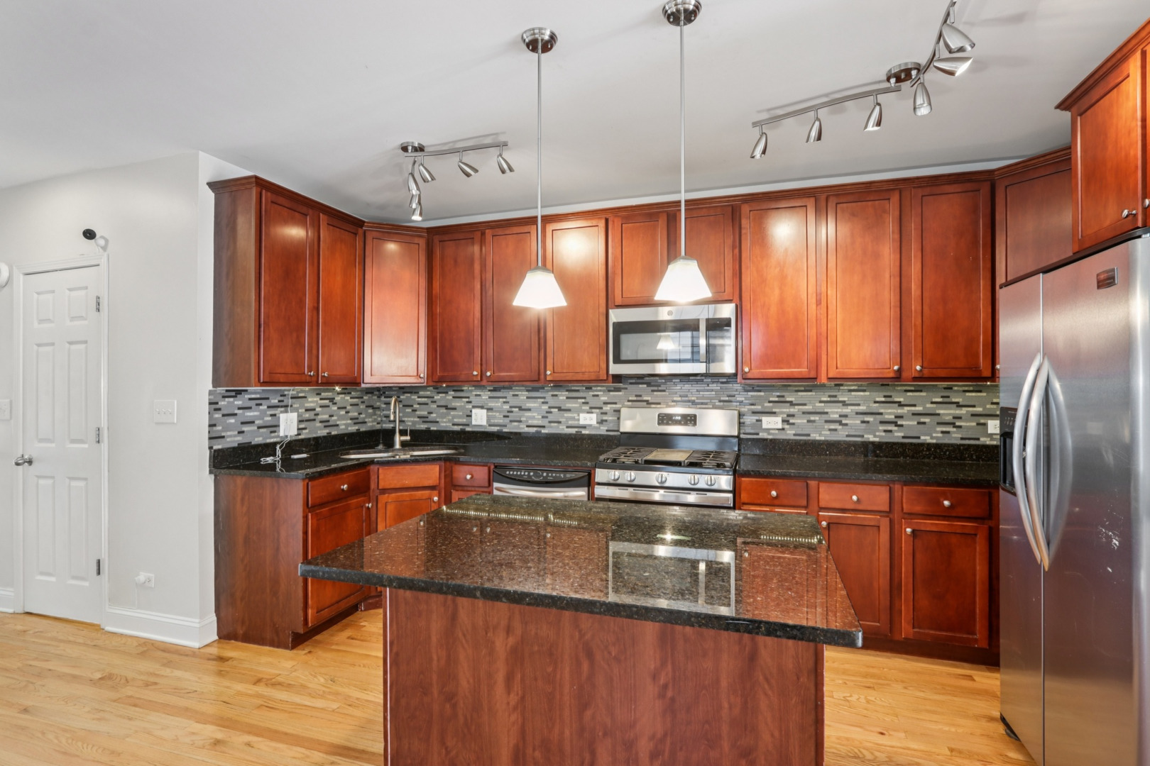 Spacious 4-bedroom, 3.5-bath duplex-down in a well-maintained, all-brick 3-unit building. This thoughtfully updated home offers generous living space across two levels, with refinished hardwood floors (July 2025) and a freshly updated kitchen featuring granite countertops, stainless steel appliances, a center island, and new garbage disposal. The main living area is anchored by a cozy fireplace and flows seamlessly for both everyday living and entertaining. Both full bathrooms on the main level were updated in 2025, while the expansive lower level offers soaring 10-foot ceilings, luxury vinyl plank flooring, a large family room with a second fireplace, two spacious bedrooms, a full bath, laundry room, and excellent storage. Additional features include ample parking included, a private deck, front-load washer/dryer (2021), hot water tank (2022), and gas stove (2021). The primary suite offers a whirlpool tub and double vanity. All the space you need, modern updates where it counts, and convenient access to everything the city offers.