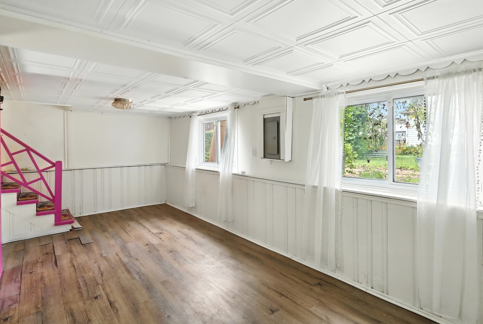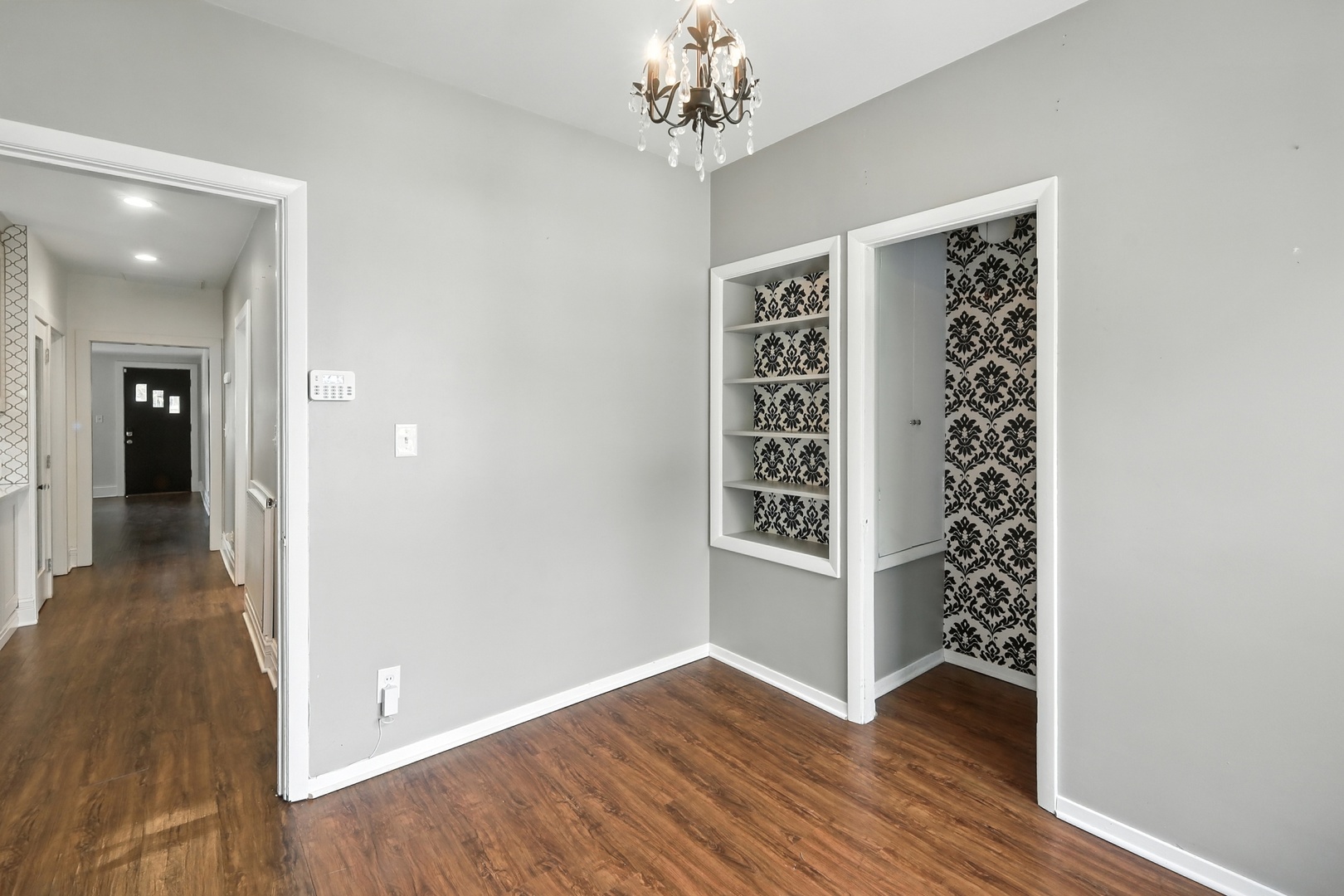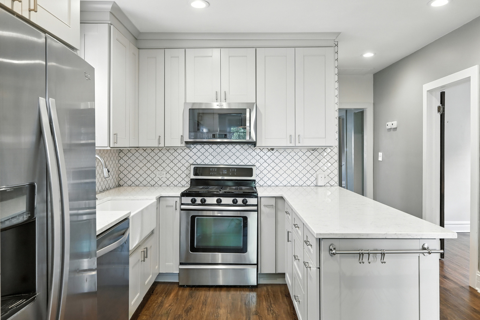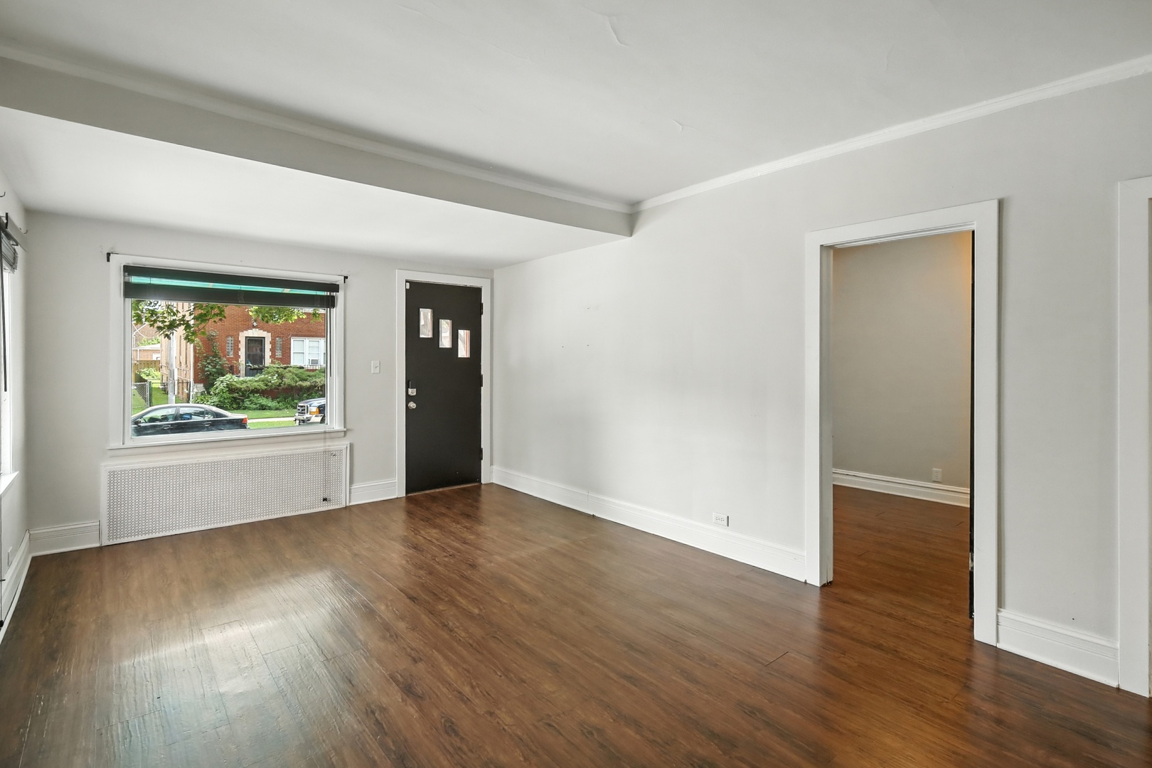 Elmwood Park 3 bedroom has gleaming hardwood floors throughout. Living room has crown molding. Newer, modern kitchen has granite countertops, stainless steel appliances, canned lights, farm style sink and 42″ cabinets. Full bath recently redone with ceramic tile floor, ceramic tile shower surround and large glass block window for plenty of natural light. Elegant dining room overlooks spacious mature yard with new gutters around the house, brick paver patio and two car garage with electronic opener. Finished basement area has newer plank flooring and multiple windows for abundant sunlight. Walk to award winning grammar school! Pride of ownership! Come see for yourself!! Hurry!!!