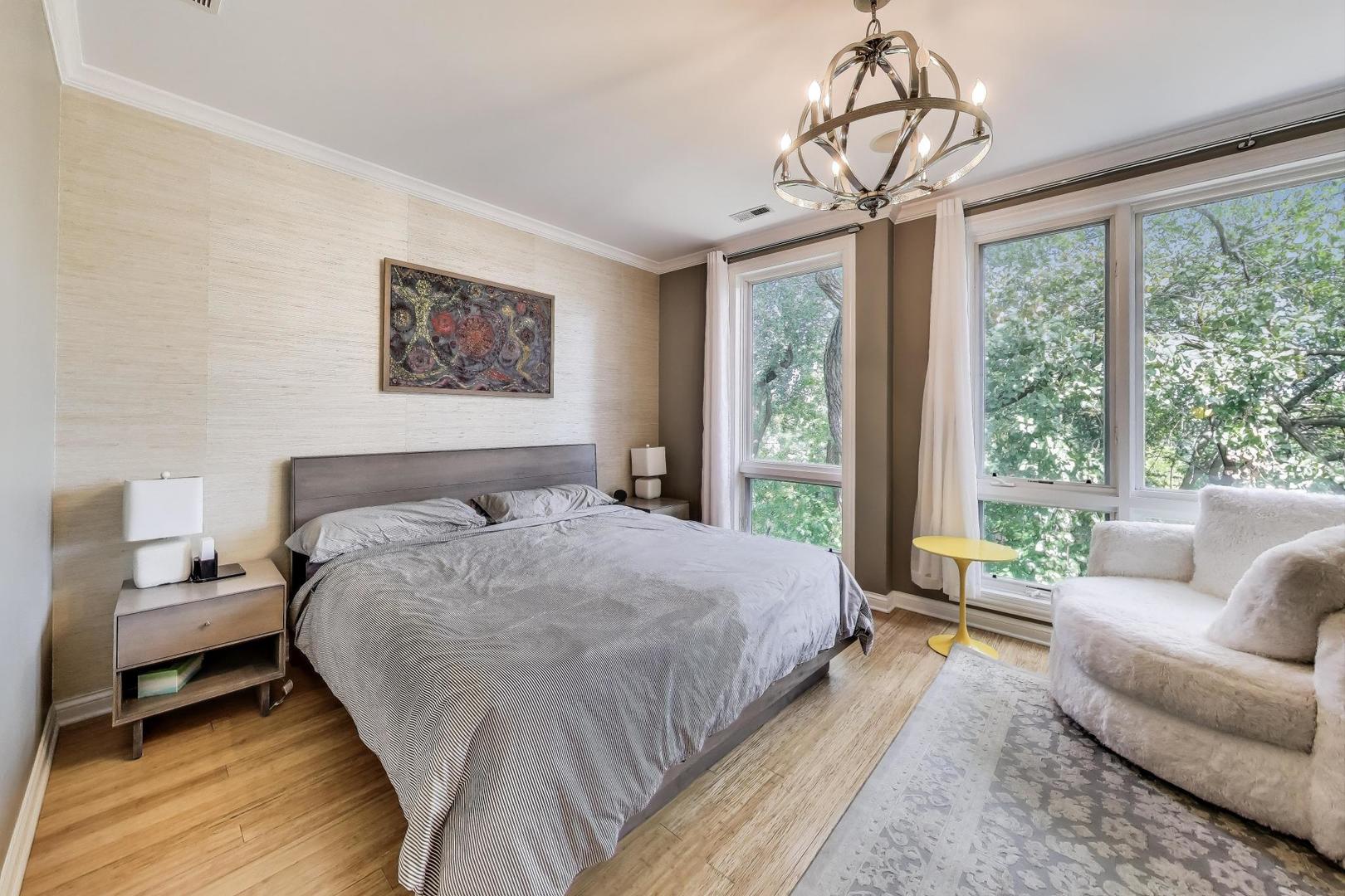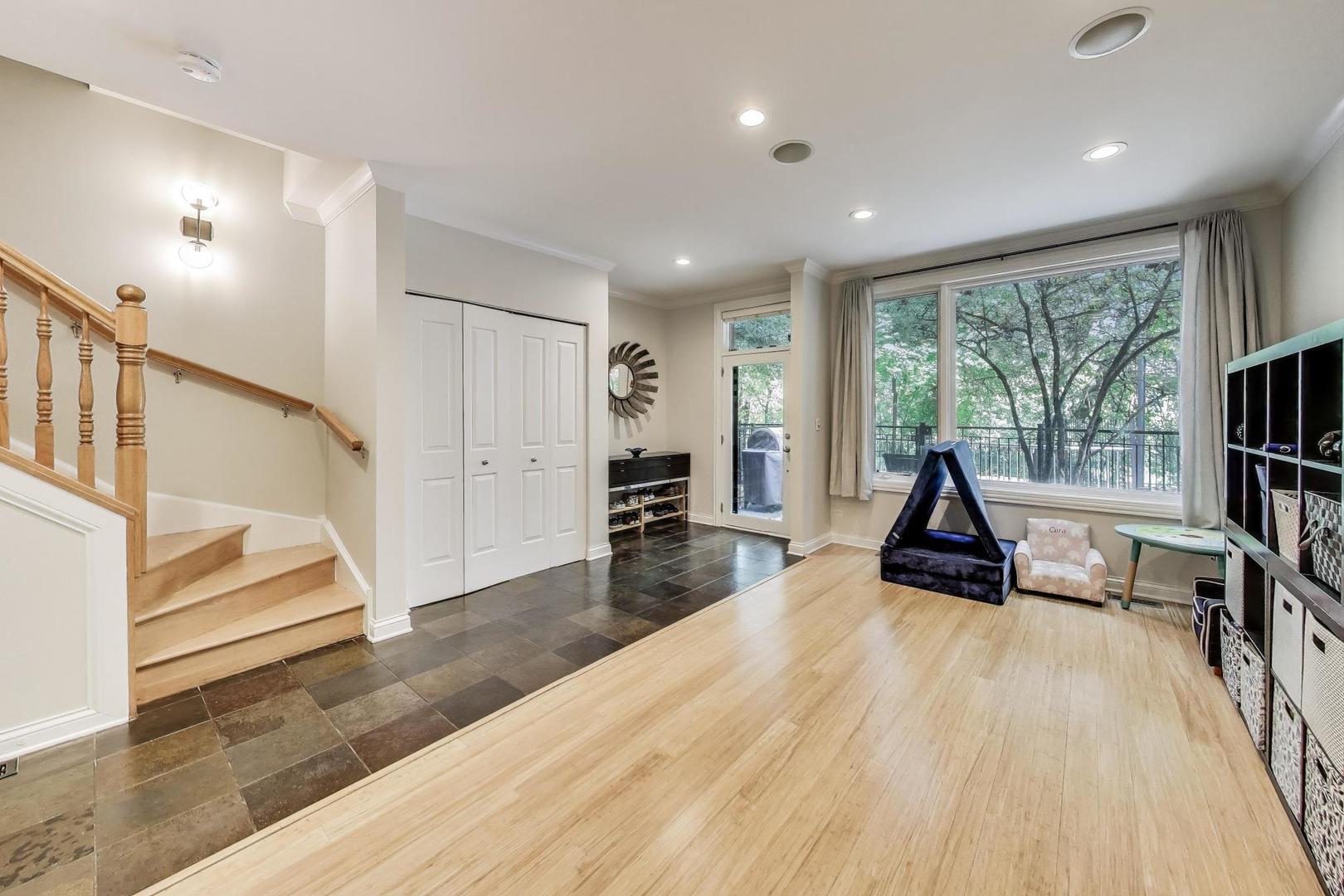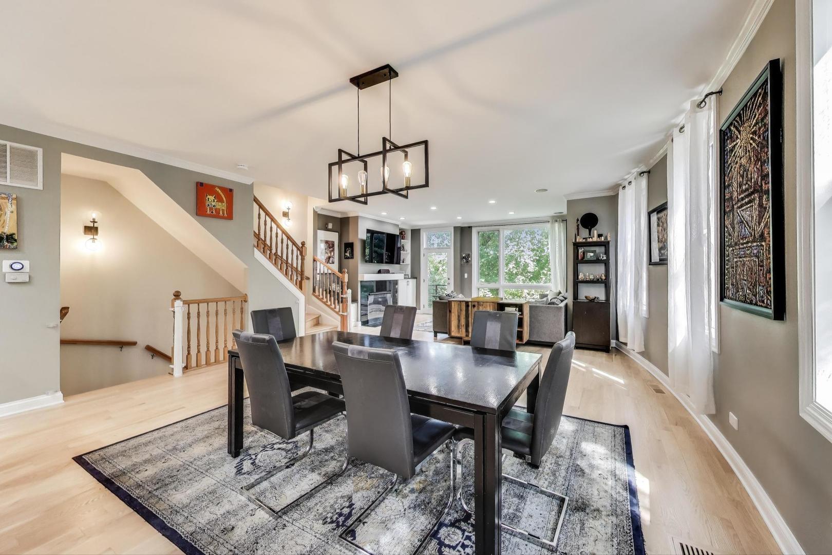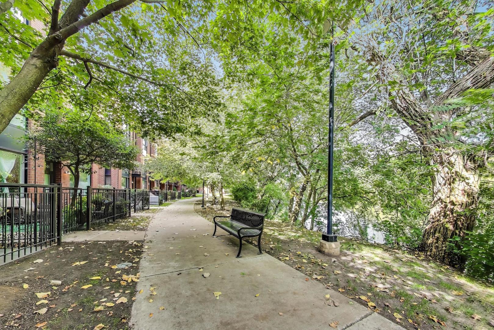 Largest 4 bedroom unit in the complex with 3000+Sq Ft of highly upgraded living spaces. This quiet, sunny waterfront corner home features an attached 2-car garage with storage, 5 outdoor spaces, including a private front and side yard. Awesome kitchen with stainless steel appliances, cherry cabinets, granite counters & island, opening to a 29 X 18 living area overlooking the water, 2 decks, hardwood floors, a cozy fireplace. Tall ceilings, crown moldings. A huge and bright primary suite overlooking the Chicago river, a spa-like primary bath with heated floors and a wonderful soaking tub, and a large closet. 3 additional bedrooms on the top floor, an office on the primary suite level as well as flexible family room or an entertainment space with a separate bathroom on the ground level with direct access to the garage and a front yard. Zoned HVAC and so much more!