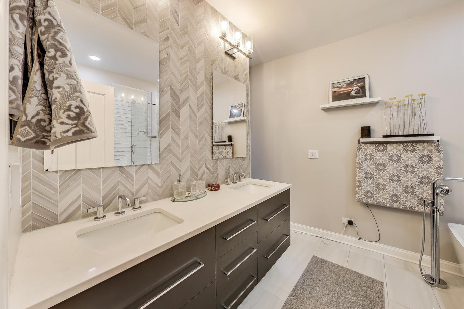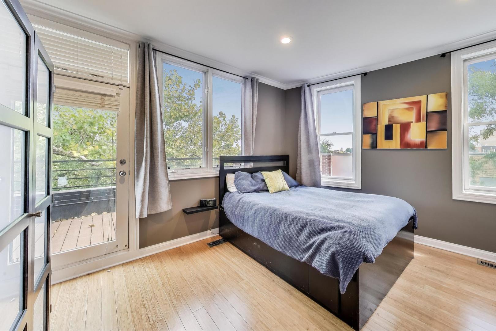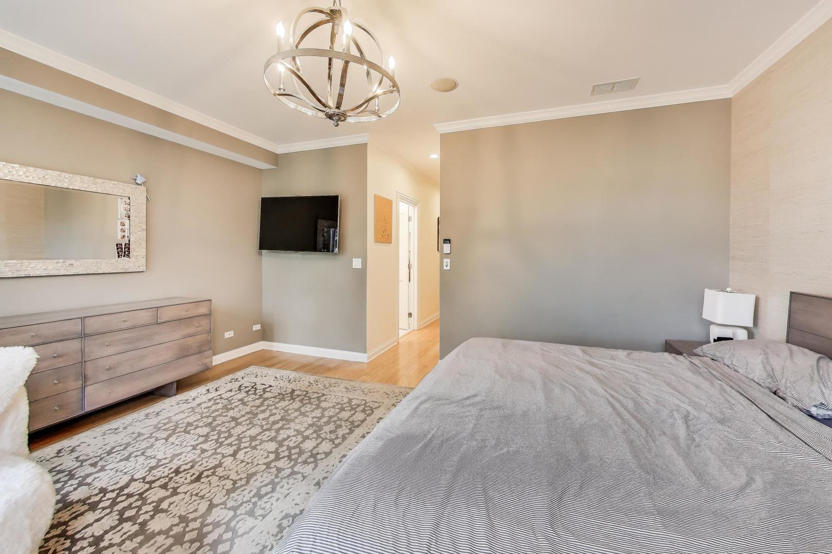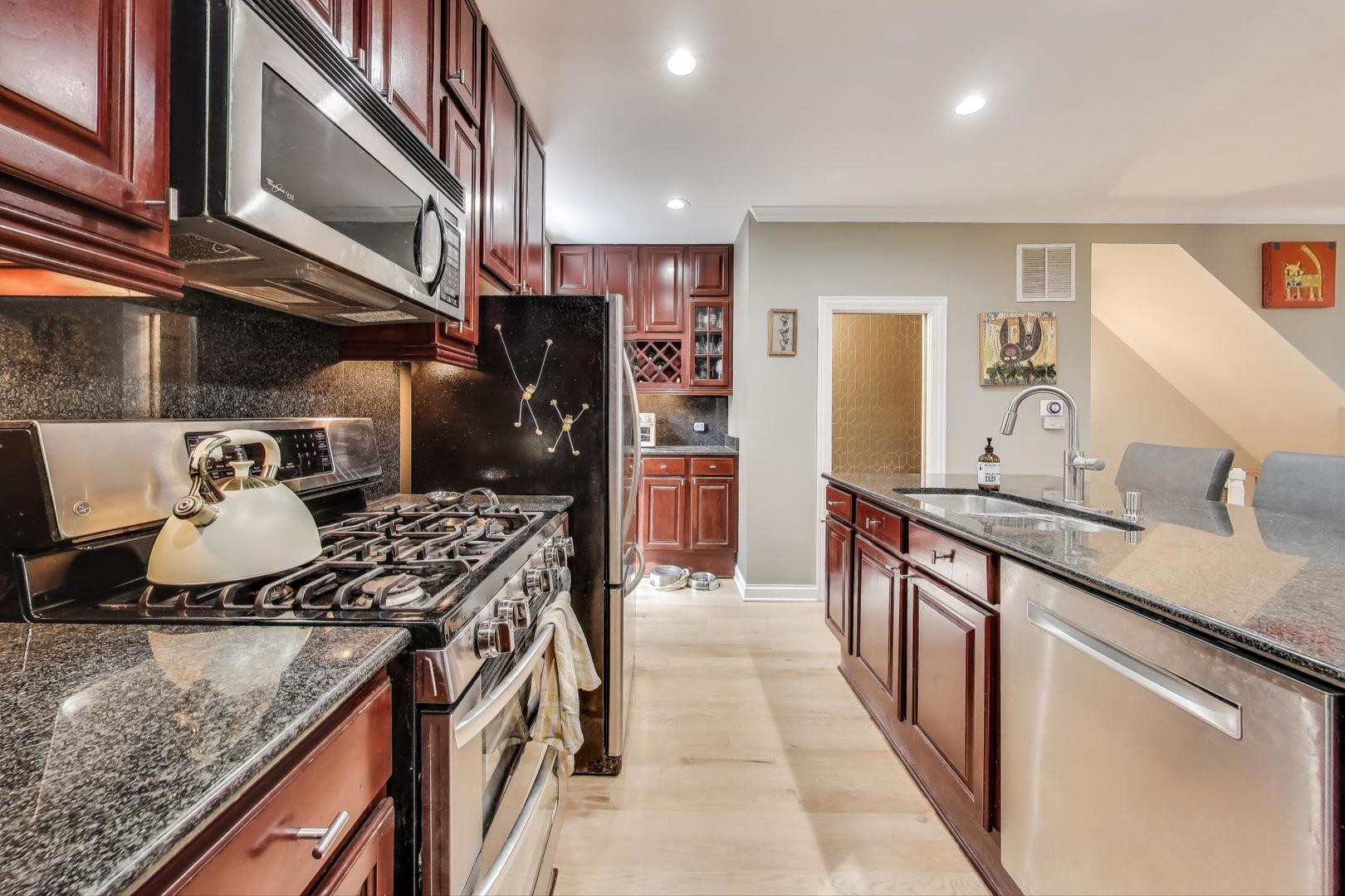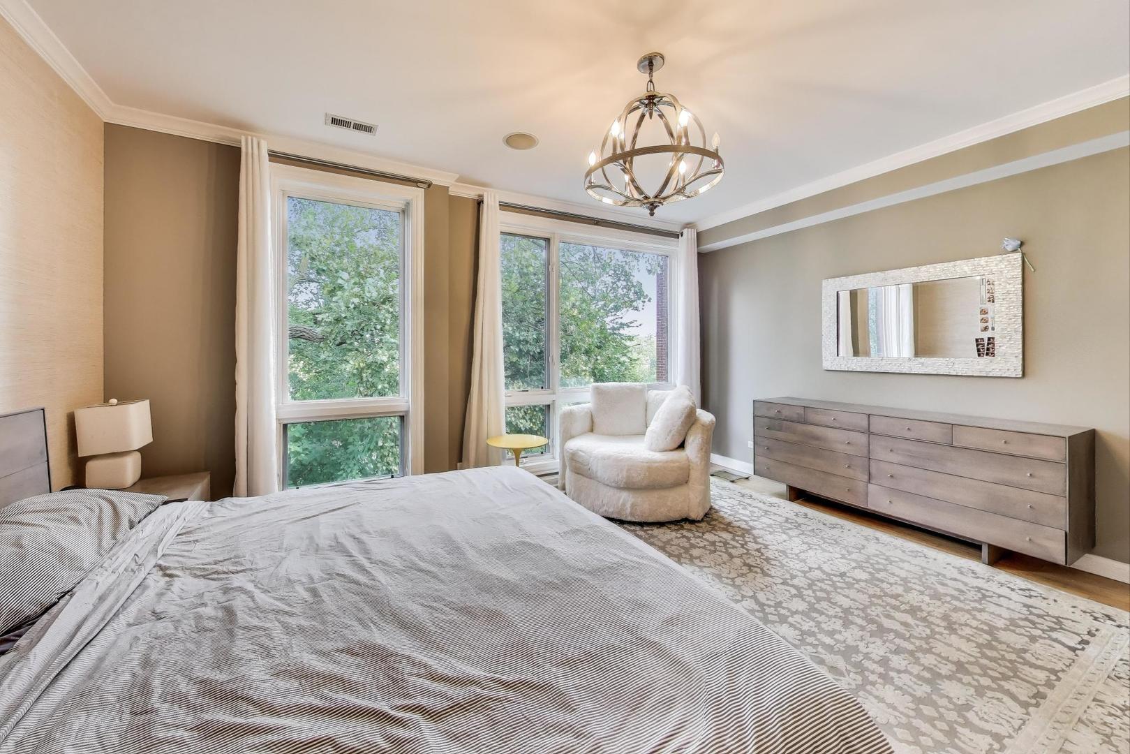 Largest 4 bedroom unit in the complex with 3000+Sq Ft of highly upgraded living spaces. This quiet, sunny waterfront corner home features an attached 2-car garage with storage, 5 outdoor spaces, including a private front and side yard. Awesome kitchen with stainless steel appliances, cherry cabinets, granite counters & island, opening to a 29 X 18 living area overlooking the water, 2 decks, hardwood floors, a cozy fireplace. Tall ceilings, crown moldings. A huge and bright primary suite overlooking the Chicago river, a spa-like primary bath with heated floors and a wonderful soaking tub, and a large closet. 3 additional bedrooms on the top floor, an office on the primary suite level as well as flexible family room or an entertainment space with a separate bathroom on the ground level with direct access to the garage and a front yard. Zoned HVAC and so much more!