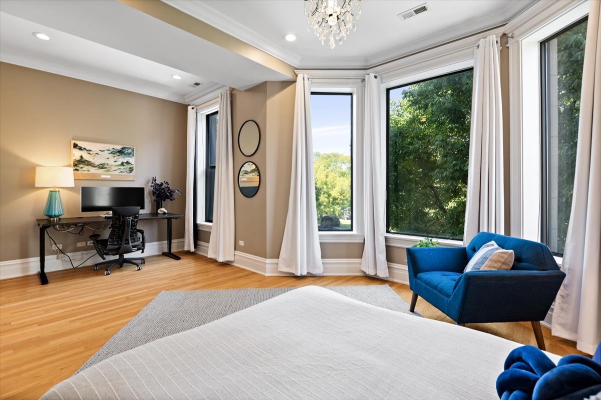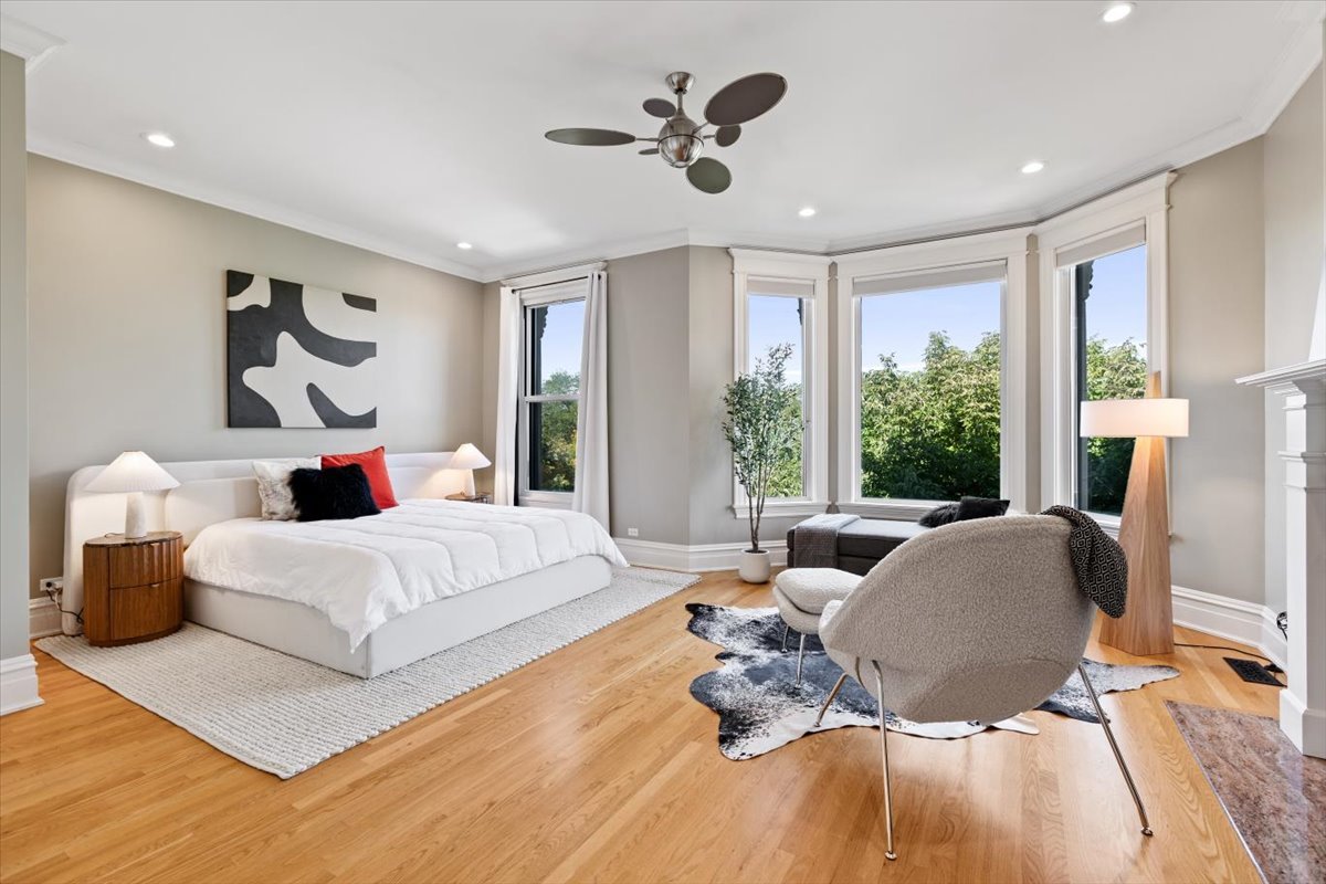 Stunning, massive graystone with a 2-unit coach house overlooking Humboldt Park. The main house was meticulously rehabbed and features fantastic quality and custom vintage inspired details throughout. Huge rooms with large bay windows, 4 separate living spaces, 5 bedrooms and 4.1 bathrooms with abundant storage. The facade is stunning, with ornate limestone details and huge windows looking into 200 acre Humboldt park. Great finish details, like quarter sawn oak floors, hard wood window sills and casings, soaring ceiling heights, and solid core doors with custom hardware. 3 fireplaces, including one in the huge primary suite. Next to the main residence is a wide side driveway. Reclaimed granite pavers from historic Maxwell Street create a stunning backdrop as you drive through the gated entry. There is comfortably room for 3+ cars, and one could build a carport or garage if they desired. At the back of the lot sits a 2 unit coach-house. This gorgeous red brick structure features 2 one-bedroom apartments and a full basement for storage. The apartments were recently rehabbed and have new kitchens and bathrooms, laundry and full HVAC. These provide great income. The Hi/Lo, Spinning J’s, California Clipper, and lots of shopping is all right around the corner. Recently added bike lanes in front of the building reflect the city’s ongoing commitment to creating a super pedestrian friendly park. Must see!