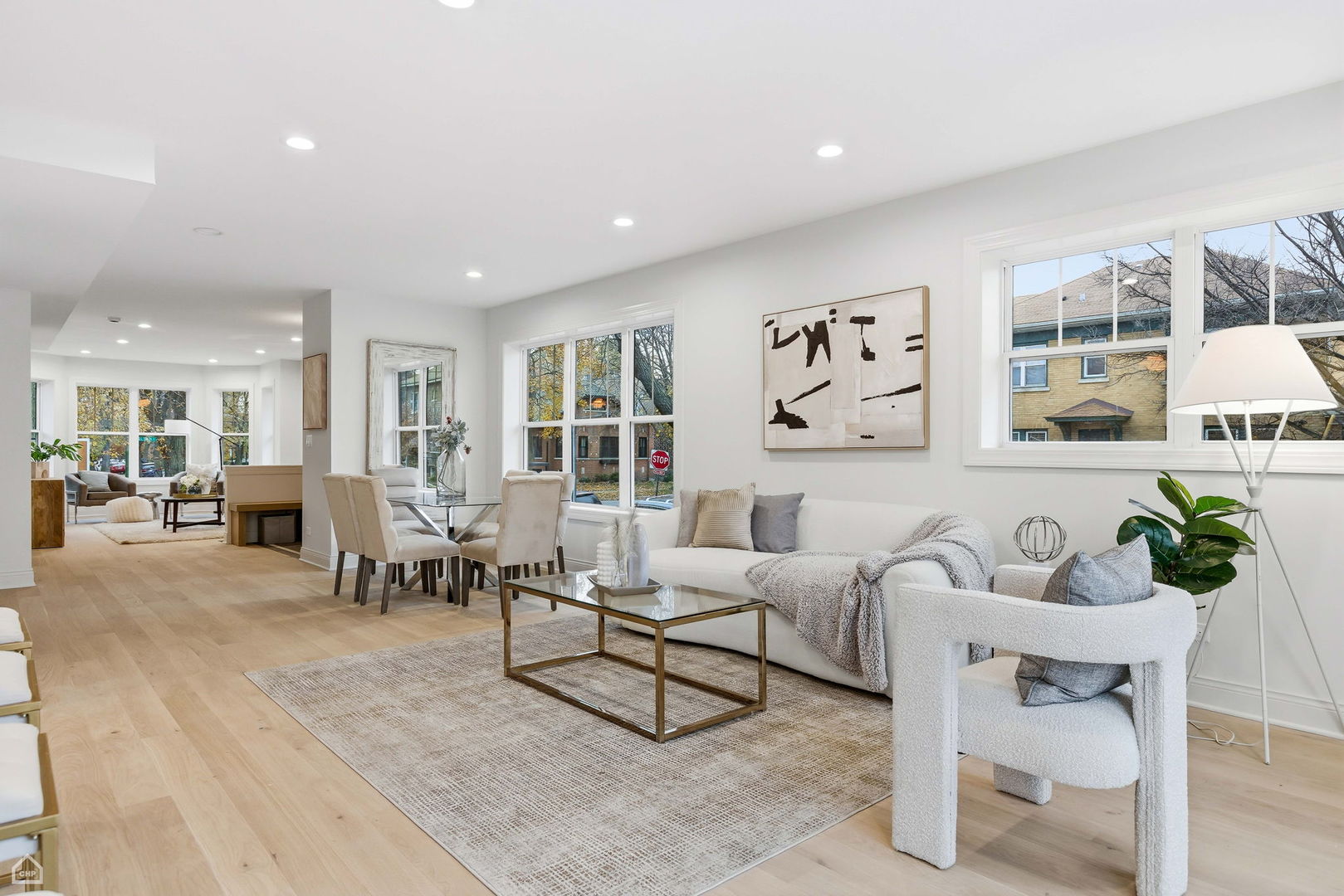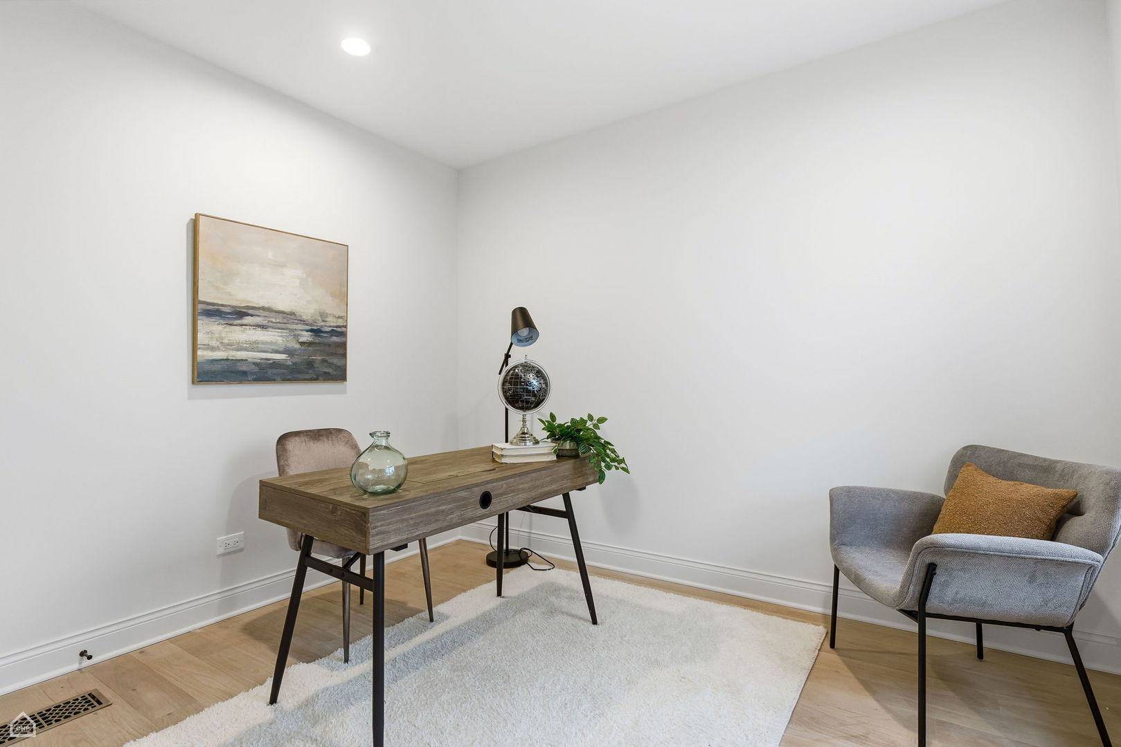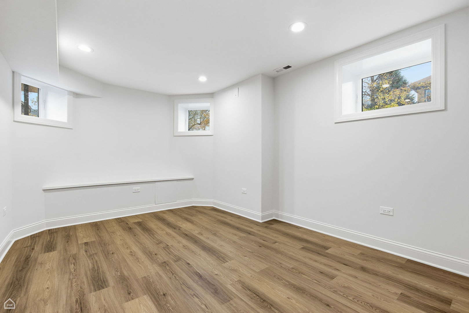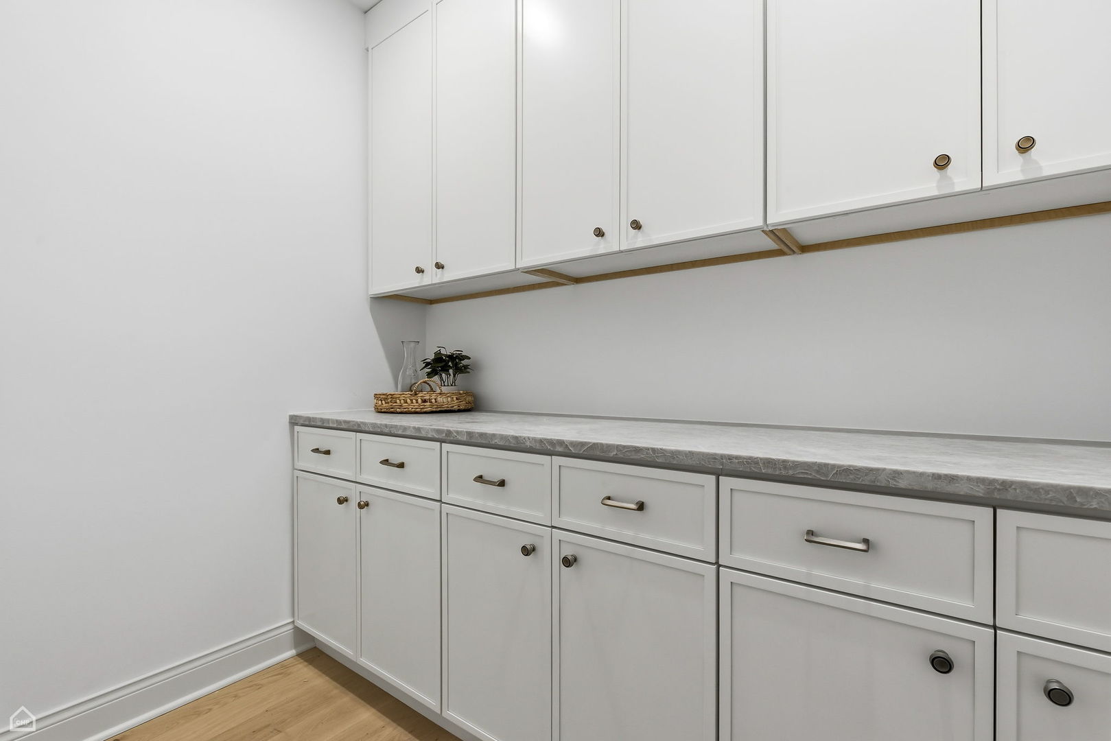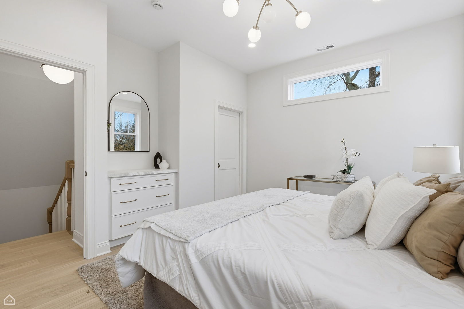 Located in the heart of the prestigious Ravenswood Manor, this fully remodeled corner bungalow is a true masterpiece of design and elegance. Spanning an impressive 3,500 square feet, this home exudes sophistication with its six bedrooms and four beautifully appointed bathrooms. Upon entry, the sun-drenched foyer welcomes you into a seamless flow of living spaces, including an inviting living area, formal dining room, and family room, all perfect for both everyday living and effortless entertaining. The designer kitchen is a culinary enthusiast’s dream, featuring custom cabinetry, a Monogram fridge, Wolf stove, Bosch dishwasher, and exquisite Taj Mahal Quartzite countertops, complemented by a unique “speakeasy” pantry that adds a touch of intrigue. The main level also includes a versatile bedroom that can serve as a quiet office or welcoming guest room, alongside a convenient full bath. A new Trex deck off the kitchen extends the living space outdoors, offering the perfect spot for grilling and gathering. Ascend to the impressive second-floor addition, where a luxurious primary suite awaits, complete with a full bathroom and a generous walk-in closet. Each additional bedroom on this level is thoughtfully designed with its own walk-in closet, and a second full bathroom adds convenience. The second-floor laundry room enhances everyday efficiency. The fully finished lower level, adorned with durable Duralux flooring, offers an expansive family room with a wet bar, providing a perfect complement to main-level entertaining. This level also features two additional bedrooms, a full bathroom, and a second laundry room, ideal for accommodating guests or extended family. Outside, the yard provides a serene oasis for relaxation, seamlessly connecting to a detached two-car garage. A prime location steps away from a vibrant community park and the Brown Line Francisco EL stop, this home combines elegance, comfort, and convenience in one of Chicago’s most coveted neighborhoods. Experience the exceptional lifestyle that awaits in this remarkable Ravenswood Manor bungalow.