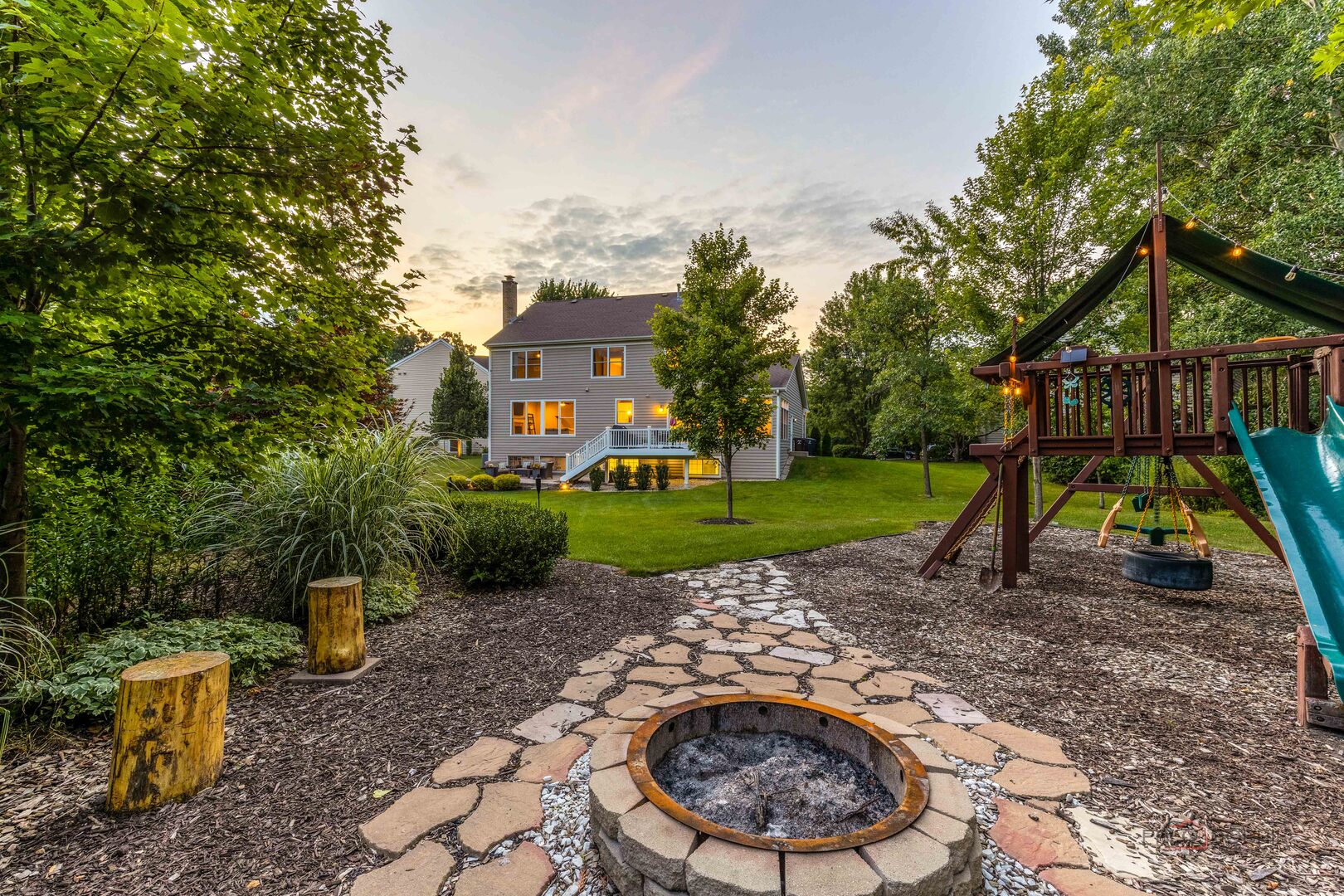 PRIME LOCATION, STYLISH UPDATES, AND A PEACEFUL CUL-DE-SAC SETTING-THIS GLENMORE WOODS HOME IS SURE TO CHECK ALL THE BOXES! Perfectly situated on a private .35-acre lot-one of the largest in the subdivision-this property is framed by lush, mature landscaping that creates a truly serene backdrop. The curb appeal captivates instantly, but it’s the extensive upgrades that will steal your heart: brand-new oak hardwood flooring, fresh designer paint, a stunning kitchen remodel with quartz countertops and new cabinetry, plus major mechanical improvements including a new furnace and A/C (2019), water heater (2020), sump pump with battery backup (2019), and a low-maintenance Trex deck (2017)-just to name a few (see attached list for more). Inside, a dramatic two-story foyer sets the tone with abundant natural light and a welcoming sense of space. To each side, formal living and dining rooms provide elegant, flexible areas for gatherings large or small. At the heart of the home, the showstopping kitchen features impressive quartz counters, chic marble tile backsplash, abundant white cabinetry with crown molding and under-cabinet lighting, quality stainless steel appliances, and a generous center island with breakfast bar seating. Whether you’re whipping up a gourmet feast or simply enjoying your morning coffee, this kitchen was designed for both beauty and function. The sunny breakfast area overlooks the backyard and opens to the Trex deck-perfect for summer dining-while steps below, a brick paver patio and backyard firepit area invite evening relaxation. Back inside, the family room offers a warm, intimate atmosphere with a gas log fireplace, ideal for movie nights or catching up with loved ones. A bright sunroom adds even more versatility, easily transforming into a home office or reading nook. A half bath and well-appointed laundry/mudroom complete the main level. Upstairs, double French doors lead to the primary bedroom suite, where vaulted ceilings, a custom-organized walk-in closet, and a spa-like bath with a soaking tub, dual-sink vanity, and separate shower create a private retreat. Three additional generously sized bedrooms, plus a second full bath with dual-sink vanity, complete the second floor. The finished, city-loft-inspired basement offers endless possibilities, from an in-law or hangout retreat to an expansive recreation space. It includes a large rec area, and a versatile bonus room with its own closet and bath access. The unfinished section provides abundant storage or finish and add even more living space. The attached 2.5-car garage is finished with a sleek epoxy floor for style and durability, and is equipped with an EV charger outlet-ready to power your electric vehicle with ease. Located just minutes from two scenic paths-one leading to Middlefork Savanna Forest Preserve and the other to the North Shore Bike Path. All within the highly acclaimed Blue Ribbon Rondout (K-8) School and award-winning Libertyville High School district. This is a must-see!