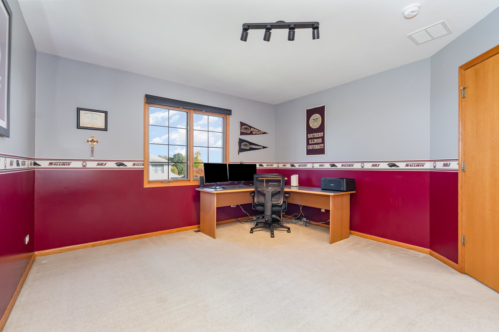 Welcome to this stunning and spacious two-story home located in the highly sought-after Taylor Glen subdivision. This property offers over 4 large bedrooms upstairs, including a huge primary suite with a relaxing jetted tub, separate shower, and walk-in closet. The main level impresses from the moment you enter the grand foyer, featuring a formal living room, formal dining room, and a chef’s kitchen with granite countertops, custom Maple cabinets and hardwood floors. The family room with woodburning fireplace provides a warm, inviting space for gatherings, and the convenient main-floor laundry room adds extra functionality. The finished basement is perfect for entertaining, complete with a spacious great room, a handcrafted oak bar, gaming area, exercise room, and a full bathroom. Additional highlights include a 3-car garage with custom-built wood shelving, new furnace and 5-ton air conditioner (June 2025), new fencing (September 2024), dual sump pumps with battery backup (August 2024), and a newer roof (March 2021). The beautifully maintained lawn is supported by a self-draining underground sprinkler system with a deduct meter-helping you save money while keeping your yard lush and green. This exceptional home offers space, comfort, and peace of mind with all the recent updates. Don’t miss your chance to make it yours-schedule your showing today!