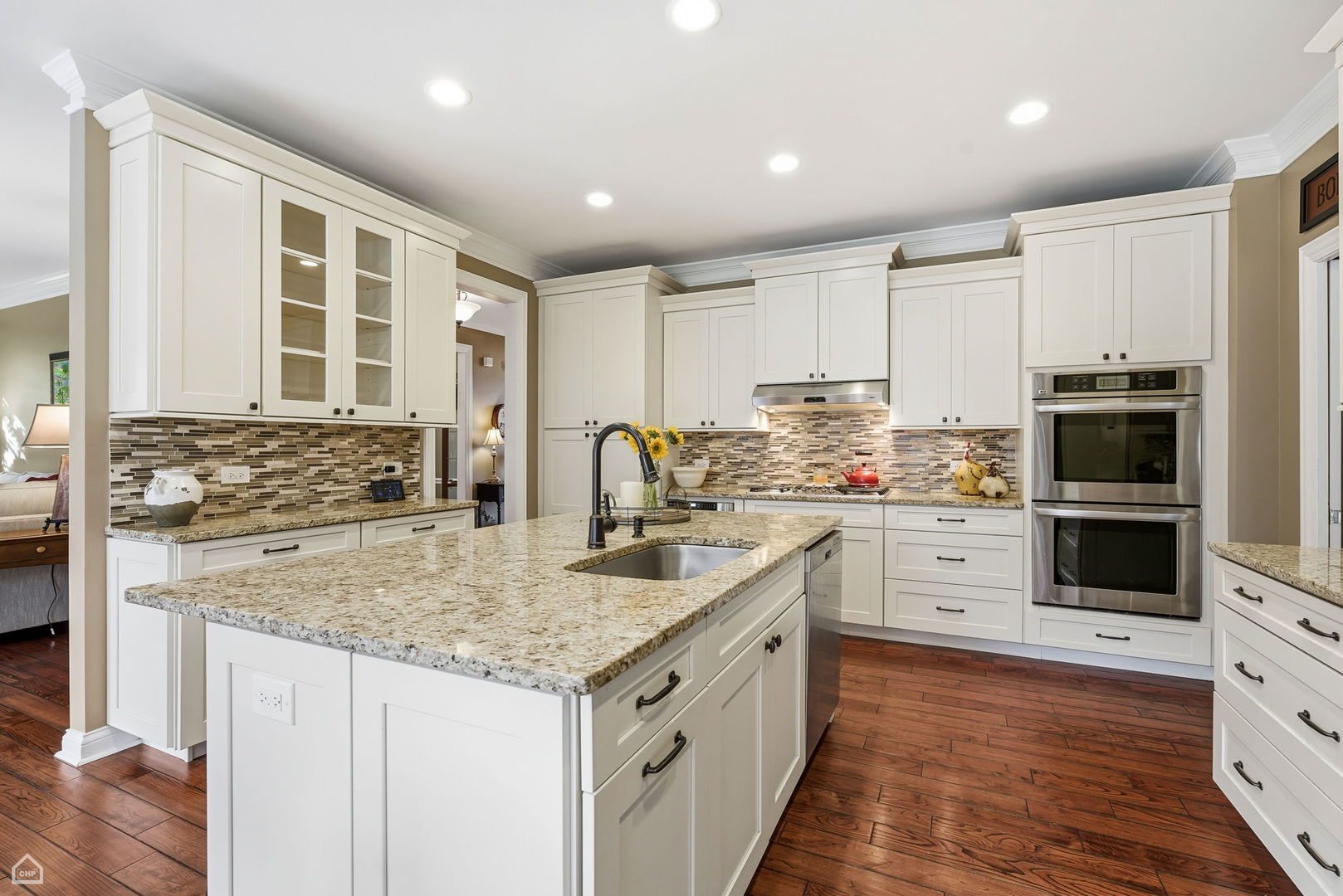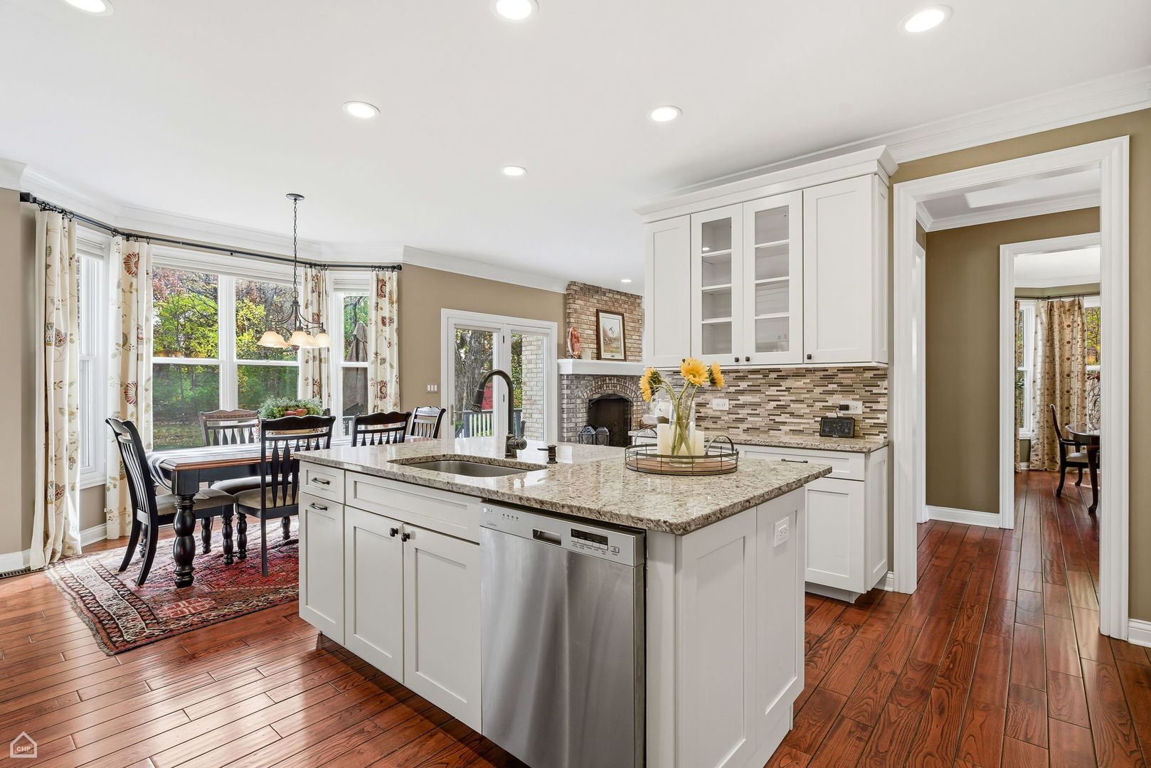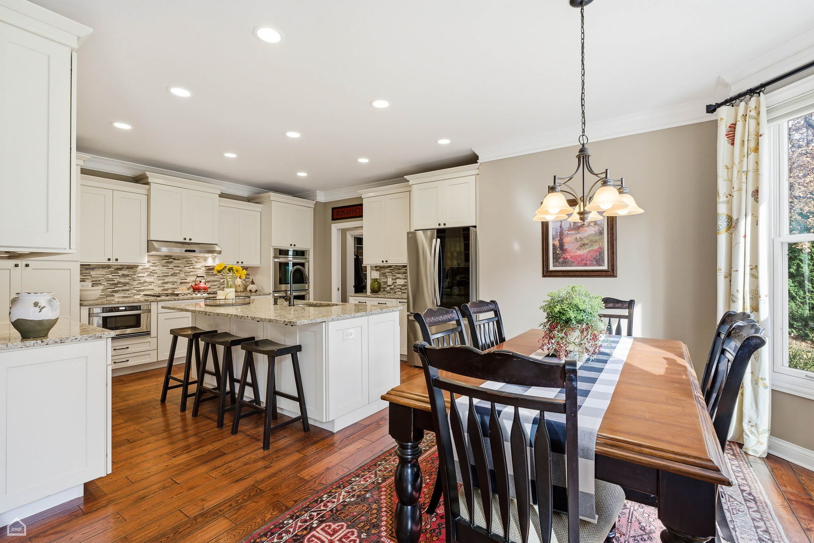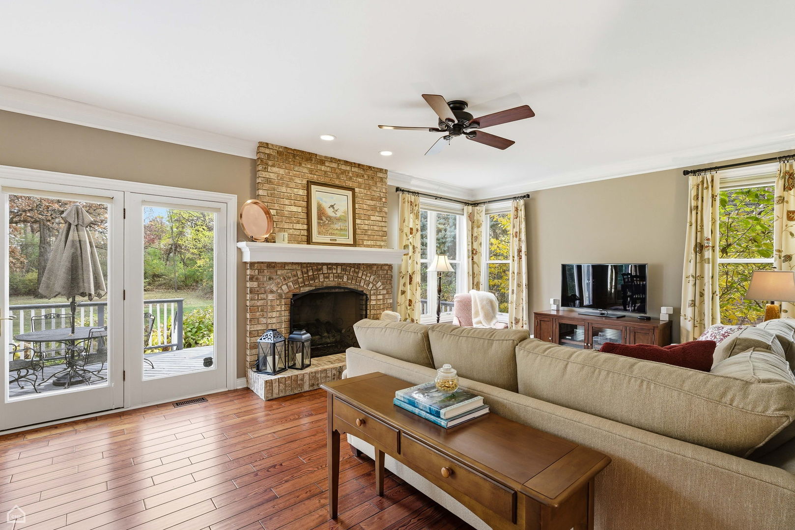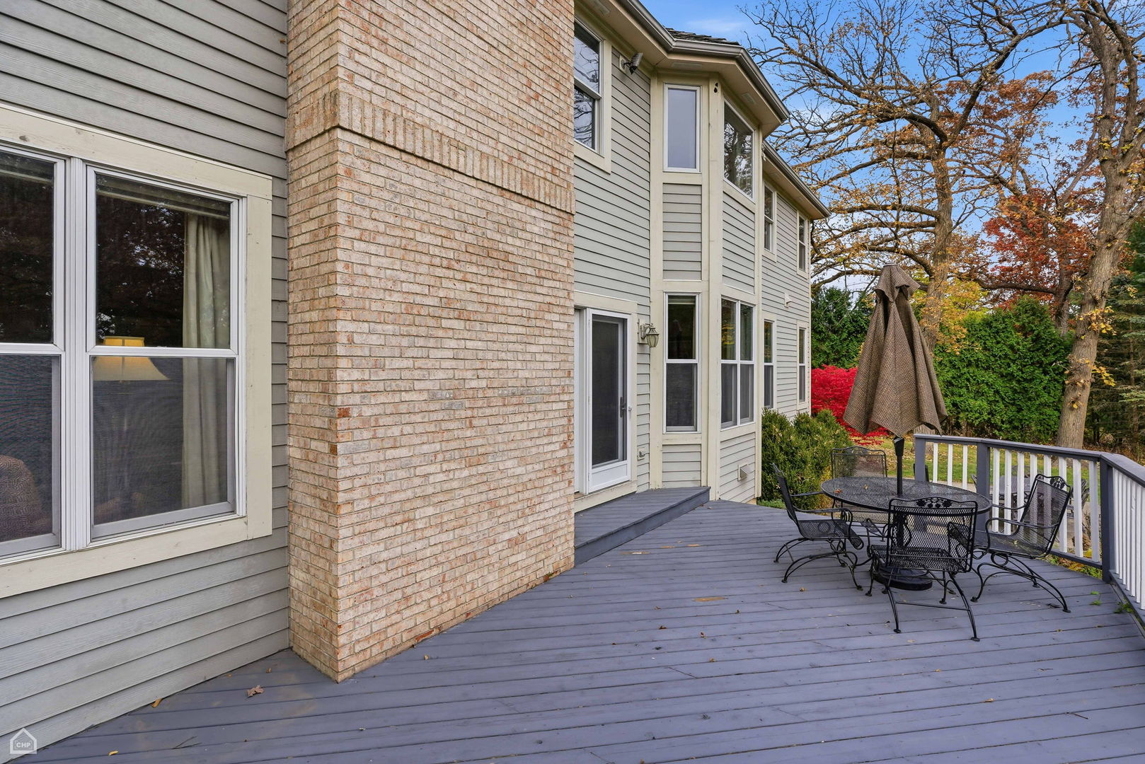 This absolutely gorgeous home offers a rare blend of stunning condition, functional utility, and private location. Boasting one of the largest sized lots in the entire subdivision, this .8 acre yard backs to a forested area of the golf course offering exceptional serene views from the rear deck and concrete patio with a highly durable James Hardie board siding. This home’s interior is designed just perfectly, with attention to detail flowing seamlessly throughout including updated light fixtures, hardwood floors, crown molding/trim, custom curtains and Hunter Douglas shades. Elegant quality and style are evident the moment one steps foot inside through the lovely seeded glass front door with matching transom/sidelight windows. The formal spaces are well appointed to serve their roles: the living room’s vaulted ceiling and chandelier make it a proper place to welcome guests and the dining room’s bay window provides room for adding one more extra leaf in the dinner table while hosting unforgettable gatherings with family and friends. While guests will enjoy themselves here, the real pleasure is reserved for the hosts/chefs who will be cooking in this incredible remodeled kitchen boasting flawless inset cabinetry with 42″ uppers, center island with breakfast bar stools, built-in pantry, built-in double ovens, windowed LG InstaView door-in-door refrigerator, granite countertops, and mosaic tile backsplash. The main floor 2nd bedroom suite with full bathroom are great for a temporary guest room or a permanent suite for those who don’t care to climb up stairs. Enjoy quiet solitude in the informal spaces: breakfasts are bright and sunny at this kitchen table with southern rear views of the woods from the bay windows and cozy up around the family room’s brick fireplace in the evening. Heading upstairs, a formal office provides space for productivity away from any noise. After work and play are done for the day, what better place to retire than in this amazing master suite with trey ceiling in the bedroom, huge walk-in closet, and an impeccable bathroom with frameless glass shower and pedestal tub. The 3rd/4th bedrooms (one featuring an additional bonus room) share a wonderfully remodeled Jack and Jill bathroom. In addition to 3,400 SQFT of above-ground living area, the finished English basement provides an additional 1,582 SQFT and continues with the combination of thoughtful design and functionality: a naturally lit recreation room for play (surround sound speakers and ping pong table are included), a wet bar and mini fridge for refreshments, a utility room for tinkering, a storage room, and a 5th bedroom (with proper egress escape window) which is adjacent to yet another full bathroom. Outdoor sprinkler irrigation, radon mitigation system, high efficiency furnace, and a 75 gallon water heater which was replaced in 2023. Ivanhoe Estates provides peace of mind with secure guard-gated entrances. Priced well under market value, let the sellers’ motivation to sell quickly be your gift to yourself this holiday season!