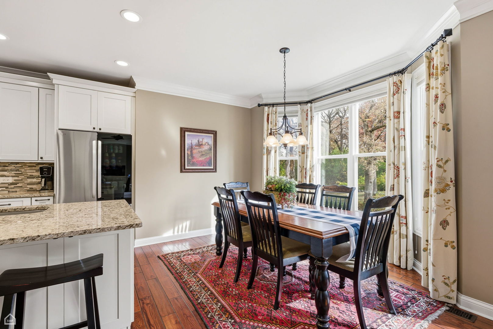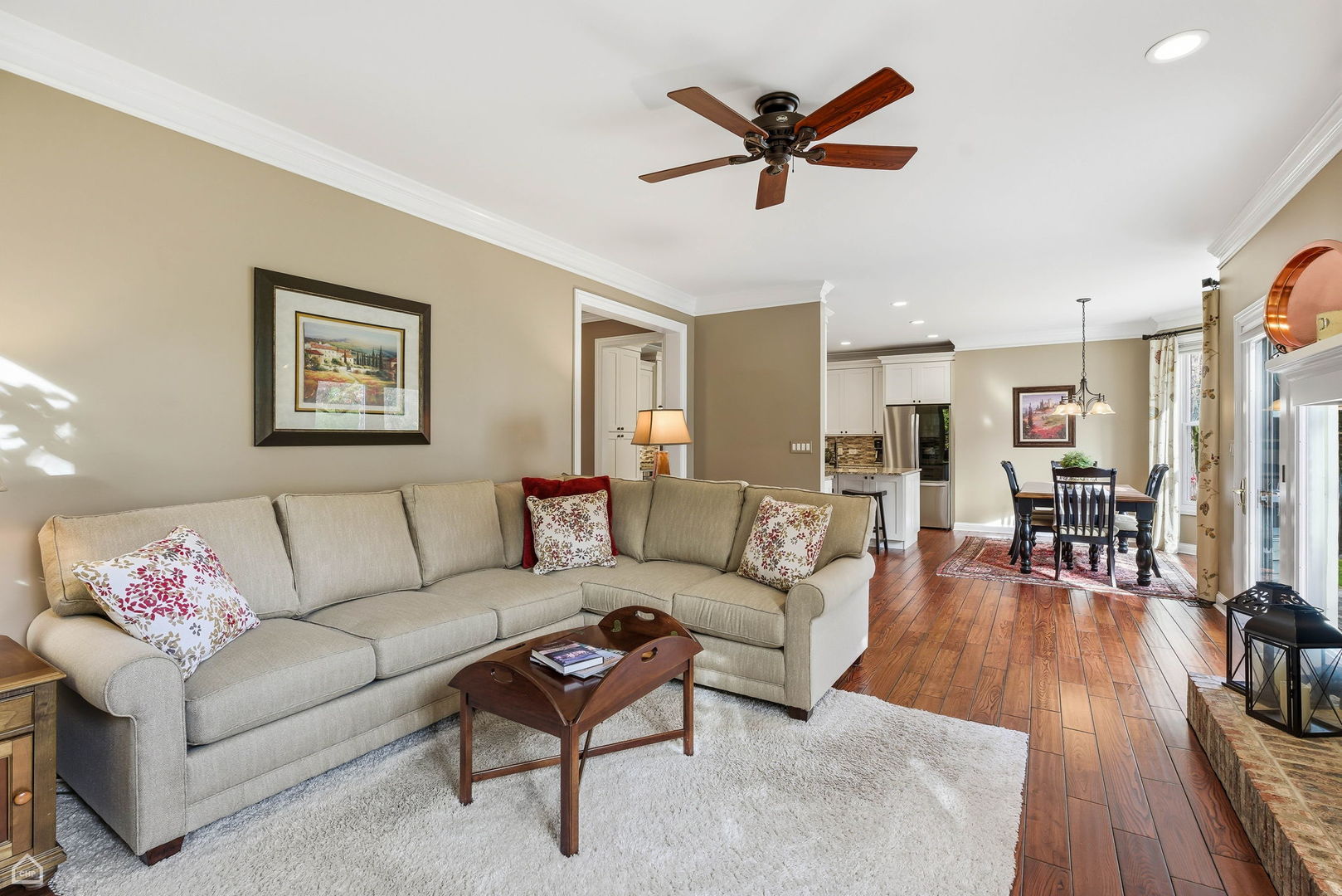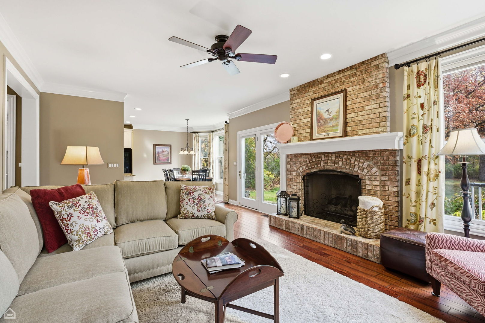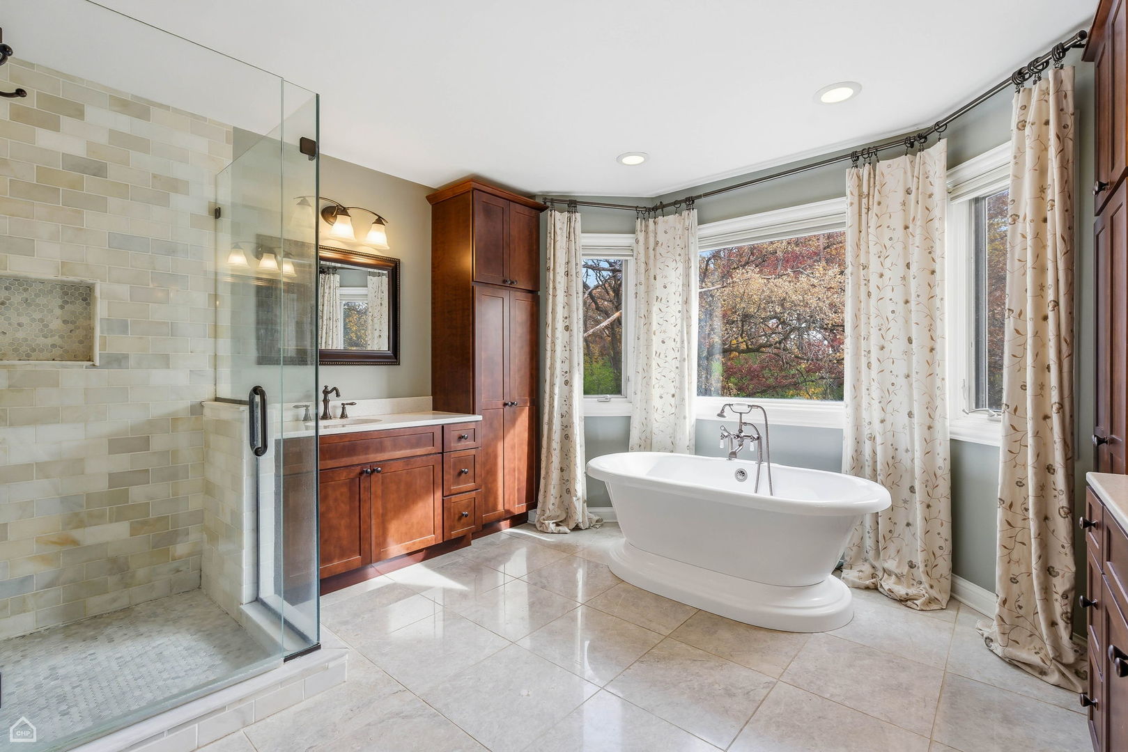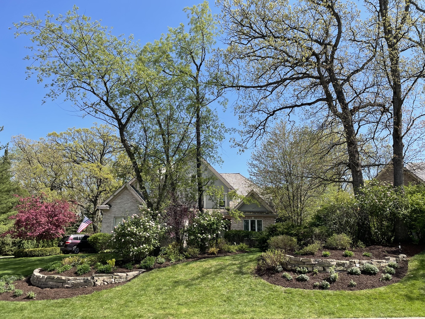 This absolutely gorgeous home offers a rare blend of stunning condition, functional utility, and private location. Boasting one of the largest sized lots in the entire subdivision, this .8 acre yard backs to a forested area of the golf course offering exceptional serene views from the rear deck and concrete patio with a highly durable James Hardie board siding. This home’s interior is designed just perfectly, with attention to detail flowing seamlessly throughout including updated light fixtures, hardwood floors, crown molding/trim, custom curtains and Hunter Douglas shades. Elegant quality and style are evident the moment one steps foot inside through the lovely seeded glass front door with matching transom/sidelight windows. The formal spaces are well appointed to serve their roles: the living room’s vaulted ceiling and chandelier make it a proper place to welcome guests and the dining room’s bay window provides room for adding one more extra leaf in the dinner table while hosting unforgettable gatherings with family and friends. While guests will enjoy themselves here, the real pleasure is reserved for the hosts/chefs who will be cooking in this incredible remodeled kitchen boasting flawless inset cabinetry with 42″ uppers, center island with breakfast bar stools, built-in pantry, built-in double ovens, windowed LG InstaView door-in-door refrigerator, granite countertops, and mosaic tile backsplash. The main floor 2nd bedroom suite with full bathroom are great for a temporary guest room or a permanent suite for those who don’t care to climb up stairs. Enjoy quiet solitude in the informal spaces: breakfasts are bright and sunny at this kitchen table with southern rear views of the woods from the bay windows and cozy up around the family room’s brick fireplace in the evening. Heading upstairs, a formal office provides space for productivity away from any noise. After work and play are done for the day, what better place to retire than in this amazing master suite with trey ceiling in the bedroom, huge walk-in closet, and an impeccable bathroom with frameless glass shower and pedestal tub. The 3rd/4th bedrooms (one featuring an additional bonus room) share a wonderfully remodeled Jack and Jill bathroom. In addition to 3,400 SQFT of above-ground living area, the finished English basement provides an additional 1,582 SQFT and continues with the combination of thoughtful design and functionality: a naturally lit recreation room for play (surround sound speakers and ping pong table are included), a wet bar and mini fridge for refreshments, a utility room for tinkering, a storage room, and a 5th bedroom (with proper egress escape window) which is adjacent to yet another full bathroom. Outdoor sprinkler irrigation, radon mitigation system, high efficiency furnace, and a 75 gallon water heater which was replaced in 2023. Ivanhoe Estates provides peace of mind with secure guard-gated entrances. Priced well under market value, let the sellers’ motivation to sell quickly be your gift to yourself this holiday season!