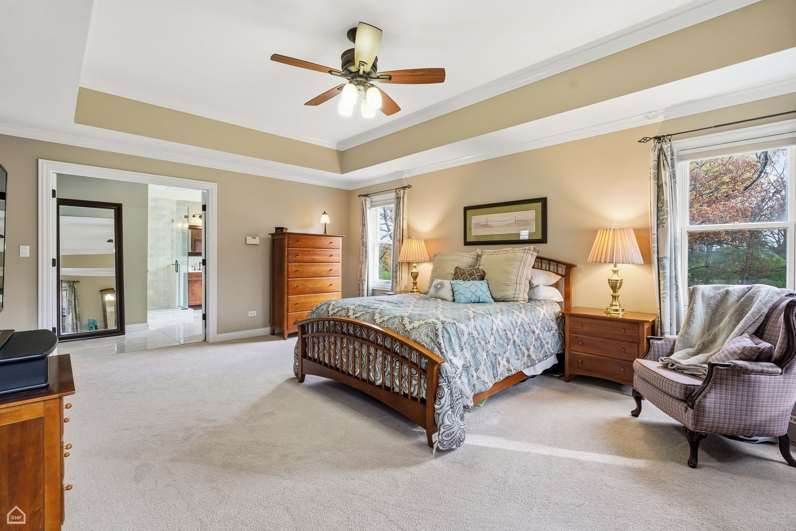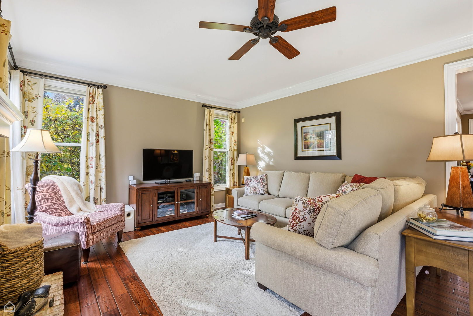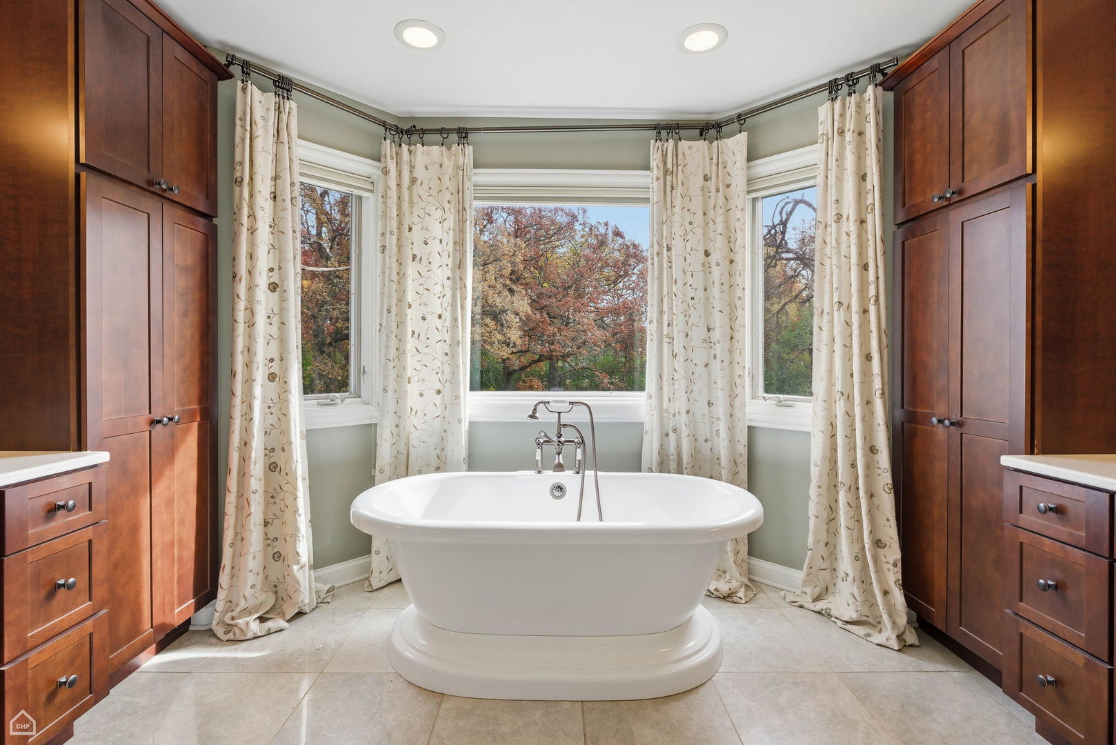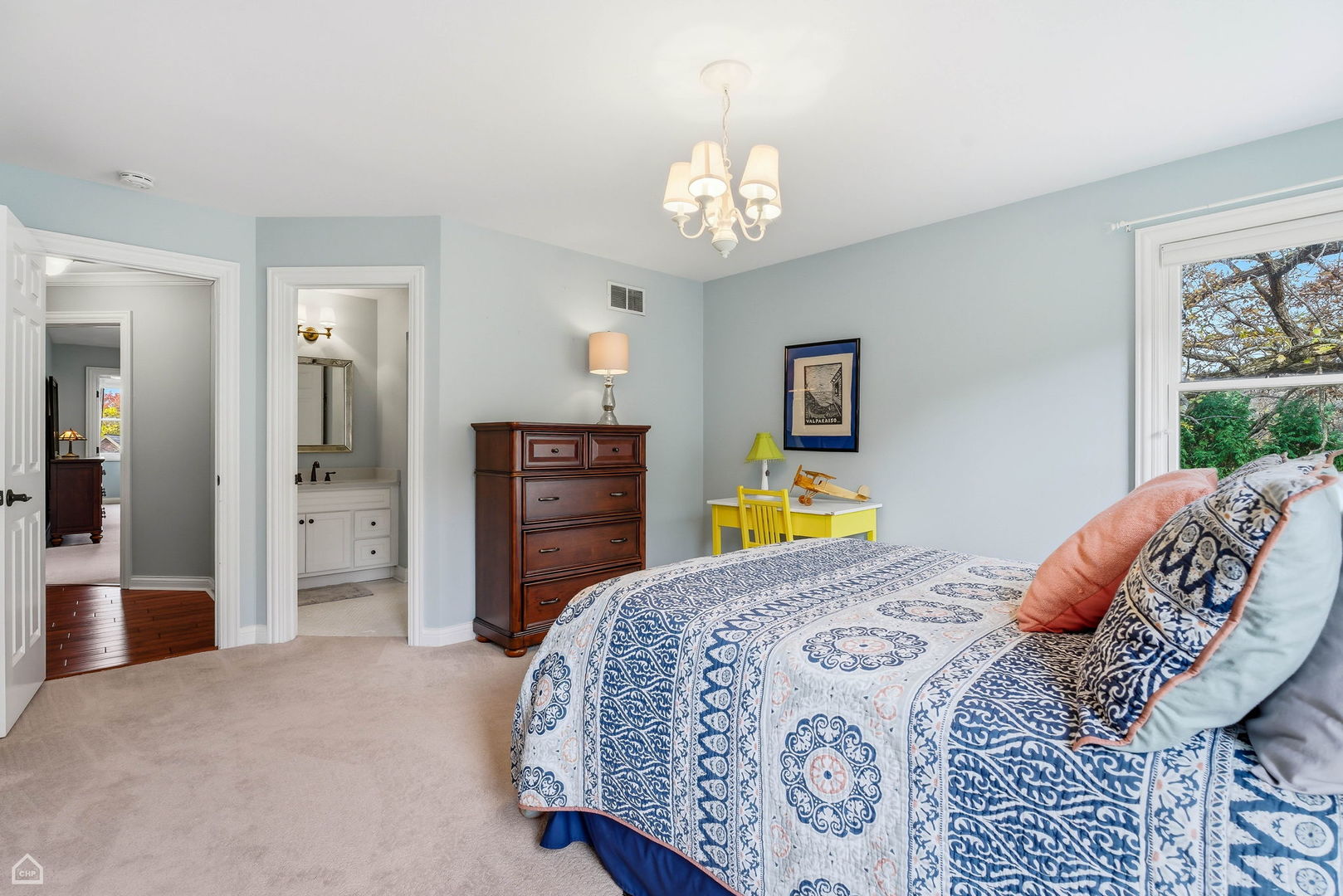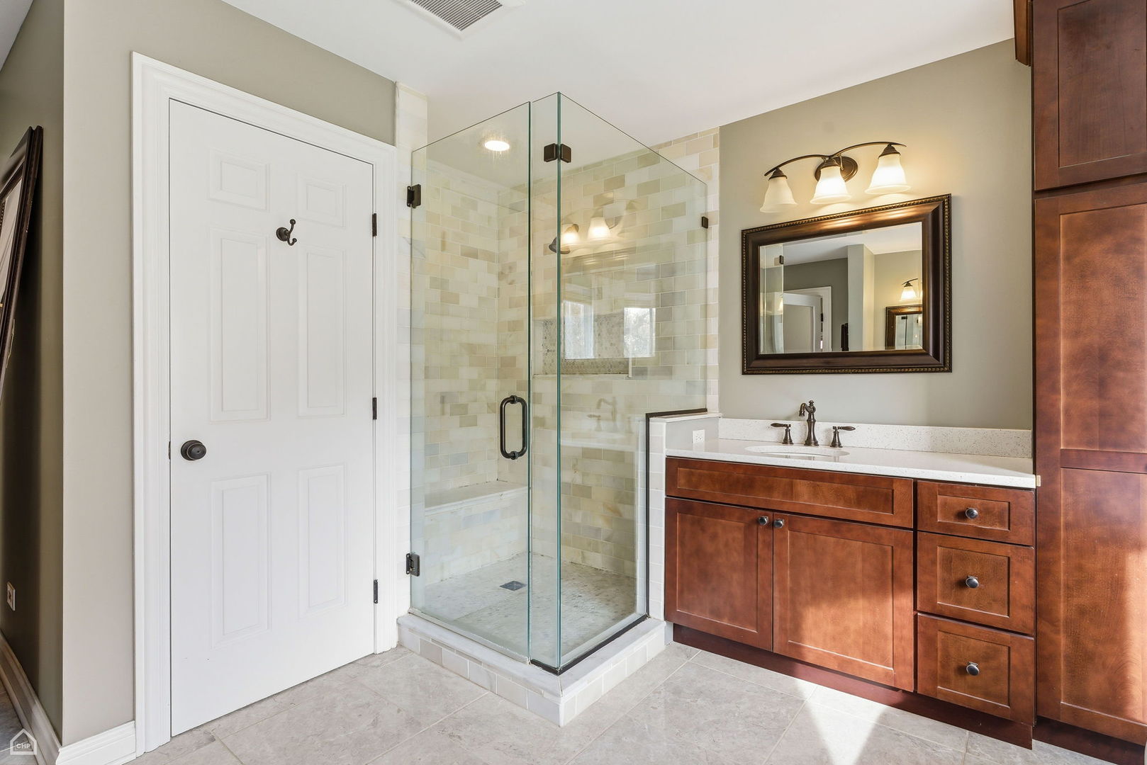 This absolutely gorgeous home offers a rare blend of stunning condition, functional utility, and private location. Boasting one of the largest sized lots in the entire subdivision, this .8 acre yard backs to a forested area of the golf course offering exceptional serene views from the rear deck and concrete patio with a highly durable James Hardie board siding. This home’s interior is designed just perfectly, with attention to detail flowing seamlessly throughout including updated light fixtures, hardwood floors, crown molding/trim, custom curtains and Hunter Douglas shades. Elegant quality and style are evident the moment one steps foot inside through the lovely seeded glass front door with matching transom/sidelight windows. The formal spaces are well appointed to serve their roles: the living room’s vaulted ceiling and chandelier make it a proper place to welcome guests and the dining room’s bay window provides room for adding one more extra leaf in the dinner table while hosting unforgettable gatherings with family and friends. While guests will enjoy themselves here, the real pleasure is reserved for the hosts/chefs who will be cooking in this incredible remodeled kitchen boasting flawless inset cabinetry with 42″ uppers, center island with breakfast bar stools, built-in pantry, built-in double ovens, windowed LG InstaView door-in-door refrigerator, granite countertops, and mosaic tile backsplash. The main floor 2nd bedroom suite with full bathroom are great for a temporary guest room or a permanent suite for those who don’t care to climb up stairs. Enjoy quiet solitude in the informal spaces: breakfasts are bright and sunny at this kitchen table with southern rear views of the woods from the bay windows and cozy up around the family room’s brick fireplace in the evening. Heading upstairs, a formal office provides space for productivity away from any noise. After work and play are done for the day, what better place to retire than in this amazing master suite with trey ceiling in the bedroom, huge walk-in closet, and an impeccable bathroom with frameless glass shower and pedestal tub. The 3rd/4th bedrooms (one featuring an additional bonus room) share a wonderfully remodeled Jack and Jill bathroom. In addition to 3,400 SQFT of above-ground living area, the finished English basement provides an additional 1,582 SQFT and continues with the combination of thoughtful design and functionality: a naturally lit recreation room for play (surround sound speakers and ping pong table are included), a wet bar and mini fridge for refreshments, a utility room for tinkering, a storage room, and a 5th bedroom (with proper egress escape window) which is adjacent to yet another full bathroom. Outdoor sprinkler irrigation, radon mitigation system, high efficiency furnace, and a 75 gallon water heater which was replaced in 2023. Ivanhoe Estates provides peace of mind with secure guard-gated entrances. Priced well under market value, let the sellers’ motivation to sell quickly be your gift to yourself this holiday season!