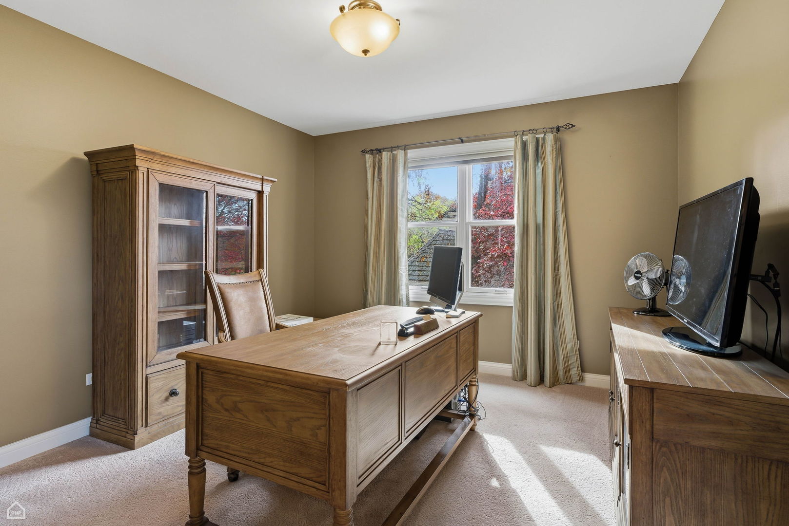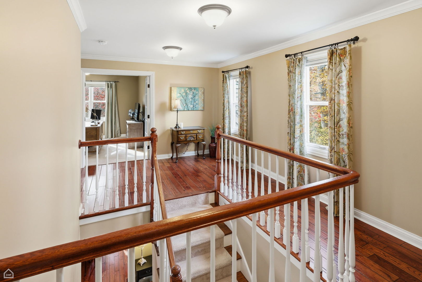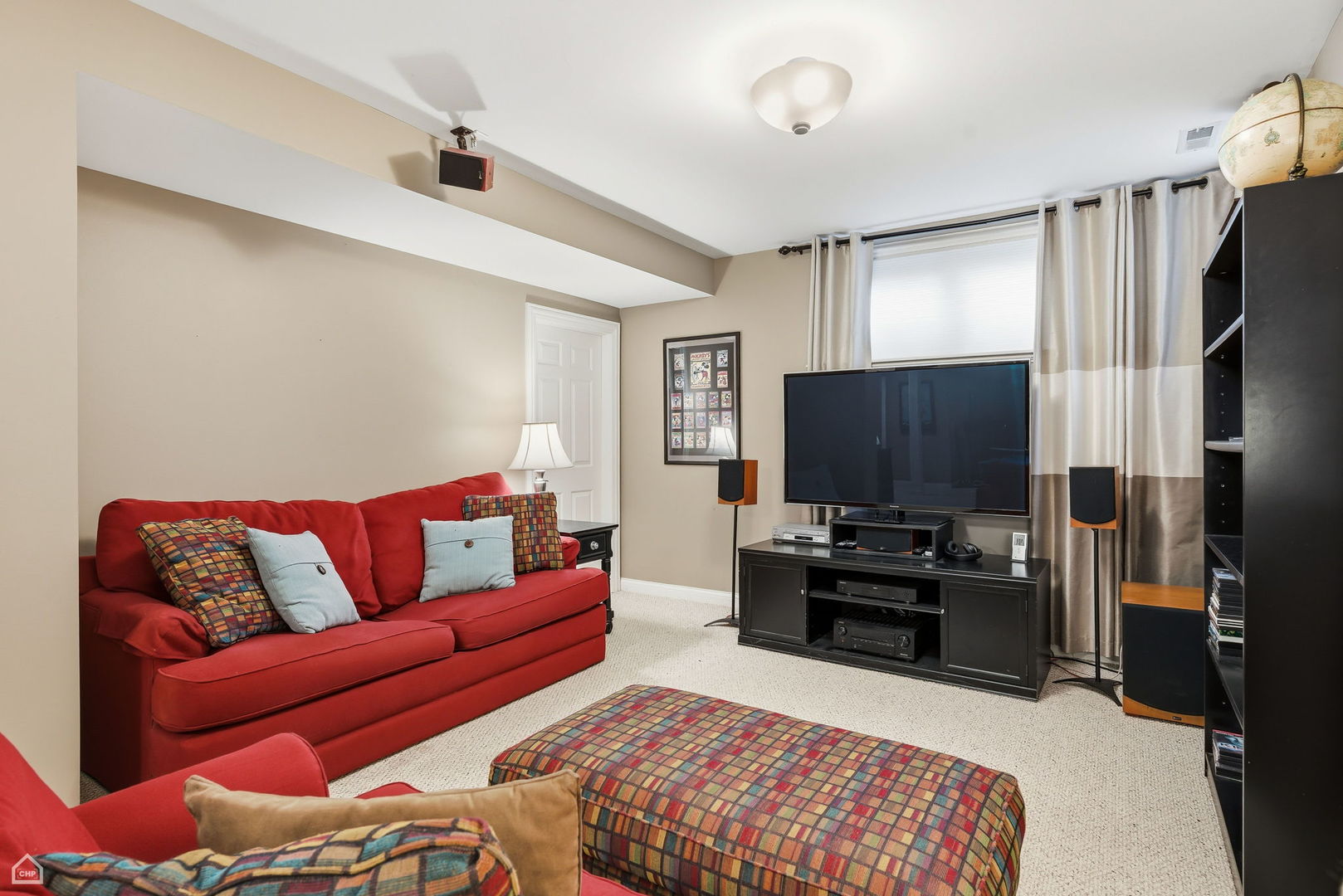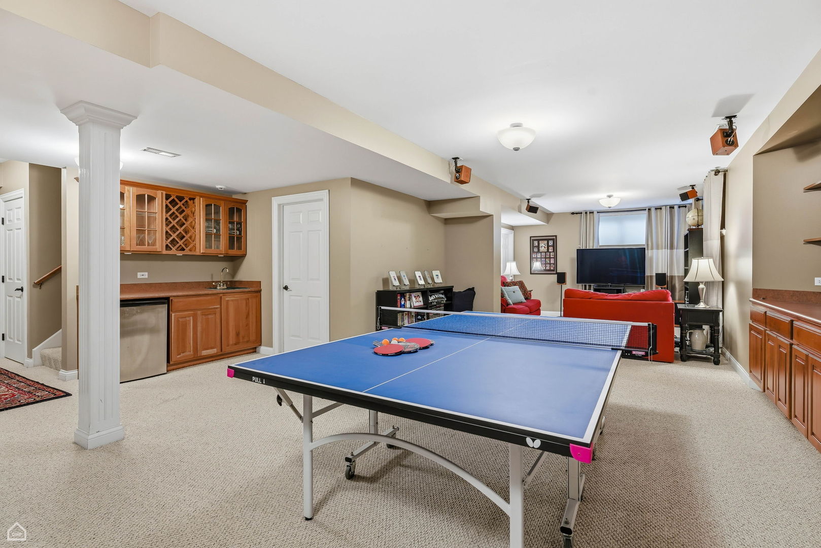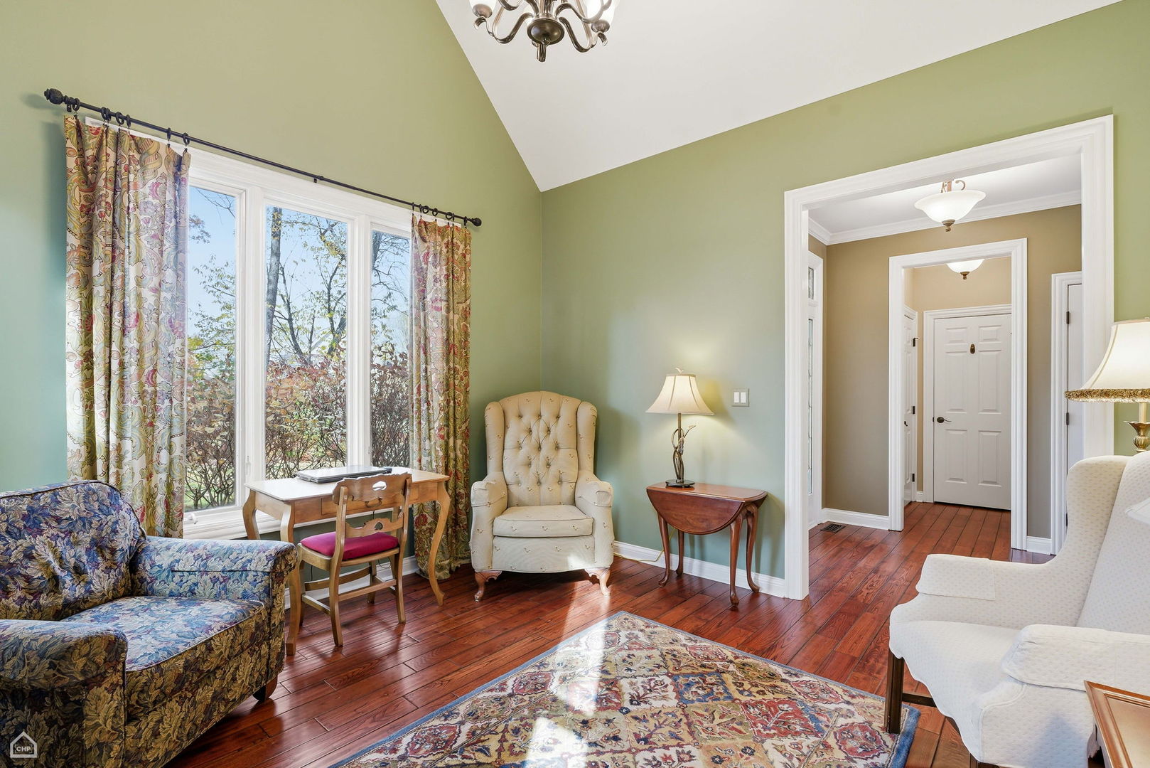 This absolutely gorgeous home offers a rare blend of stunning condition, functional utility, and private location. Boasting one of the largest sized lots in the entire subdivision, this .8 acre yard backs to a forested area of the golf course offering exceptional serene views from the rear deck and concrete patio with a highly durable James Hardie board siding. This home’s interior is designed just perfectly, with attention to detail flowing seamlessly throughout including updated light fixtures, hardwood floors, crown molding/trim, custom curtains and Hunter Douglas shades. Elegant quality and style are evident the moment one steps foot inside through the lovely seeded glass front door with matching transom/sidelight windows. The formal spaces are well appointed to serve their roles: the living room’s vaulted ceiling and chandelier make it a proper place to welcome guests and the dining room’s bay window provides room for adding one more extra leaf in the dinner table while hosting unforgettable gatherings with family and friends. While guests will enjoy themselves here, the real pleasure is reserved for the hosts/chefs who will be cooking in this incredible remodeled kitchen boasting flawless inset cabinetry with 42″ uppers, center island with breakfast bar stools, built-in pantry, built-in double ovens, windowed LG InstaView door-in-door refrigerator, granite countertops, and mosaic tile backsplash. The main floor 2nd bedroom suite with full bathroom are great for a temporary guest room or a permanent suite for those who don’t care to climb up stairs. Enjoy quiet solitude in the informal spaces: breakfasts are bright and sunny at this kitchen table with southern rear views of the woods from the bay windows and cozy up around the family room’s brick fireplace in the evening. Heading upstairs, a formal office provides space for productivity away from any noise. After work and play are done for the day, what better place to retire than in this amazing master suite with trey ceiling in the bedroom, huge walk-in closet, and an impeccable bathroom with frameless glass shower and pedestal tub. The 3rd/4th bedrooms (one featuring an additional bonus room) share a wonderfully remodeled Jack and Jill bathroom. In addition to 3,400 SQFT of above-ground living area, the finished English basement provides an additional 1,582 SQFT and continues with the combination of thoughtful design and functionality: a naturally lit recreation room for play (surround sound speakers and ping pong table are included), a wet bar and mini fridge for refreshments, a utility room for tinkering, a storage room, and a 5th bedroom (with proper egress escape window) which is adjacent to yet another full bathroom. Outdoor sprinkler irrigation, radon mitigation system, high efficiency furnace, and a 75 gallon water heater which was replaced in 2023. Ivanhoe Estates provides peace of mind with secure guard-gated entrances. Priced well under market value, let the sellers’ motivation to sell quickly be your gift to yourself this holiday season!