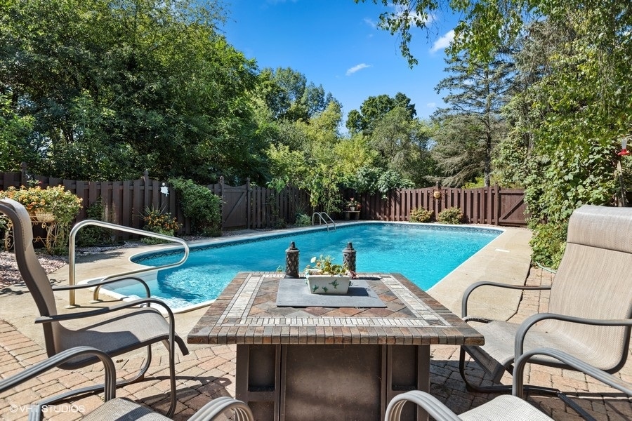 Your Own Private Oasis Awaits! Nestled on nearly an acre, this exceptional home offers resort-style living with a sparkling in-ground swimming pool and an impressive 20′ x 20′ cabana-perfect for outdoor entertaining. Inside, hardwood floors flow throughout the main and second levels, while vaulted ceilings in the living room, dining room, kitchen, and primary suite create an open, airy feel. The living room features a wood-burning fireplace, skylight, and sliders leading to the deck. The spacious dining room is filled with natural light from multiple windows.The chef’s kitchen is a true highlight, featuring granite countertops, stainless steel appliances, a Viking gas range with custom hood, double ovens, a large island, and a wine cooler. Retreat to the expansive primary suite with a gas fireplace, walk-in closet, spa-like bath, and double doors opening to a wraparound Juliet balcony. The lower level offers a cozy family room with a custom bar and gas fireplace, plus a versatile third bedroom currently used as an office. Outdoor Living at Its Best. The backyard is designed for relaxation and fun, with a meticulously maintained pool (newer liner and heater with 15-year life) featuring a unique 36′ x 18′ design-deeper in the middle and shallow on the ends, ideal for pool volleyball. The stunning hexagon cabana, complete with a ceiling fan and screened windows, provides the perfect setting for gatherings year-round. Additional features include lush landscaping, furnace, hot water tank and pool liner all (2021), well pump (2023) and 200-amp electrical service (2014).