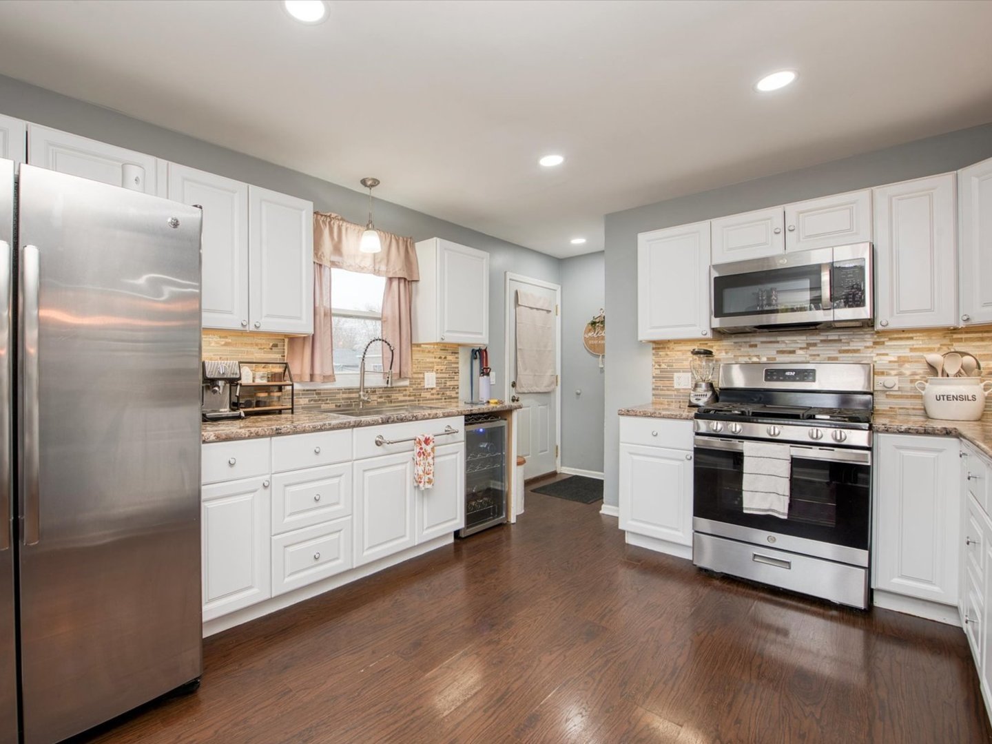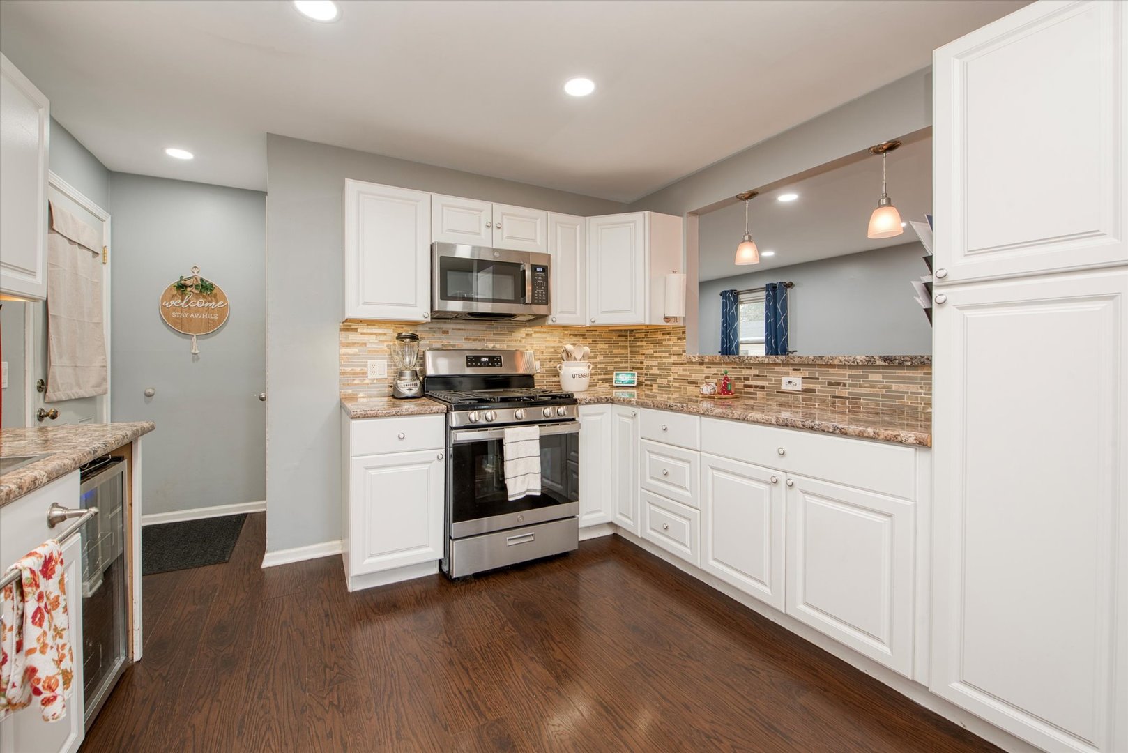 Welcome Home to this beautifully refined retreat where modern comfort, excellent craftsmanship, and timeless elegance come together with effortless sophistication. This impeccably maintained 3-Bedroom, 1-Bath Ranch radiates warmth from the moment you step inside-every space thoughtfully updated, every detail cared for with pride. At the heart of the home, a stunning designer-inspired Kitchen showcases Classic Shaker-Style Cabinetry, Generous Storage, Under-Cabinet and Recessed Lighting, and a full suite of Sleek Stainless-Steel Appliances, including a Deep Sink, Microwave, Stove, Refrigerator, Wine Fridge, and Garbage Disposal. A wonderful eat-in Breakfast Bar adds both function and elegance, creating the perfect space to gather. The tastefully updated Bathroom, with direct access to the Primary Bedroom, enhances daily living with an added layer of convenience and privacy. Each Bedroom is spacious and inviting, elevated with New, Pet-friendly Flooring that flows seamlessly throughout the home’s warm and welcoming layout. The Full height Basement continues to impress-offering High Ceilings, Updated Lighting, a Laundry Sink, and Washer/Dryer Hookup. Whether envisioned as a beautifully finished extension of the home, an entertainment area, fitness space, or abundant storage, this open canvas is ready for your personal touch. Outdoors, the property transforms into a serene private retreat. A Full Fenced Backyard with a 6′ Privacy Fence surrounds lush, Pet-Friendly Turf, a Concrete Walkway, and a gorgeous Paver Patio-ideal for quiet relaxation or memorable gatherings. Hardwired Landscape Lighting, Exterior Floodlights, and Google Nest Exterior Cameras elevate both ambiance and peace of mind. A Detached 2-Car Garage with a 60-amp panel adds convenience and versatility, while smart and safety-forward Upgrades-including a Honeywell Smart Thermostat, Hardwired Smoke and Carbon Monoxide Detectors, and a newly replaced Roof, Gutters, and Water Heater-further enhance the home and modern appeal. Nestled in the heart of Zion, this exceptional property is walking distance to local parks, schools, Robert McClory Bike Path & Walking Trail. Minutes to Shiloh Park & Thunderhawk Golf Courses, to Metra Train and local shops. Easy access to I-94, perfectly positioned between MILWAUKEE & CHICAGO. Move-in ready and meticulously cared for home where quality meets comfort and new memories are waiting to be made. Schedule your private showing today-your next chapter awaits.