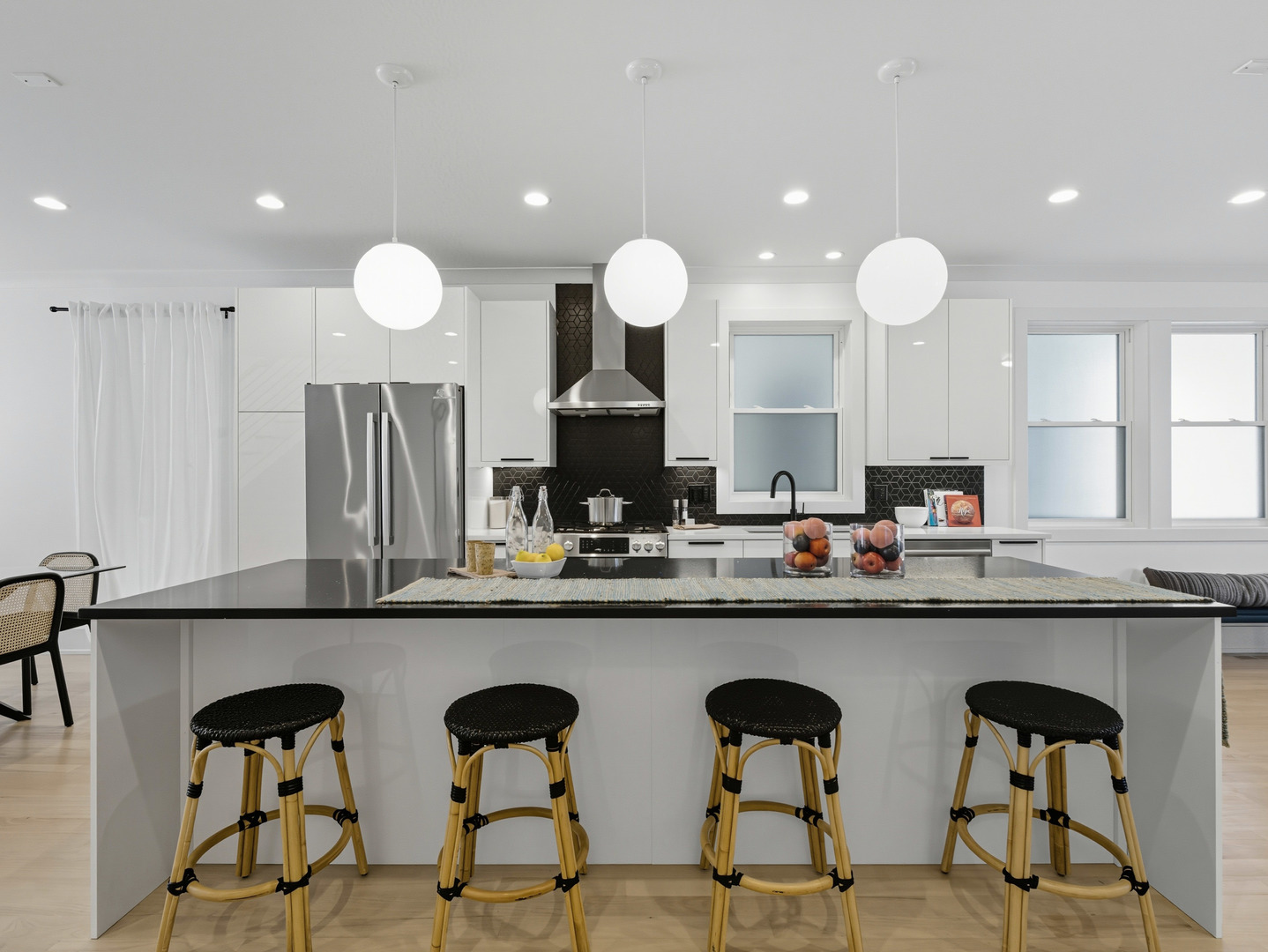 Welcome home to 2906 N Woodard. This 4-bedroom, 3.5-bath single-family home delivers the perfect blend of modern design, thoughtful upgrades, and neighborhood character. Built in 2020 with solid Hardie Board construction, TREX decking, and premium finishes throughout, this home checks every box. Step inside to a bright, open main level with expansive ceiling heights, crown molding and wide plank white oak hardwood floors. Oversized windows with southeast and western exposures flood the home with natural light from sunrise to sunset. The living area flows seamlessly into a show-stopping kitchen with custom cabinetry, two large pantry cabinets, a Kohler cast iron farm sink, Bosch appliances with 5-burner convection oven, custom black quartz countertops, and an oversized island perfect for entertaining. Upstairs, the serene primary suite impresses with tray ceilings, a spa-like ensuite bath featuring heated floors, double vanity, enormous walk-in rain shower, private water closet, along with generous closet space. Two additional bedrooms offer flexibility for family, guests, or a home office. The finished lower level adds even more living space with a family room, wet bar and beverage fridge as well as a 4th bedroom and full bathroom. Outdoor living shines with a private backyard and large rear TREX deck, plus a fully finished 2-car garage outfitted with insulation, drywall, climate control via mini split, and an insulated custom party door. Additional upgrades include a tankless water heater, upgraded HVAC humidifier (2022), premium backup battery with sump pump sensor, and the home is wired for sound with lower-level TV included. Situated on a tree-lined street in the heart of Avondale/Logan, you’re just steps from Logan Square, Belmont and Logan Blue Line stations, and neighborhood favorites like Avondale Bowl and Hairpin Arts Center. 2906 N Woodard is where modern living, comfort, and community come together.