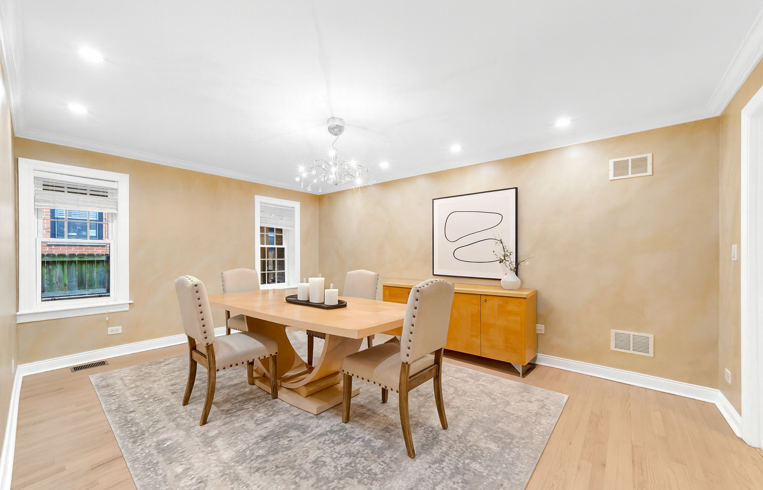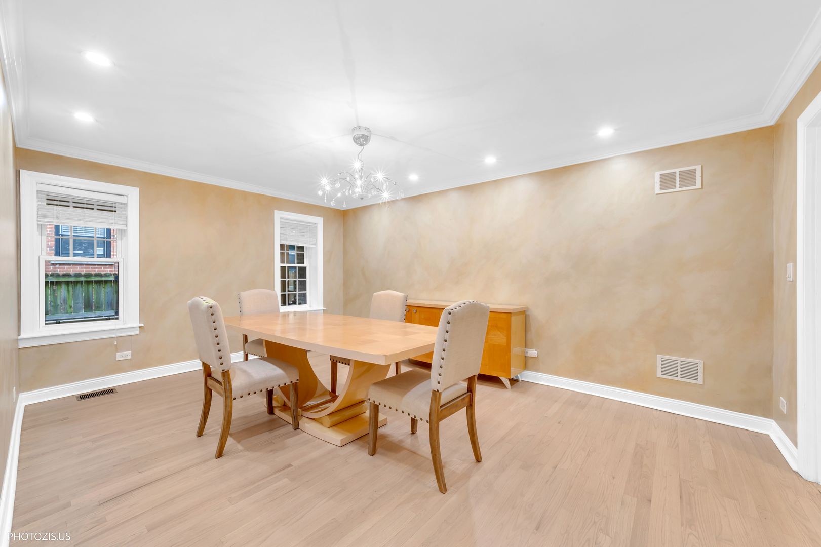 Step into this elegant 5-bedroom, 4.1-bath home on a 60×133 lot, where timeless charm meets modern comfort. A dramatic foyer leads to formal living and dining rooms, a chef’s kitchen, and a sun-filled family room opening to a landscaped patio-ideal for entertaining. Upstairs, the primary suite offers a private terrace and serene backyard views, while four additional bedrooms provide flexibility for family, guests, or your private home office. A finished basement adds rec space, a playroom, a full bath, and abundant storage. Recent updates include newly refinished hardwood floors, dual-zone HVAC, a new roof, and more thoughtful upgrades. A Chicago’s best kept secret, Budlong Woods feels like a suburb but is at the edge of Lincoln Square and Bowmanville, just minutes to Northside College Prep, Jamieson Elementary, parks, bike paths, and North Branch Trail.