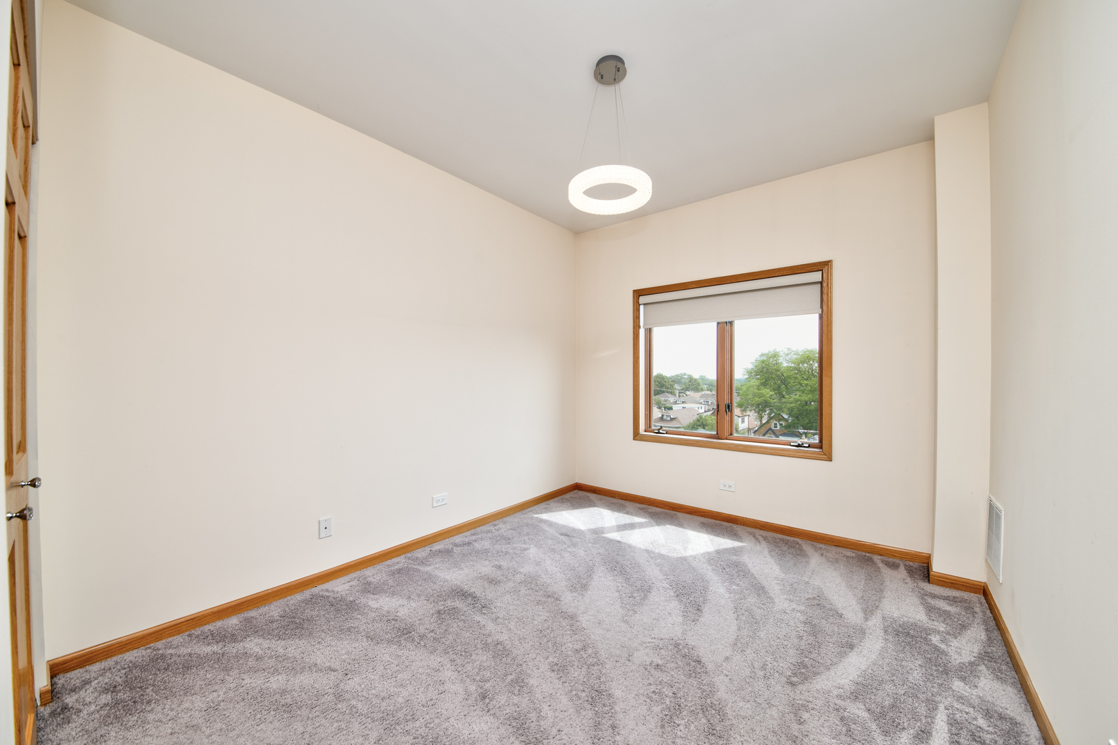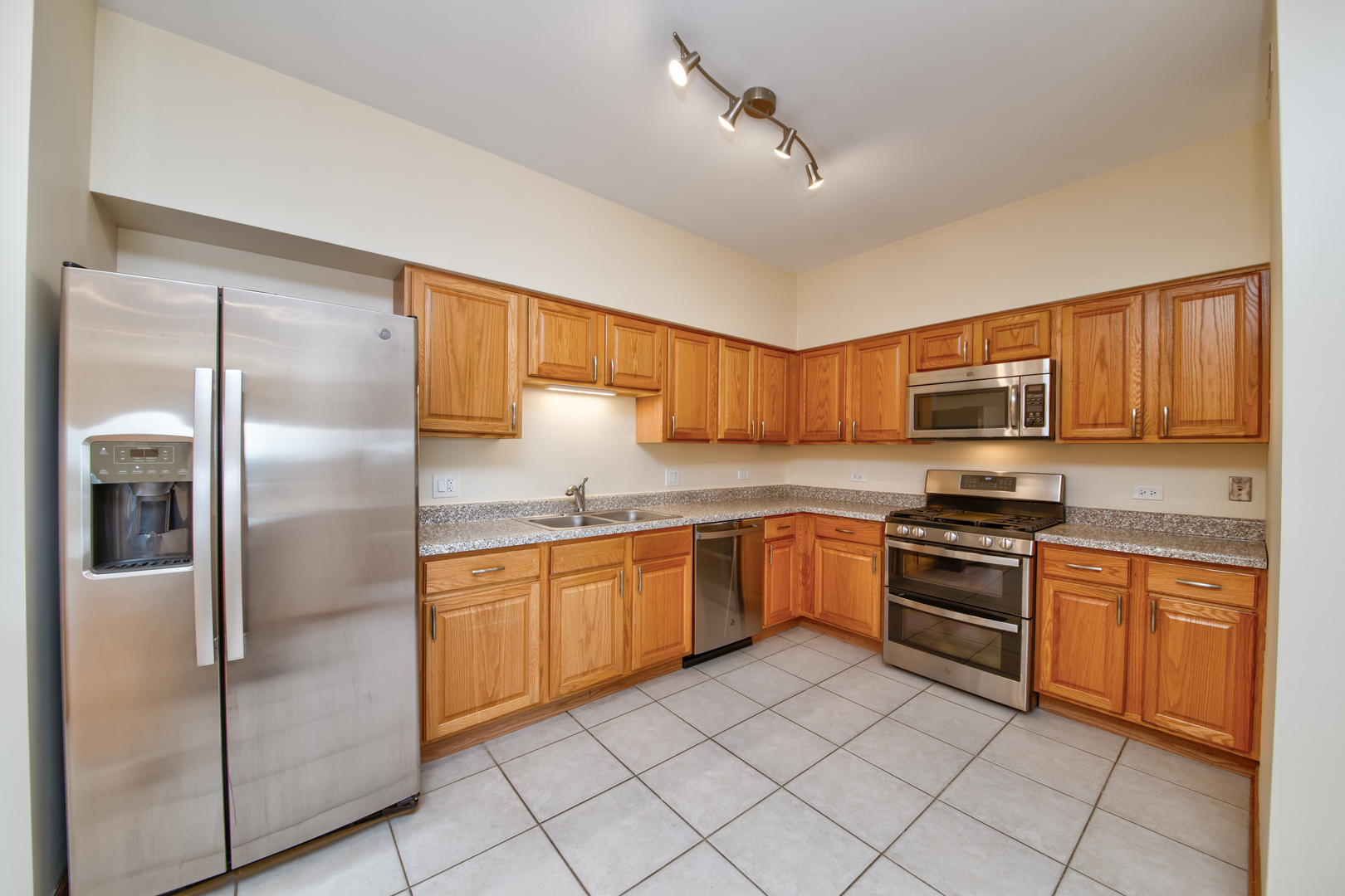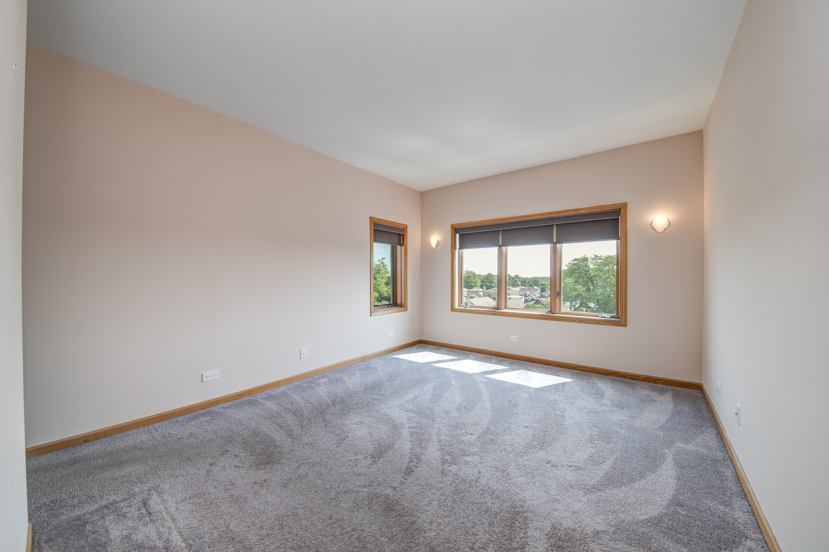Beautiful top-floor corner unit in desirable Harlem Point! This spacious 2-bed / 2-bath condo features a bright open layout with a large private balcony offering gorgeous city views. The kitchen includes ample cabinet space, new SS appliances (2023), a double sink, and a breakfast nook that opens to the living/dining area. Generously sized bedrooms, including a primary suite with walk-in closet and new ensuite bath (2024) featuring a soaking tub and LED bathroom mirror. Second full bath (also 2024) with a glass walk-in shower. In-unit washer/dryer (2024). New HVAC & A/C (2023). Indoor garage parking and storage are included in the price. Freshly painted and move-in ready. Low assessments include heat and water. Rentals allowed. Convenient location near CTA buses, Blue Line, Metra, Harlem Irving Plaza, O’Hare & more.