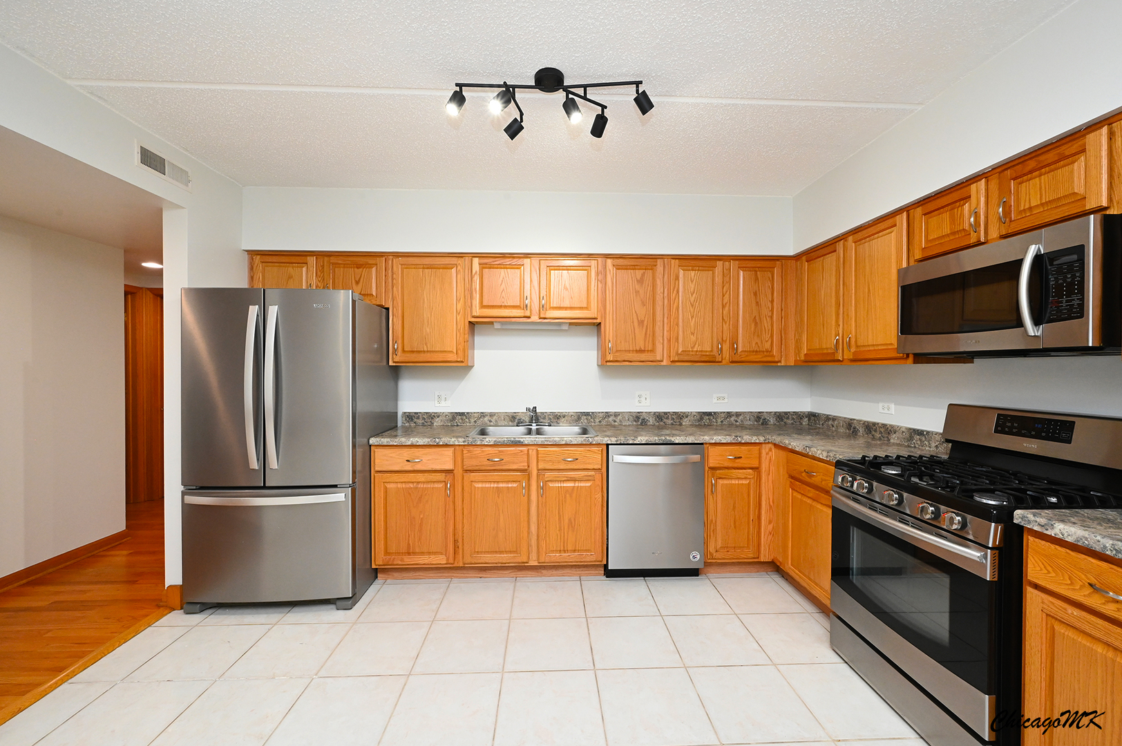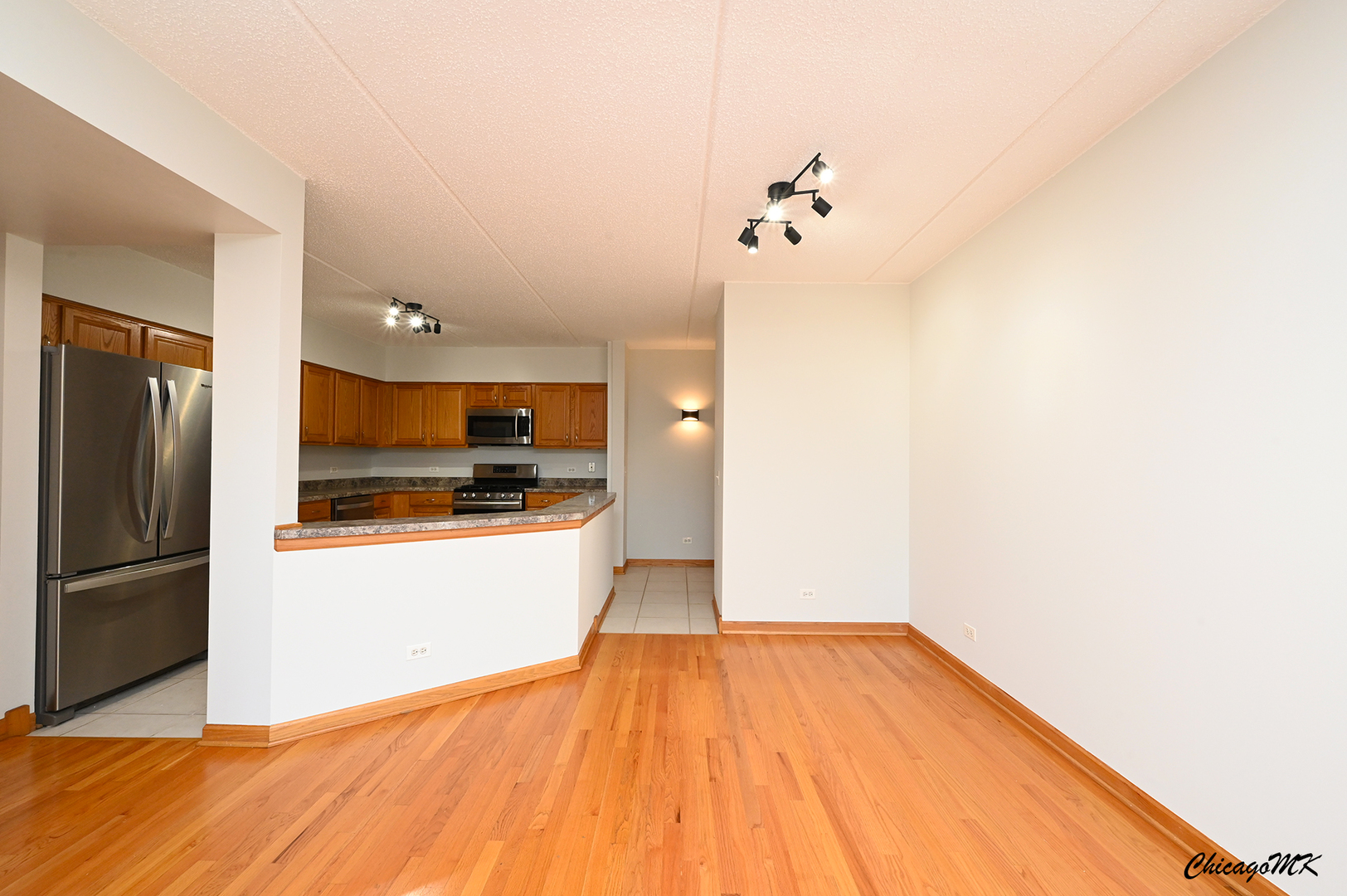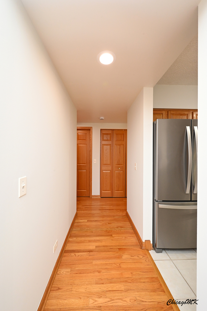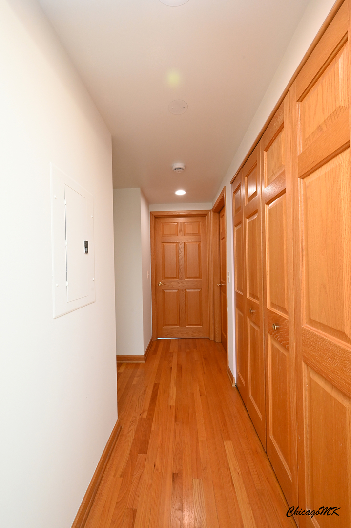 Spacious and beautifully maintained 2-bedroom, 2-bath condo in desirable Harlem Pointe. The open living and dining area extends to a private balcony, perfect for morning coffee or evening relaxation. A modern kitchen features stainless steel appliances, ample counter space, and breakfast seating. Both bedrooms are large with excellent closet storage. The primary suite includes a soaking tub and a separate shower, while the second bathroom also has a soaking tub. Hardwood flooring runs throughout, complemented by an in-unit washer and dryer and abundant storage. The association covers gas, heat, and water, and residents enjoy an elegant lobby, elevator access, and indoor parking with a dedicated space and storage unit. Ideally located near parks, shopping, and dining-this beautiful condo offers comfort, convenience, and style in one. Don’t miss the chance to see it in person!
