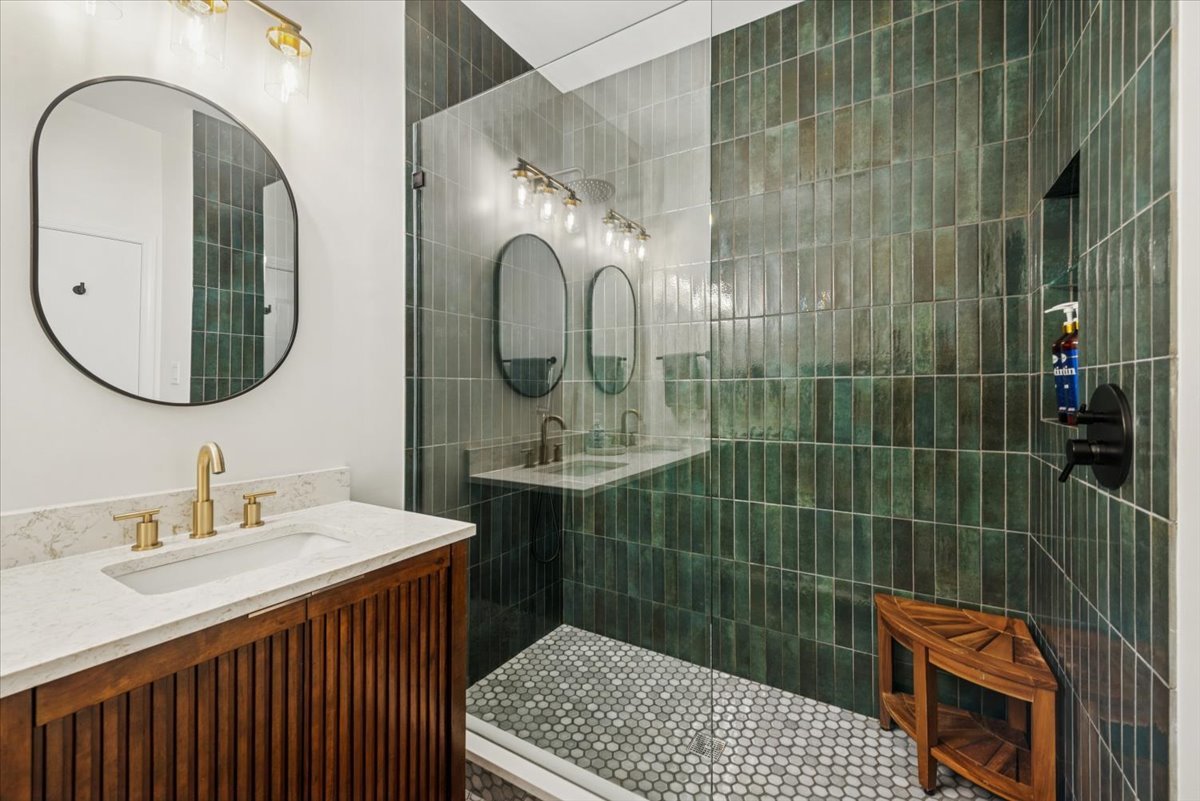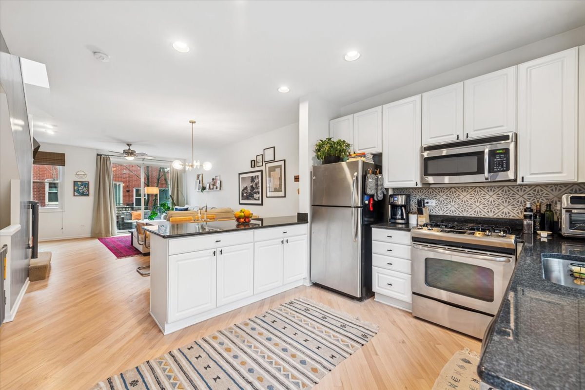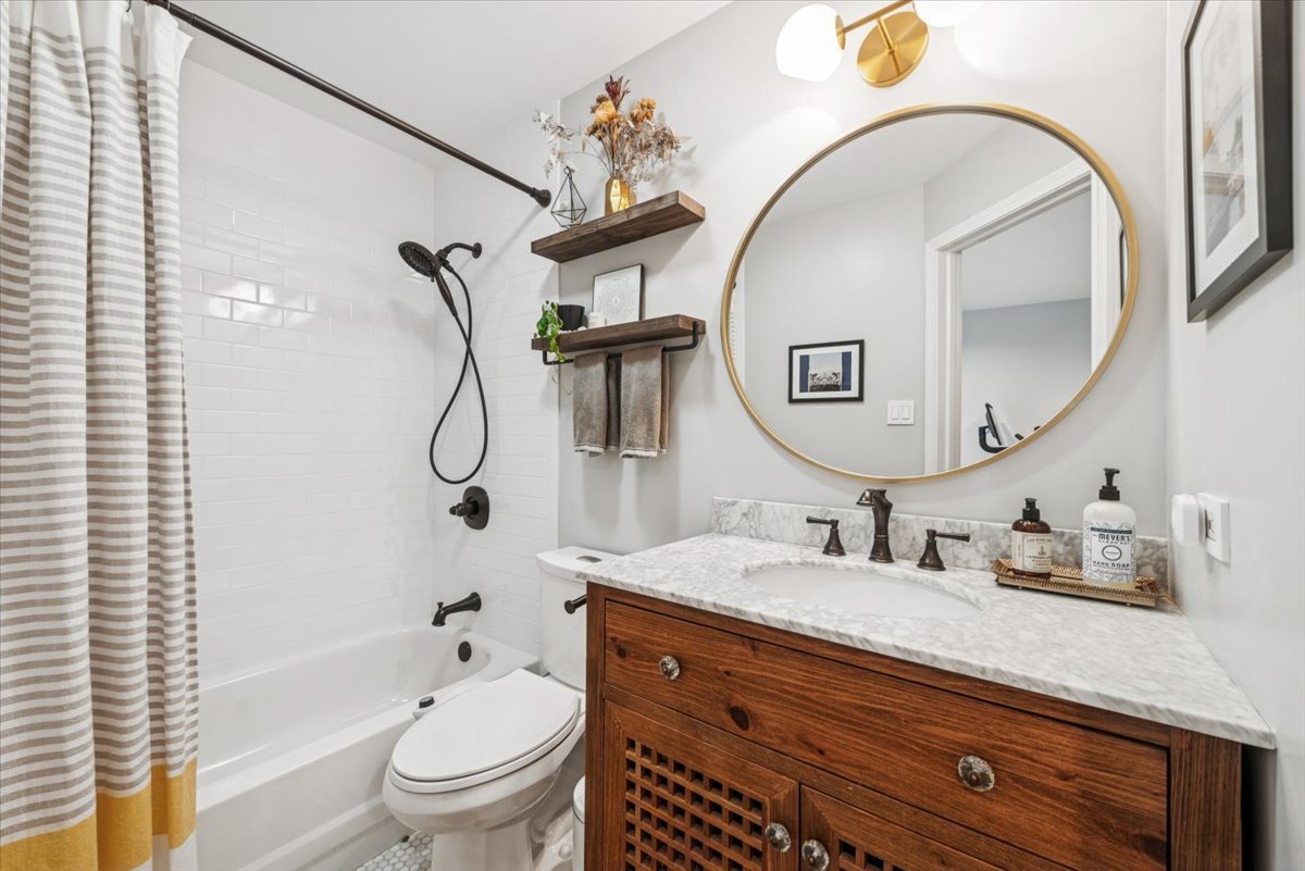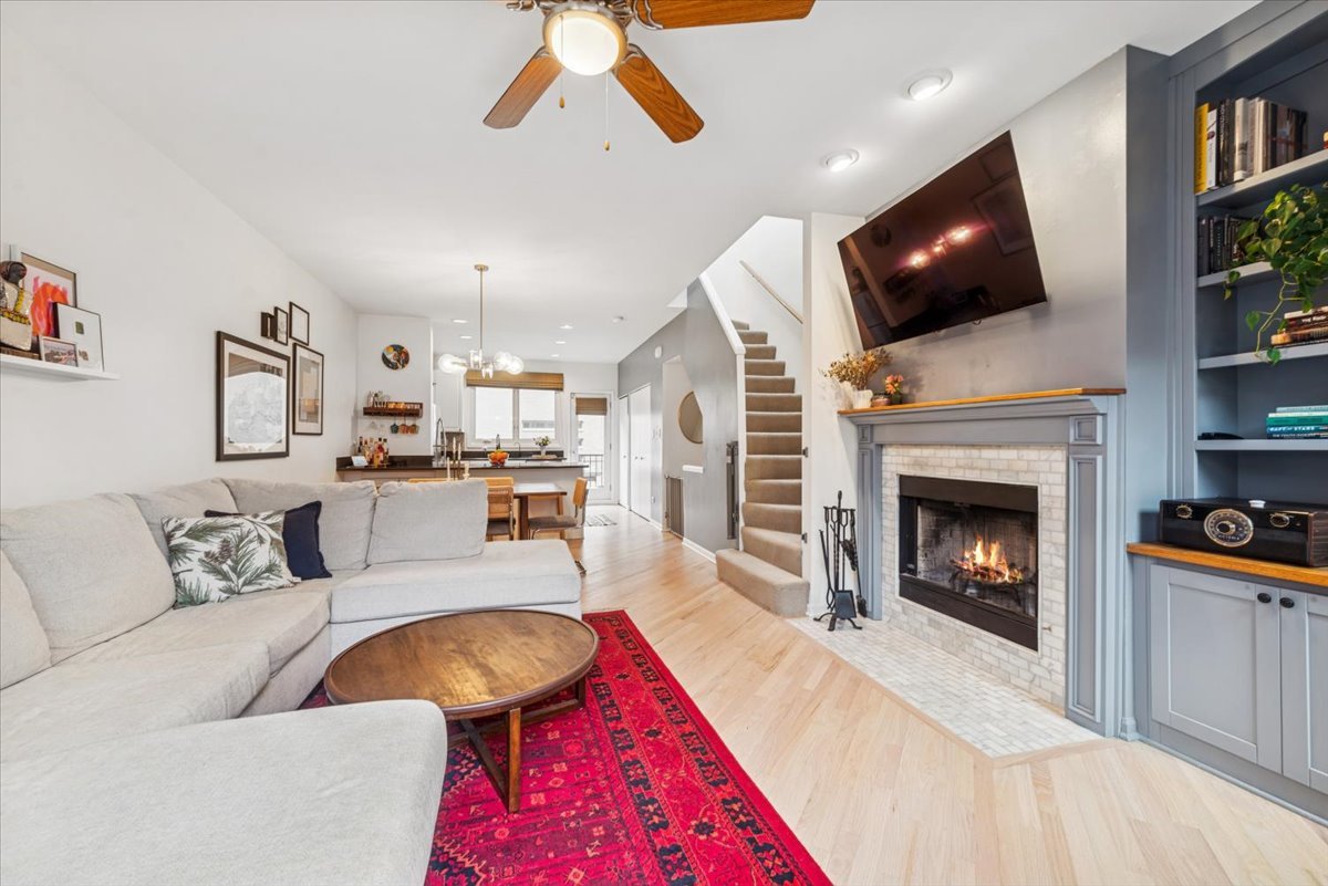 ***Multiple offers received. Highest & Best due by Saturday at noon.*** Nestled in the small close-knit community of 12 townhomes that make up Landmark Village II, this refreshed home is a perfect combination of beautiful finishes, fantastic location, with low assessments. The open-layout main level includes a large white kitchen with granite counters, stainless steel appliances, hand-stenciled backsplash tiles, a long peninsula with overhang, and a pantry closet. There is plenty of room for a large dining table, while the living room is highlighted by the wood-burning fireplace and built-in cabinetry and shelving. Sliding doors lead out to a large deck off the front, ideal for grilling and entertaining. Upstairs are two large bedrooms with excellent closet space, and a stunning newly redone bathroom with oversized shower finished in deep green tiles, double-bowl vanity with quartz counters, and designer floor tiles. On the entry level, a foyer greets you with wood-toned ceramic floor tiles and leads to a 3rd bedroom with en-suite bathroom complete with white tile work and intricate wood vanity. The room opens out to a second outdoor space that you can landscape as you wish. An attached garage allows for entry directly into your home, while a 2nd car can park on the pad just outside of the garage. As for the neighborhood, you are within a few minutes from either Hamlin Park or Wang Park and every convenience like Costco, grocery stores, restaurants, & gyms while being tucked away in a quiet gated community on a small one-way street.