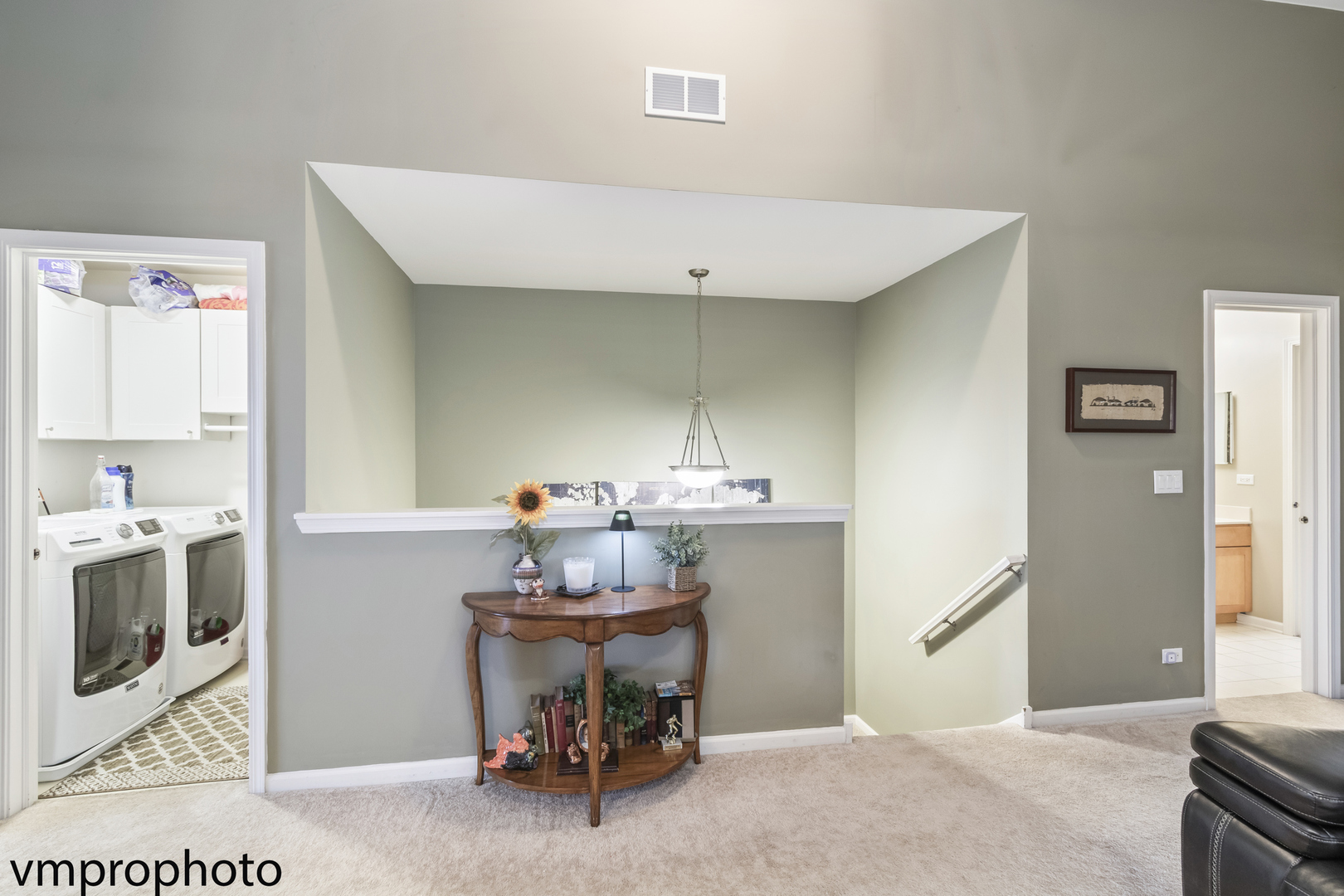 Serene, Spacious, and In-Town Living! Discover this stunning 2-bedroom, 3.5-bath townhouse just a short walk from Downtown Palatine. Situated on one of the few premium lots, this home offers breathtaking views of the adjacent conservation area and nearly 3,000 sq. ft. of functional living space. Step inside through a private entrance and enjoy three levels of beautifully designed living plus two maintenance-free outdoor spaces. Main Level: Open-concept living with oak hardwood floors throughout the living room, dining area, kitchen, and breakfast nook. Chef’s kitchen featuring Bosch appliances, ample counter space, and a giant pantry. Two sliding doors lead to a new Trex deck, perfect for al fresco dining and grilling. Upper Level: Two spacious bedroom suites, including a luxurious primary suite with dual vanity, oversized soaking tub, and separate shower. Vaulted-ceiling loft ideal for a home office or flex space. Convenient laundry room with Whirlpool Duet machines-no more hauling laundry up and down stairs! Lower Level: Expansive finished space with laminate flooring, wet bar, storage, and sealed utility room. Full bath and easy option to create a third bedroom. Walk out to your second outdoor retreat featuring a paver patio. Additional Features: Two-car attached garage plus double driveway. NEST thermostat, no pending special assessments. Easy 10-minute walk to METRA, restaurants, shopping, and downtown Palatine. Enjoy fresh, spacious, and maintenance-free living in a prime location!
