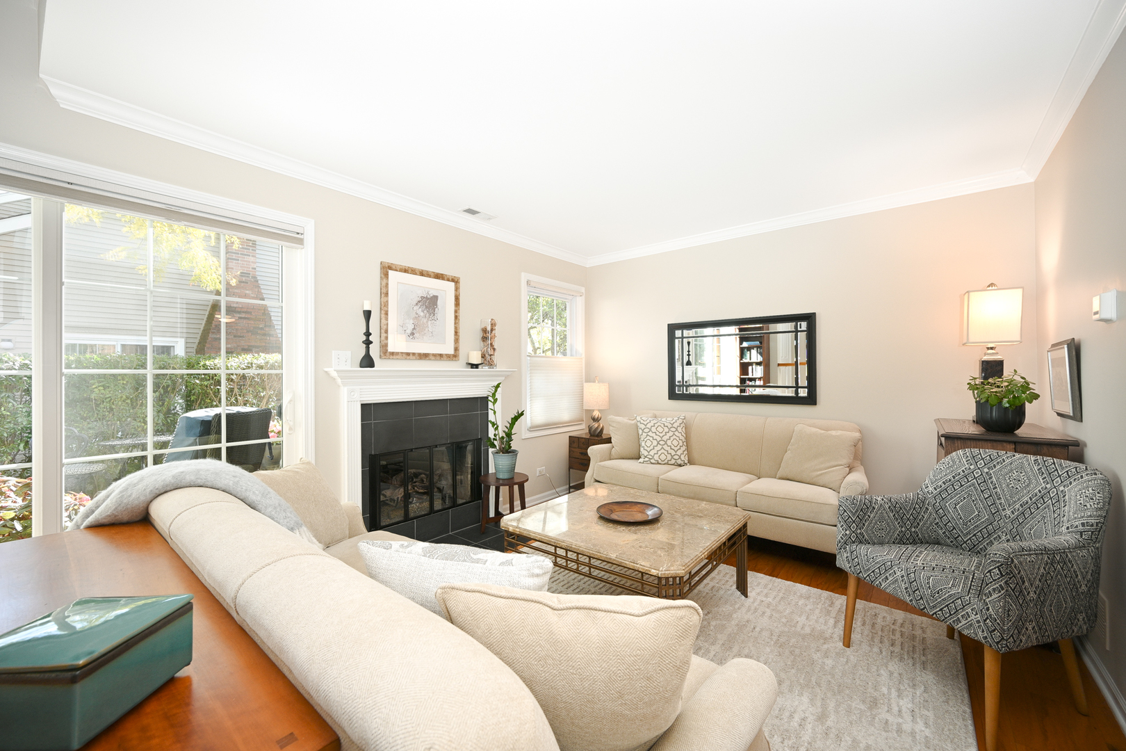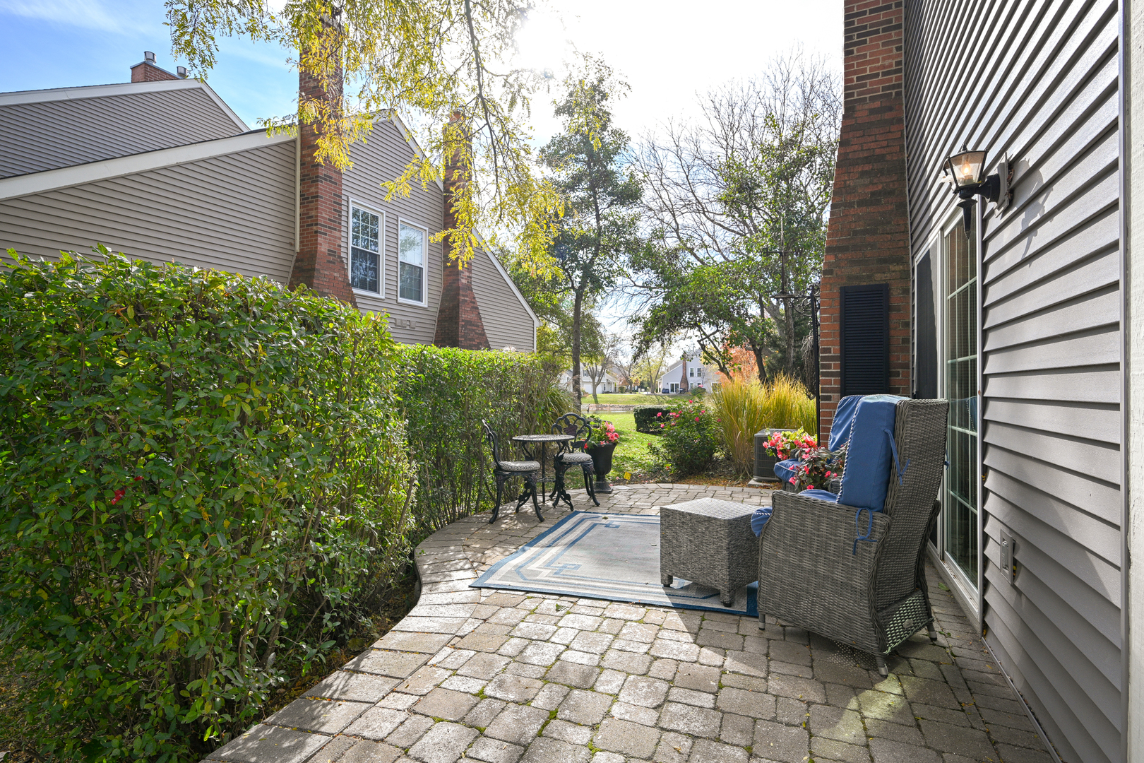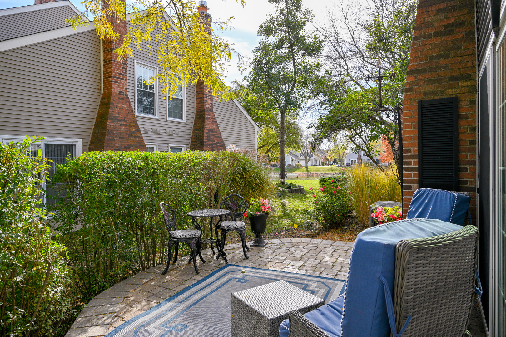 Welcome home to this beautifully updated 2/3 bedroom, 2.1-bath townhome in Warrenville Lakes. You will love the spacious loft that can easily convert into a 3rd bedroom with a privacy blind and full double closet. This lovely townhome is perfectly located in the highly sought-after Warrenville Lakes community and offers a beautiful private setting with pond views. Step inside to an inviting open layout with hardwood floors throughout the main floor. The living room is spacious and very light and bright. Open the sliding glass doors onto your own charming stone patio, surrounded by lush greenery and mature trees. This patio feels like a hidden garden retreat – perfect for morning coffee or relaxing with a view of the peaceful pond. The living room features a completely rebuilt gas fireplace with new tile surround – a cozy focal point for relaxing evenings. The kitchen includes white cabinetry and updated stainless-steel appliances – refrigerator (2020), dishwasher and range (2017), microwave (2021) – and opens nicely to the dining area. Also a large pantry and easy access to the attached 2 car garage. Upstairs, you’ll find two generous bedrooms both with large walk-in closets, a loft (optional 3rd bedroom) with a double closet, and convenient in-unit laundry. Beautiful hardwood floors are on main floor and upstairs except primary bedroom with neutral carpet. Lovely crown molding throughout many of the rooms! Major mechanicals have been thoughtfully updated for peace of mind, including HVAC (2022), water heater (2025), and a new garage door opener (2025). Additional highlights include new siding (approx. 3 years), newer roof, updated blinds (2025), newer patio (2021), and a gas fireplace rebuild and tuckpointing (2020). The home is part of a quiet, well-maintained community close to walking paths (Blackwell Forest Preserve trails across the street) parks, shopping, and I-88. The post office and Warrenville Park District are also very close! Beautifully updated, and perfectly located – this one checks all the boxes! This home is being sold “as is”, yet shines with numerous updates and excellent care- truly move in ready!