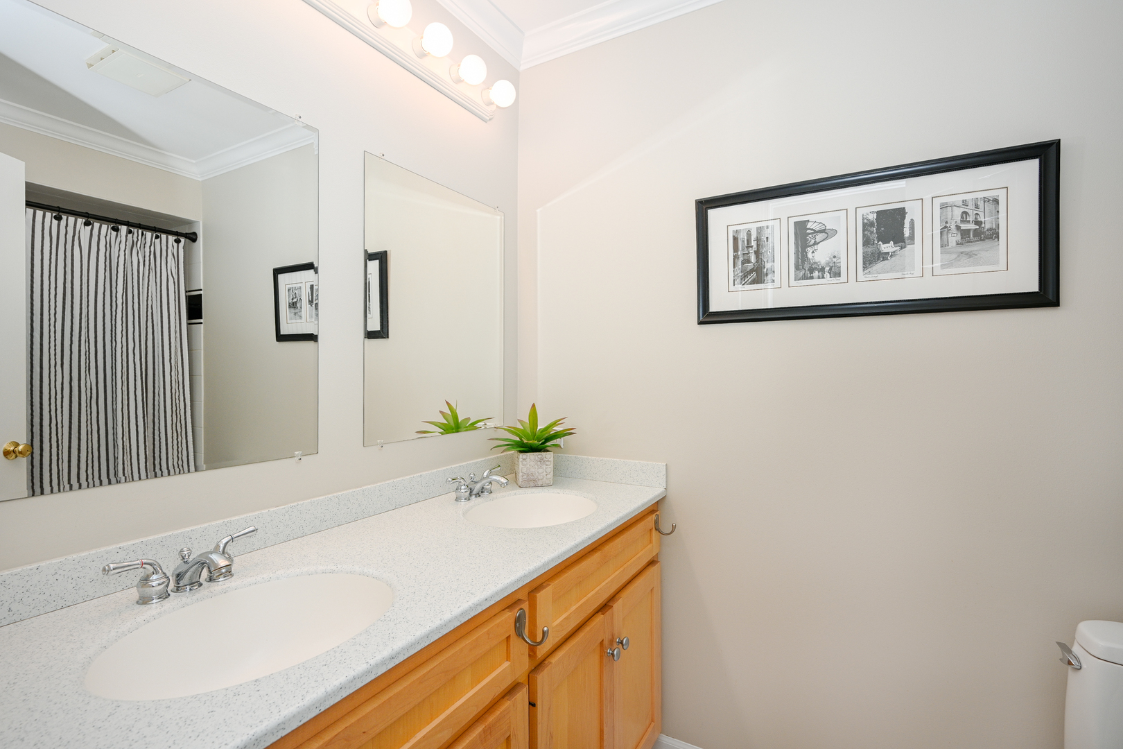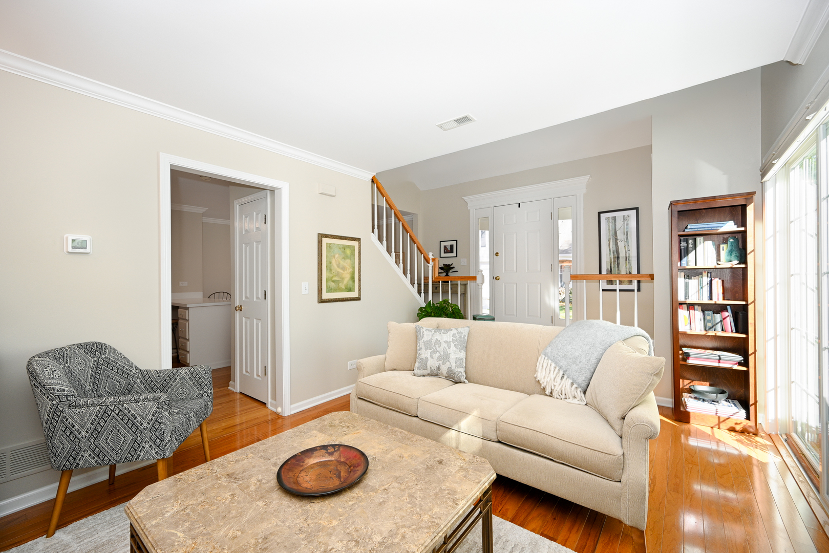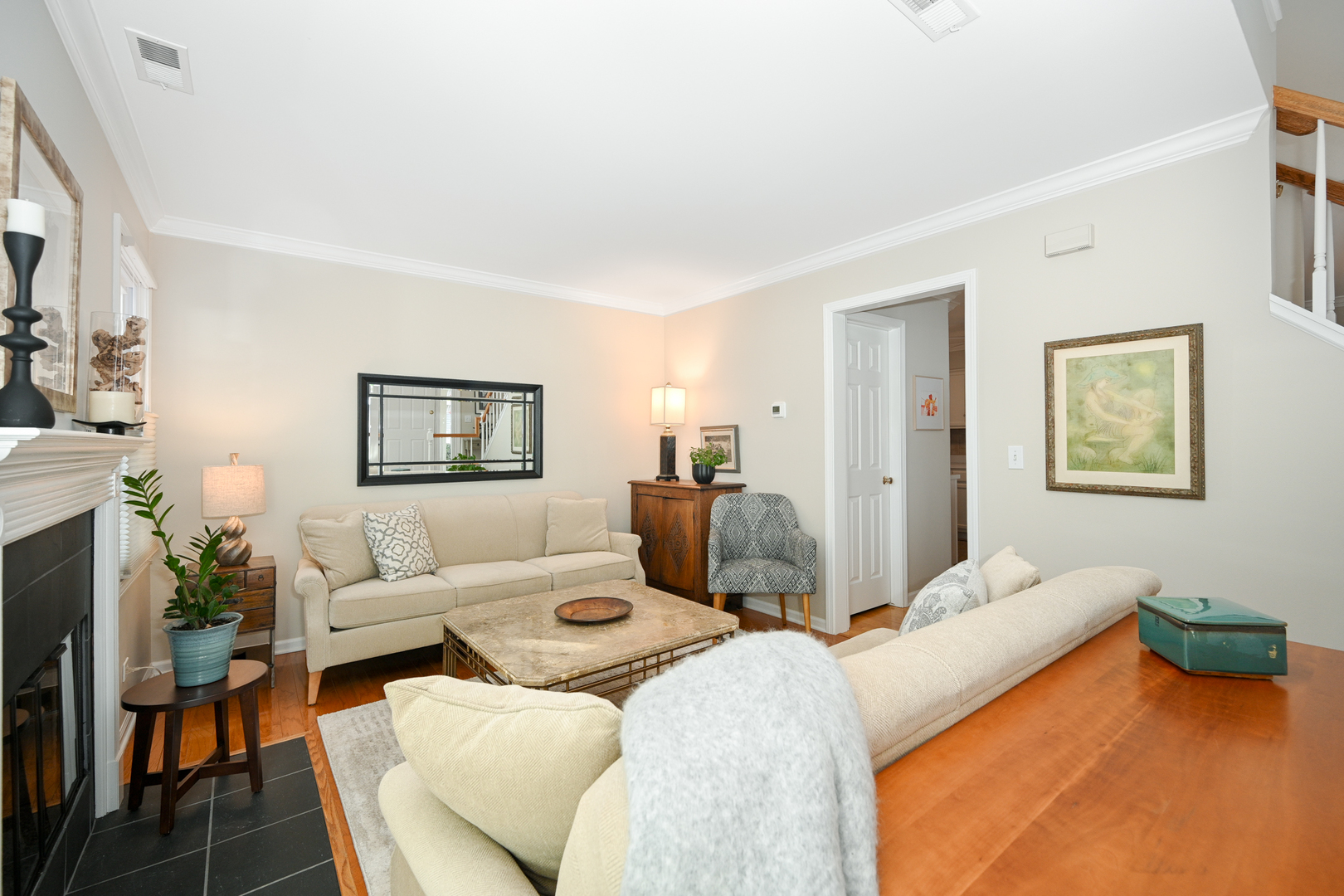 Welcome home to this beautifully updated 2/3 bedroom, 2.1-bath townhome in Warrenville Lakes. You will love the spacious loft that can easily convert into a 3rd bedroom with a privacy blind and full double closet. This lovely townhome is perfectly located in the highly sought-after Warrenville Lakes community and offers a beautiful private setting with pond views. Step inside to an inviting open layout with hardwood floors throughout the main floor. The living room is spacious and very light and bright. Open the sliding glass doors onto your own charming stone patio, surrounded by lush greenery and mature trees. This patio feels like a hidden garden retreat – perfect for morning coffee or relaxing with a view of the peaceful pond. The living room features a completely rebuilt gas fireplace with new tile surround – a cozy focal point for relaxing evenings. The kitchen includes white cabinetry and updated stainless-steel appliances – refrigerator (2020), dishwasher and range (2017), microwave (2021) – and opens nicely to the dining area. Also a large pantry and easy access to the attached 2 car garage. Upstairs, you’ll find two generous bedrooms both with large walk-in closets, a loft (optional 3rd bedroom) with a double closet, and convenient in-unit laundry. Beautiful hardwood floors are on main floor and upstairs except primary bedroom with neutral carpet. Lovely crown molding throughout many of the rooms! Major mechanicals have been thoughtfully updated for peace of mind, including HVAC (2022), water heater (2025), and a new garage door opener (2025). Additional highlights include new siding (approx. 3 years), newer roof, updated blinds (2025), newer patio (2021), and a gas fireplace rebuild and tuckpointing (2020). The home is part of a quiet, well-maintained community close to walking paths (Blackwell Forest Preserve trails across the street) parks, shopping, and I-88. The post office and Warrenville Park District are also very close! Beautifully updated, and perfectly located – this one checks all the boxes! This home is being sold “as is”, yet shines with numerous updates and excellent care- truly move in ready!