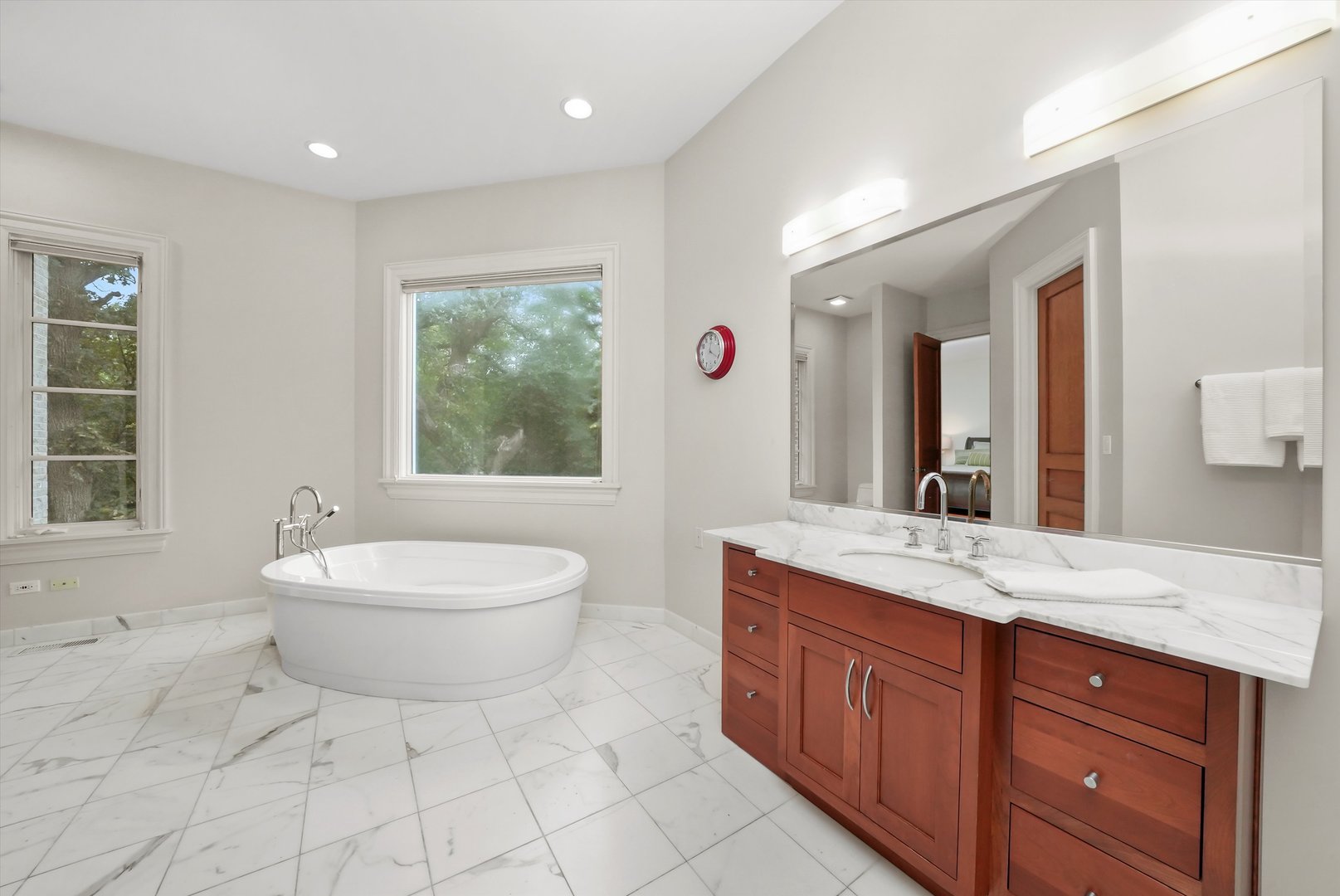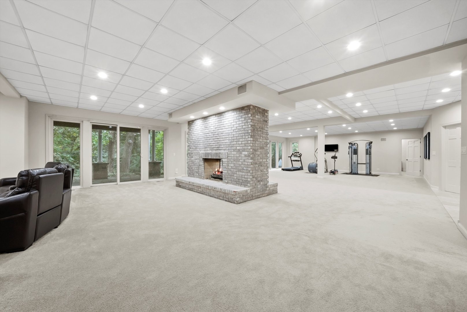 Experience refined living in the gated community of Wynstone-home to the acclaimed Jack Nicklaus Signature Golf Course-while enjoying unmatched privacy amid your own woodland retreat. Set on 1.5 acres of mature trees, this 6BR/5.3BA estate offers approximately 10,000 sq ft across three finished levels, all designed to highlight the tranquility and seclusion of its natural surroundings. A circular drive winds through the trees and welcomes you into a two-story foyer and sun-filled great room with vaulted ceilings, dramatic windows framing serene wooded views, and a fireplace for cozy evenings. The updated, stunning de Giulio kitchen features Siematic cabinetry, two Wolf wall ovens, a 5-burner Wolf cooktop, granite counters, a large island, and an eat-in area that opens to the family room with fireplace and deck access overlooking the forested property. The main level includes a private guest suite, a sunroom that feels immersed in nature, a library/game room with large closet and 1/2 bath, and a formal dining room. Upstairs, the primary suite offers a peaceful sitting room with fireplace, walk-in dressing room/closet with built-in storage, and a spa bath. Three additional bedrooms (one en suite), a full hall bath, laundry, and exercise room complete this level. The finished walkout lower level extends your living space with expansive recreation/media areas, a huge wet bar, bedroom, full bath, bonus room, and walkout access to a custom stone patio that opens directly into wooded privacy-nestled against the trees and perfect for quiet mornings, outdoor dining, or enjoying wildlife. Recent updates include new stair carpeting, interior paint, custom flooring, solid wood interior doors, custom windows, beverage bar, new dishwasher and cooktop, updated light fixtures, and an enhanced security system. Outdoor living shines here: a spacious deck overlooks your own wooded sanctuary, offering shade, natural beauty, and year-round privacy. This is truly a rare opportunity to own a wooded wonderland estate-where luxury living meets the peaceful rhythm of nature.