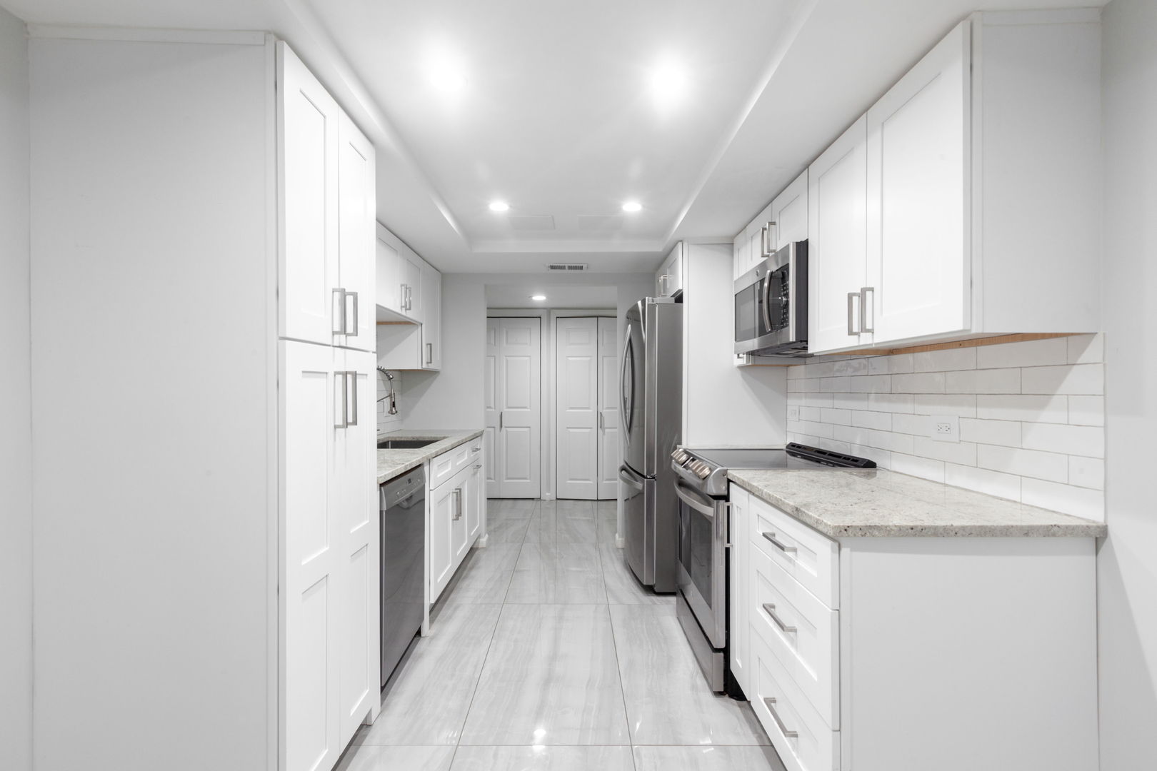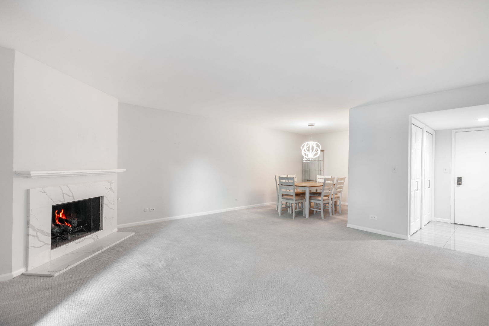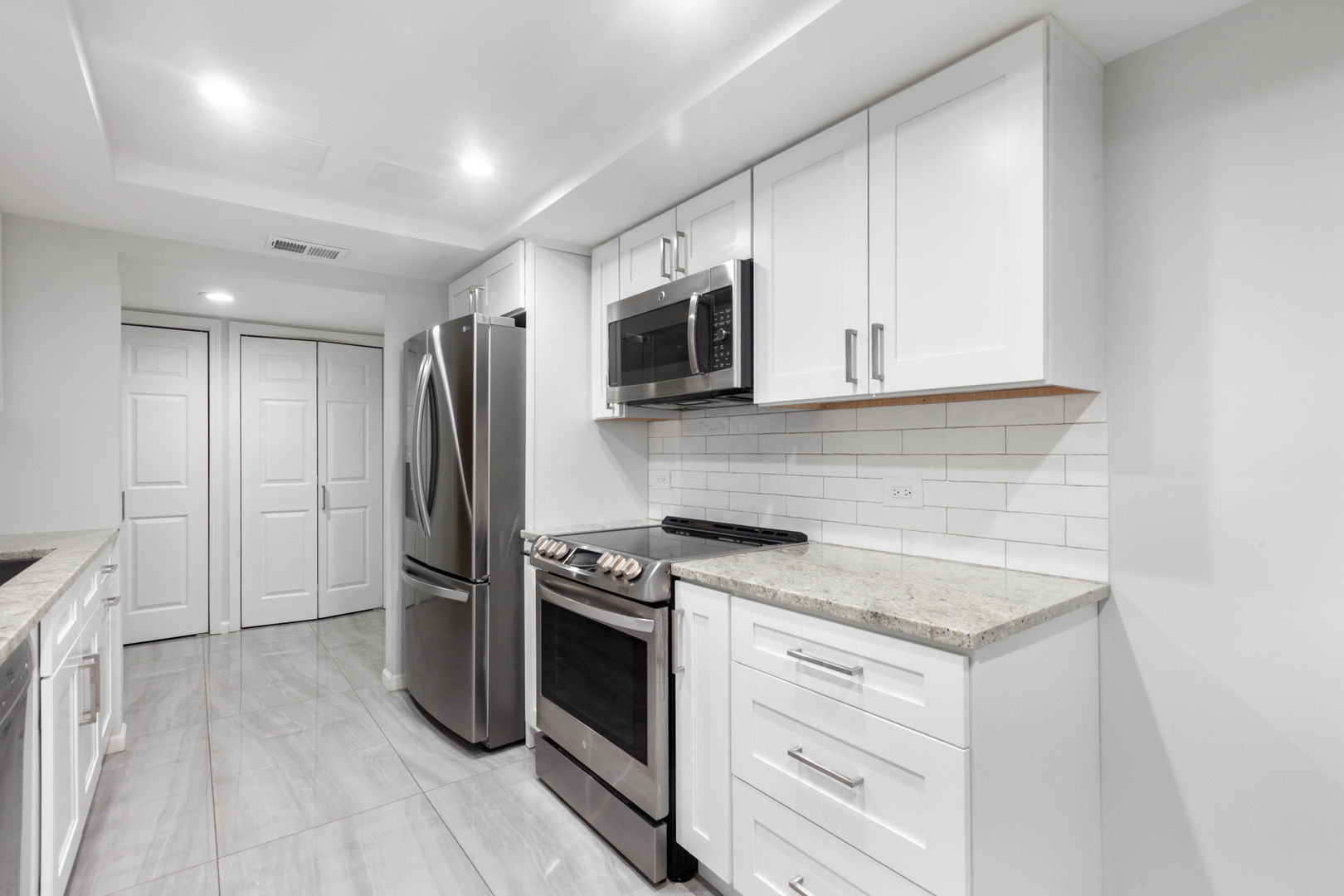 Move right into this beautifully remodeled 2BR/2BA condo in Ancient Tree, where every detail has been thoughtfully curated for style and comfort. The home welcomes you with a spacious foyer adorned in polished Italian porcelain flooring, leading seamlessly into a chef’s kitchen featuring white shaker soft-close cabinetry, granite countertops, glass subway tile, and premium appliances. Both bathrooms have been reimagined with spa-like finishes, including granite vanities, Italian porcelain tile with mosaic accents, LED mirrors, sleek glass enclosures, and high-end fixtures. The expansive living and dining areas are filled with natural light from oversized windows and patio doors. A striking chandelier highlights the dining space, while the living room offers a cozy retreat with a gas-start fireplace framed in marble and a mounted TV above. The generously sized primary and guest bedrooms each offer walk-in closets, while the in-unit laundry includes a brand-new washer and dryer plus added cabinetry for extra storage. Freshly painted and elegantly appointed, this home is move-in ready and perfect for both relaxation and entertaining. Step outside to your private patio overlooking the golf course, ideal for al fresco dining or quiet evenings, and enjoy the community’s walking trails, lagoon, clubhouse, and pool for resort-style living.