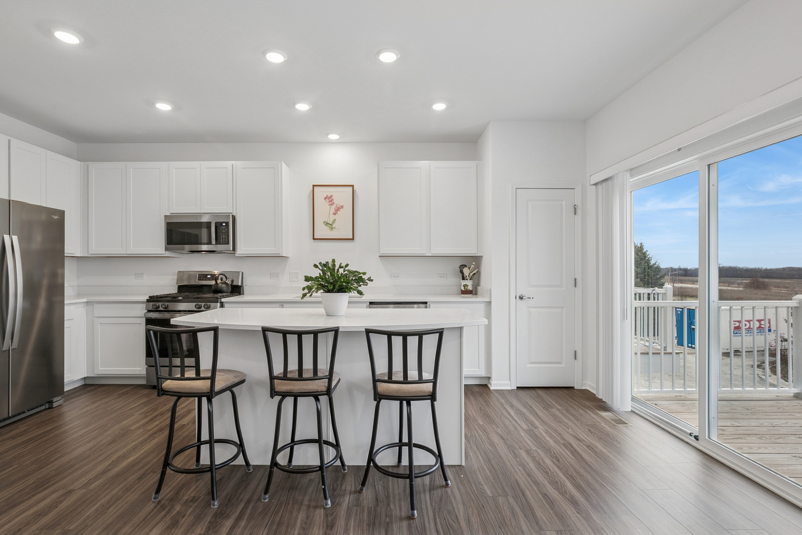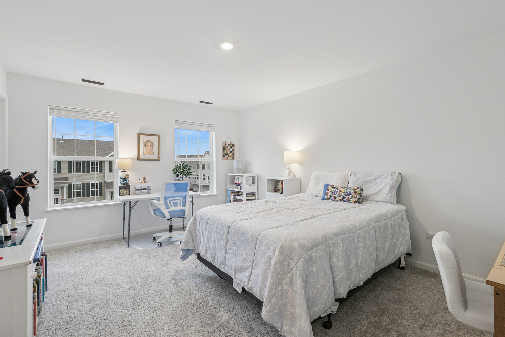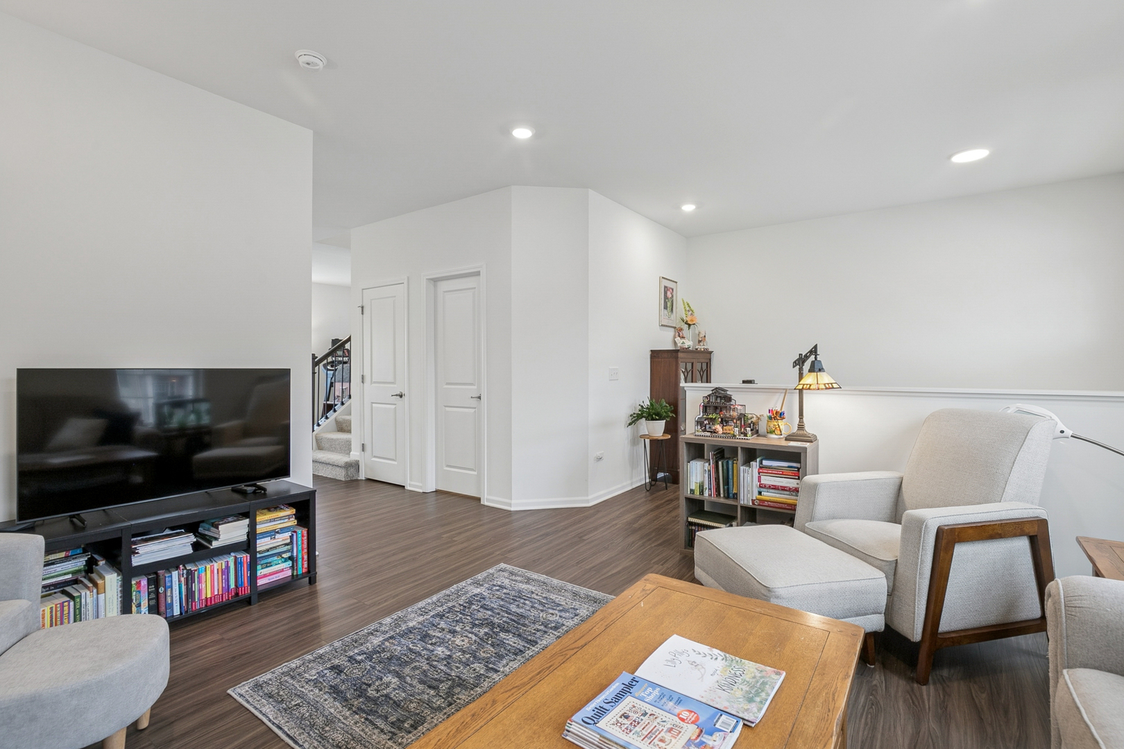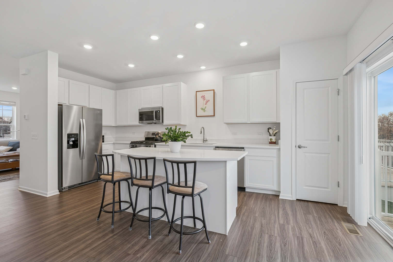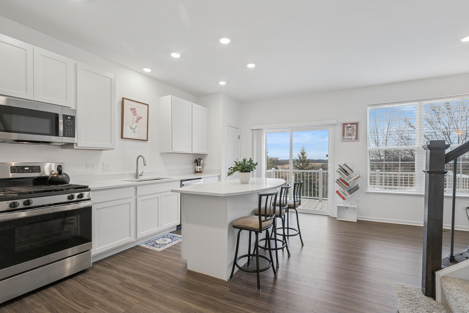 Newly constructed in Heritage Park, this 3 bedroom 2.5 bath townhome offers was thoughtfully designed to maximize living space, and ensure comfort on every level. The designer kitchen features 42″ Aristokraft white cabinets, quartz countertops, GE stainless steel appliances, and a built in pantry to maximize storage space. The breakfast bar is perfect for meals, or enjoying your morning cup of coffee. There is ample space for a dining room table as well. The primary bedroom offers an expansive retreat with plenty of room to accommodate a king sized bed. The ensuite bathroom features a ceramic tiled shower, and the walk in closet completes the space. The other two bedrooms offer a generous floor plan, and share the hallway bathroom. Downstairs you have a flex room that is perfect for a home office or 2nd living space. Enjoy the attached 2 car garage with extra space for storage, as well as 2 surface parking spots. Custom window treatments throughout, and a smart thermostat for added comfort. This home has a landscaped yard in front, and views of the surrounding prairies and a pond in back. The ring doorbell, and extended warranty ensure security and peace of mind for years to come. The best of both worlds, close proximity to Gurnee Mills dining and shopping as well as Six Flags Great America, and close to nature preserves, McDonald woods, and Bonner Heritage Farm. This home is in a prime location for all that Lindenhurst has to offer.