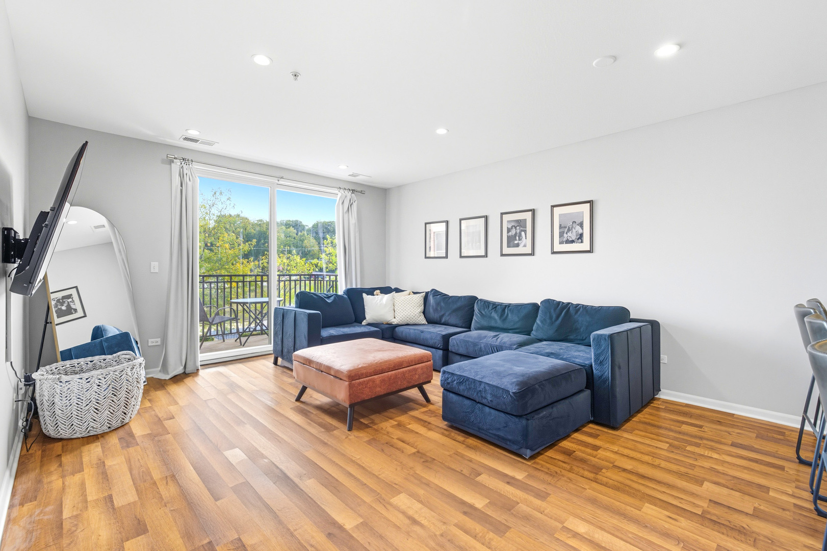 Welcome to this spacious 1-bedroom, 1.5-bathroom condo offering 1,018 sq. ft. of comfortable living in a prime commuter-friendly location. Situated right next to the train station and within walking distance to several shops and restaurants, this home combines convenience with lifestyle. The interior features fresh paint (2025) and updated recessed lighting, creating a bright and modern atmosphere. The open layout provides plenty of room for everyday living, while the bedroom suite offers privacy with its own full bath. Enjoy resort-style amenities including a community pool, clubhouse, bike room, and additional storage locker. Heated garage parking with one assigned space adds comfort and ease year-round. This move-in ready condo is the perfect blend of comfort, updates, and location-don’t miss out!